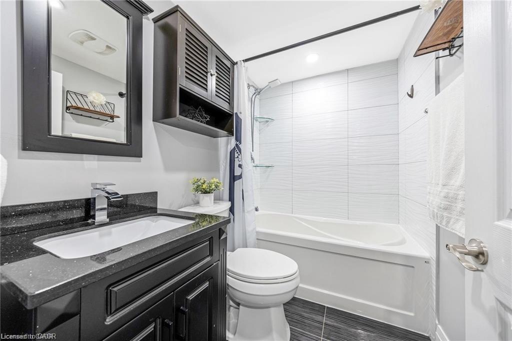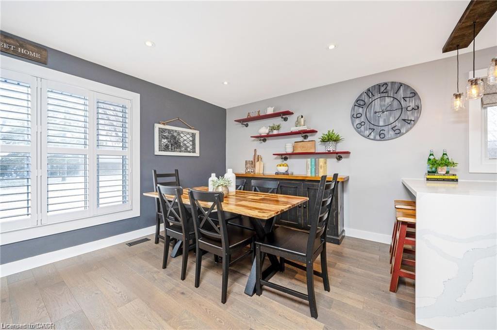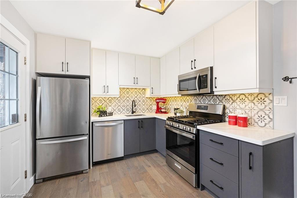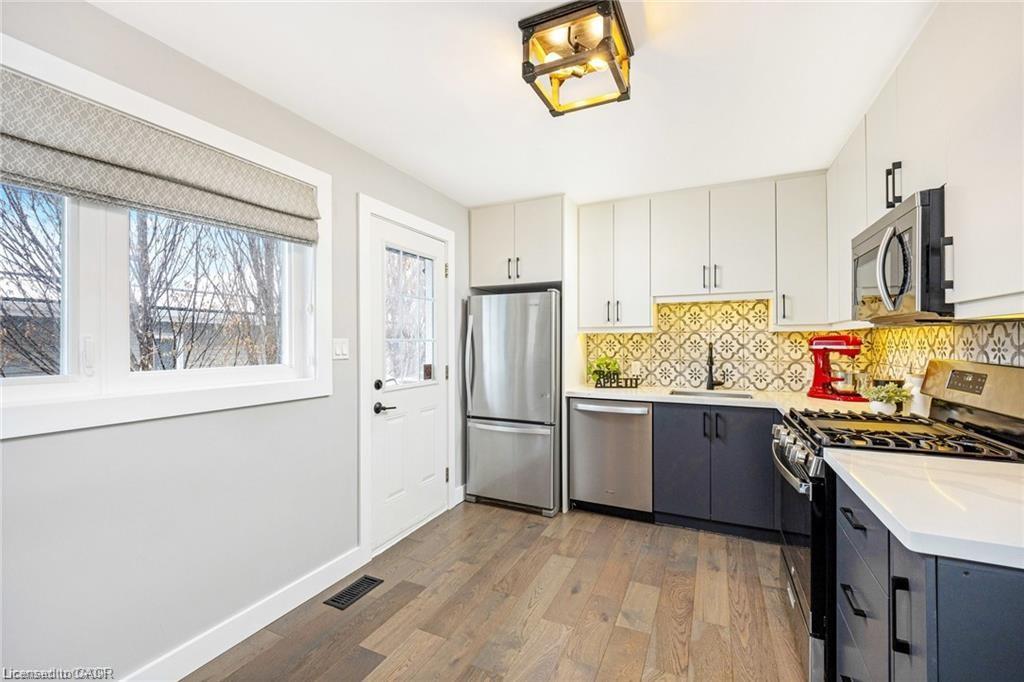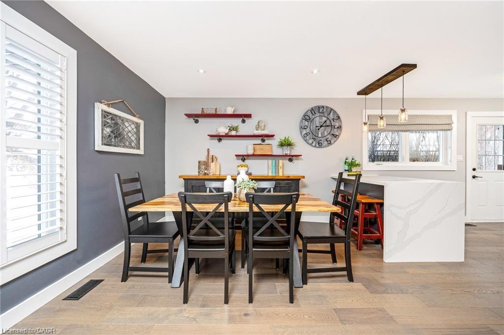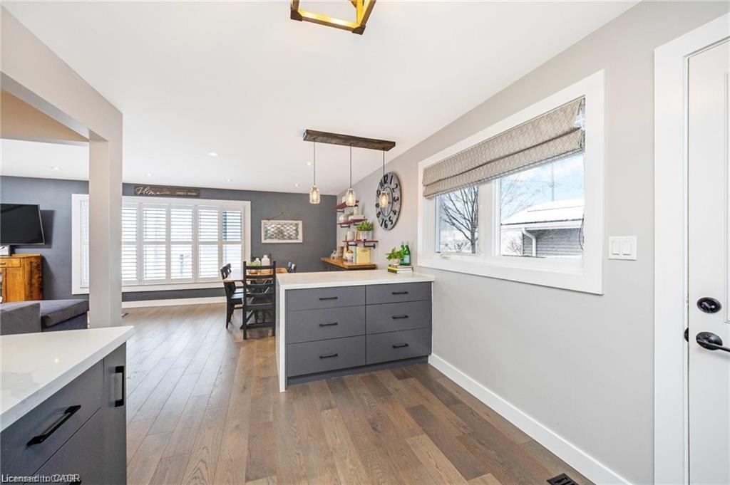 Welcome to this STYLISH 3+1 Bedroom TURN-KEY FULLY RENOVATED BUNGALOW in Sought-After Old Milton that is located on a fabulous 50′ x 132′ lot! It begins with charming curb appeal and, as you enter the foyer with the beautiful glass railing, you will immediately notice the OPEN CONCEPT FLOOR PLAN. There is a living room featuring a beautiful picture window with California shutters, a dining room and stunning kitchen with under cabinet lighting, stainless steel appliances, island with breakfast bar, waterfall quartz counter, tile backsplash and walkout to the private yard. There are 3 bedrooms and a renovated 3-pc bathroom with separate glass shower on this level. The FULLY FINISHED BASEMENT features wide open space with massive windows to let in the natural light, new carpeting in the recreation room (2025), laundry, FOURTH BEDROOM and updated 4-pc bathroom. There is a large storage room, pot lights and a bonus 220VAC electrical connection. The rear yard has so much space for the KIDS to just ROAM, along with a massive new covered porch and concrete patio, gas BBQ hook up, two sheds and a hot tub. Additional features include: wide plank hardwood flooring throughout the main floor, new windows, new fencing on east and south sides of yard, PARKING for FIVE CARS (one in garage and four in driveway), access to backyard from garage. Close to all amenities – walk to public and Catholic schools, parks, Mill Pond, Farmers Market, Coffee, Restaurants, Transit and Milton’s vibrant downtown. This impeccably maintained home has it ALL … Simply Move In and ENJOY! *Please see attached for a full list of features and upgrades. ** Carpet in basement bedroom will be replaced before closing. *** OPEN HOUSES: SAT & SUN, MARCH 28 and 29 from 2 – 4 pm