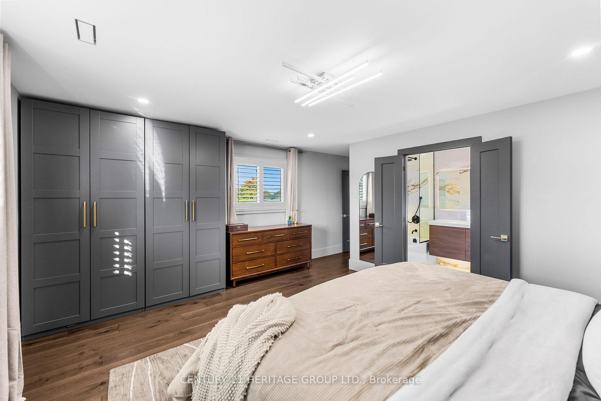 Team Tiger proudly presents 393 George Street, Milton – a stunning designer-inspired residence that blends luxury craftsmanship, modern comfort, and timeless sophistication in one of Milton’s most established neighbourhoods. Every detail has been meticulously curated to create a home that radiates style, function, and warmth. * Step inside to discover luxury large-plank Hickory engineered hardwood flooring (2023) that flows seamlessly throughout the main and upper levels, complemented by a custom hardwood-capped staircase with wrought iron railings (2025). The living area is anchored by a 56″ Continental Linear Gas Fireplace framed with Italian 24″x48″ Rebel porcelain tile, surrounded by custom built-in cabinetry with ambient lighting (2024) – the perfect setting for elegant entertaining or quiet evenings at home. * The primary ensuite redefines spa-like indulgence with heated Italian porcelain floors, a floating vanity, backlit mirror, Grohe wall-mounted toilet, custom glass shower, and Vogt Drava Collection fixtures – every element designed for refined relaxation. Additional bathrooms mirror this design quality with premium porcelain tile, floating vanities, textured accent walls, and modern backlit mirrors (2025). * Enjoy effortless comfort with custom window treatments, motorized sunroom shades, upgraded 200-amp electrical (2024), Beam SC375 central vacuum (2024), Fusion 2 water softener (owned, 2024), and gas BBQ connection. The roof (2020) and upgraded front porch (2022) add further peace of mind and curb appeal. * The lower level offers a beautifully finished bathroom with custom glass shower, plus rough-ins for a laundry area and wet bar or kitchenette, offering endless potential for future expansion or in-law accommodations. * Located steps from Milton’s charming downtown core, parks, schools, and amenities, this exceptional home combines high-end finishes with a warm, inviting atmosphere – the hallmark of thoughtful design.