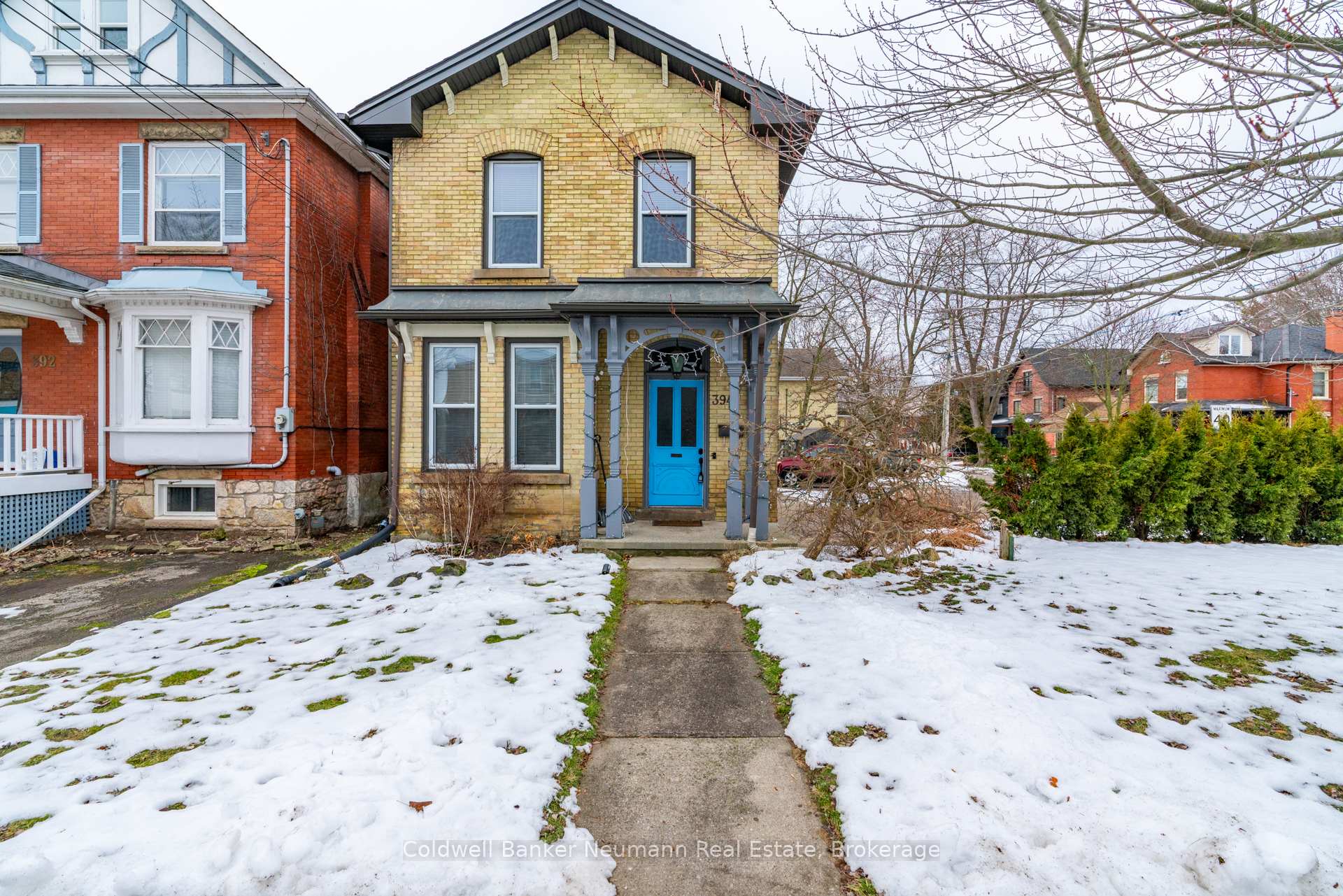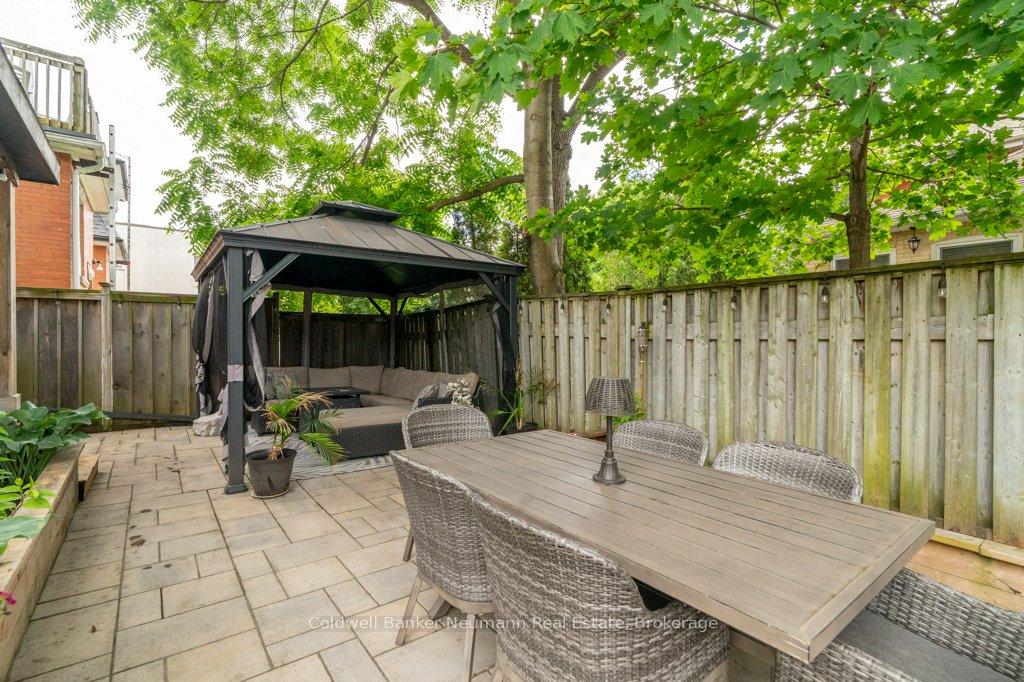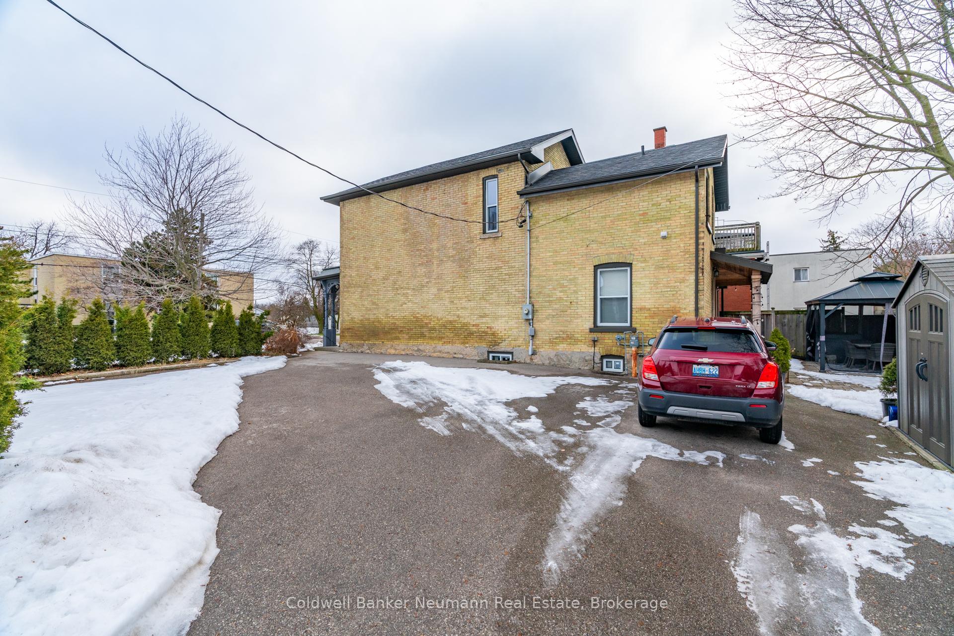 Charming and Versatile in Exhibition Park. 394 Woolwich Street a beautifully updated yellow brick century home located on the corner of Woolwich and Tiffany Street W, in the heart of Guelphs sought-after Exhibition Park neighbourhood. Fully renovated just 10 years ago, this timeless 2-storey home blends historic charm with modern functionality. Outside, the paved driveway offers parking for six vehicles, while the professionally landscaped patio and covered back porch provide private, low-maintenance outdoor living spaces perfect for entertaining or relaxing. Step inside to 10-foot ceilings and a warm, inviting living room featuring a gas fireplace framed by custom built-ins. The living area flows into a bright, functional kitchen ideal for both family life and hosting. A standout feature off the kitchen is the versatile rear room with separate exterior access and a 3-piece bath. A perfect space for a home business, Airbnb suite, fourth bedroom, or additional sitting/dining room. With office-residential zoning, the options are endless. Upstairs, you’ll find three spacious bedrooms, including a light-filled primary bedroom with ensuite privilege to a stylish 4-piece bathroom.Perfectly positioned just steps to Exhibition Park, downtown, schools, and transit, 394 Woolwich Street offers flexibility, character, and location all in one tidy package.