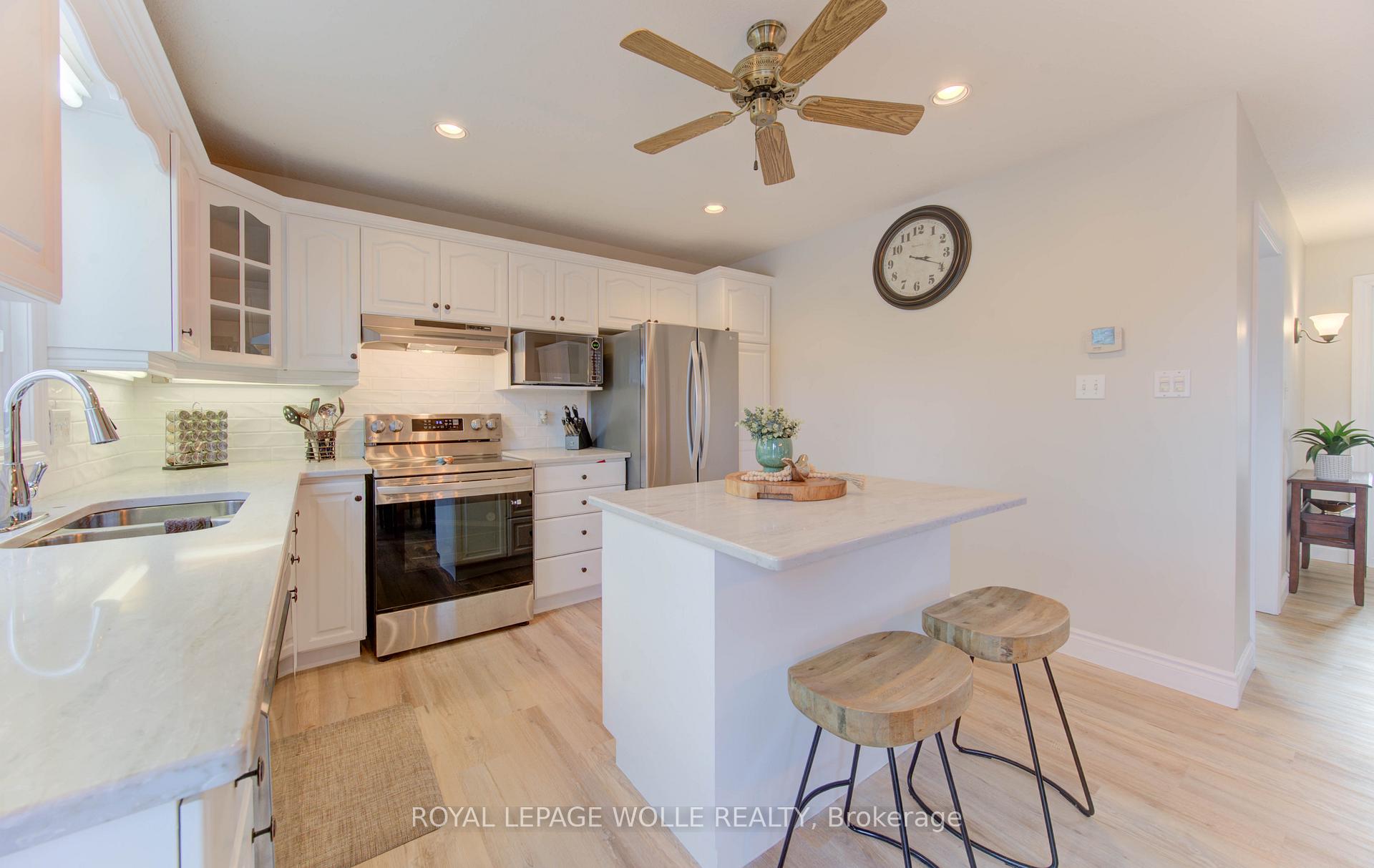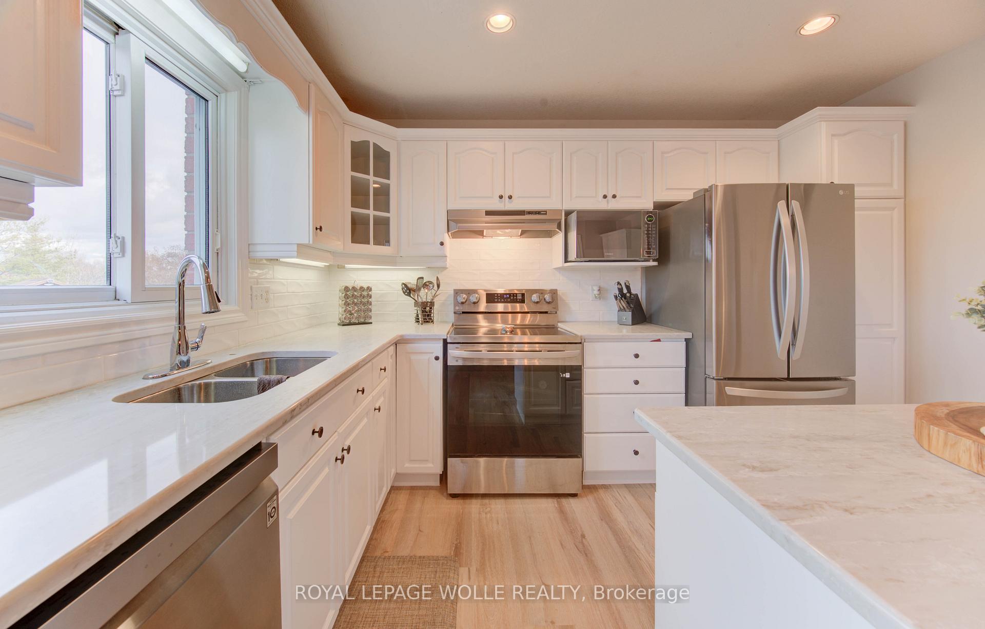 Welcome to 396 Otterbein Rd.- a spacious and beautifully updated 5-bedroom, 4-bathroom home perfect for families seeking comfort, style, and functionality. Step inside to a bright main floor featuring new luxury vinyl flooring throughout on the main level. The newly renovated kitchen shines with refreshed cabinetry, stainless steel appliances, quartz countertops and sliding doors that lead directly to the backyard that backs onto greenspace-ideal for indoor/outdoor entertaining. A front room offers flexibility as a main-floor office or formal dining room, depending on your lifestyle. The cozy living room features a gas fireplace, making it the perfect spot to unwind. This level also includes a convenient 2-piece bathroom and main-floor laundry. Upstairs, you’ll find three generously sized bedrooms, including a spacious primary suite complete with a 3-piece ensuite. A second 4-piece bathroom serves the additional upper-level bedrooms. The finished basement adds exceptional living space with two additional bedrooms, a 2pc bathroom, a comfortable rec room, cold room, and abundant storage throughout-perfect for families needing extra room to grow, host guests, or work from home. Outside, enjoy a fully fenced backyard featuring a deck and an above-ground pool, creating your own private retreat for summer relaxation. The property also offers an attached double-car garage plus parking for two vehicles on the driveway. A well-maintained, move-in-ready home with modern updates, versatile spaces, and plenty of room for the whole family-don’t miss your chance to make 396 Otterbein Rd. yours!