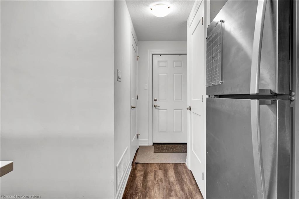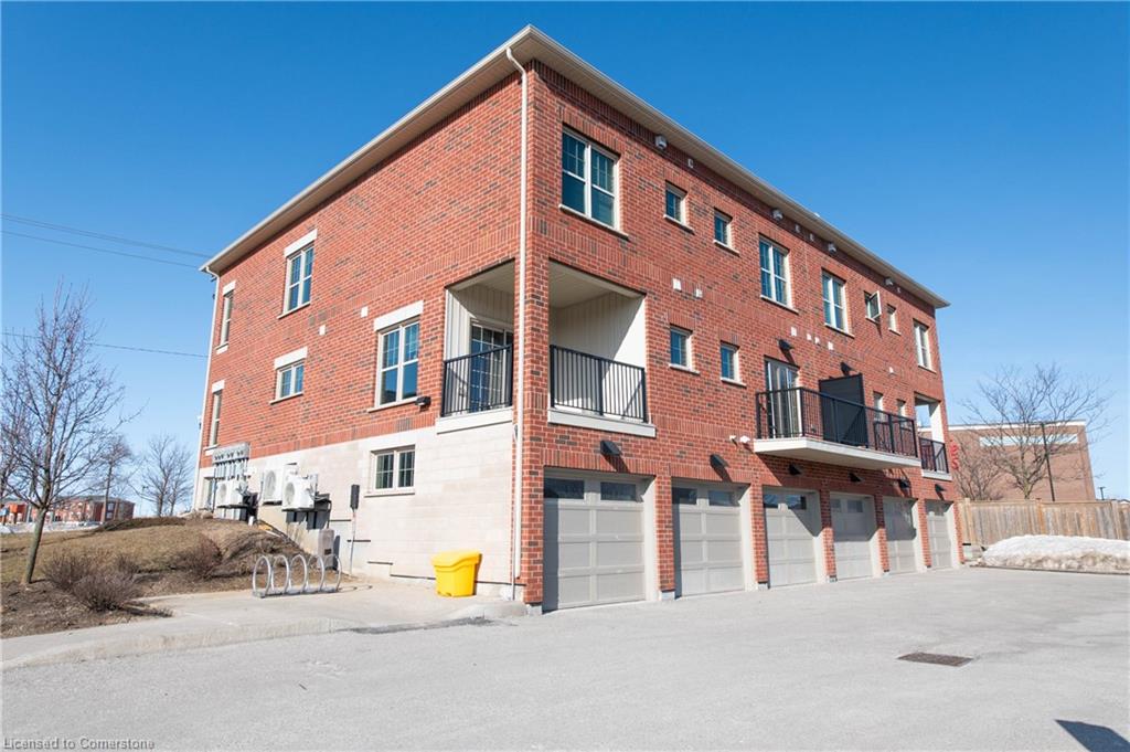 Welcome to this charming stacked lower ground level unit in Kitchener West! Ideally located, this cozy, carpet-free condo features an attached garage and an additional outside parking for a nominal price that can be leased for passive income. The bright kitchen boasts plenty of cupboards, an island, stainless steel appliances, and in-suite laundry, making it perfect for first-time home buyers or investors. Another unique feature is its additional storage space conveniently located beside the main entrance for bike storage, etc. The unit can also be accessed from the rear side garage entrance. Exclusive/personal patio to relax and enjoy is another cool feature. Situated just minutes from excellent schools, Huge Plaza, Community Centre, Sobeys, TD Bank, McDonalds, and public transit at the door. A well-known 24 Hour gym is just a few steps away. Enjoy quick and easy access to Hwy 7/8 and Hwy 401. Schedule your showing today!