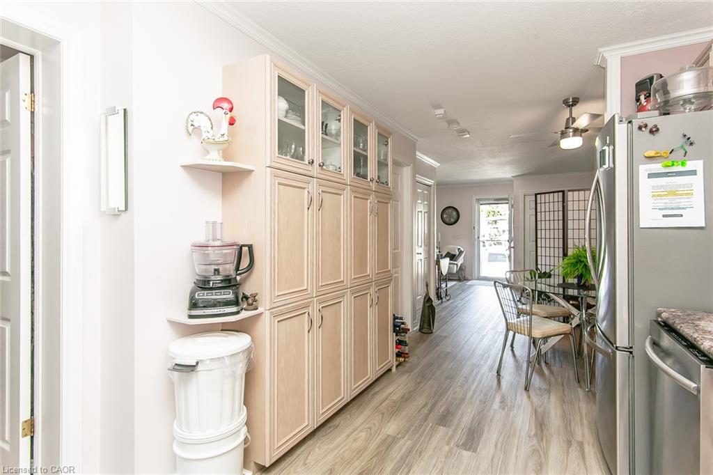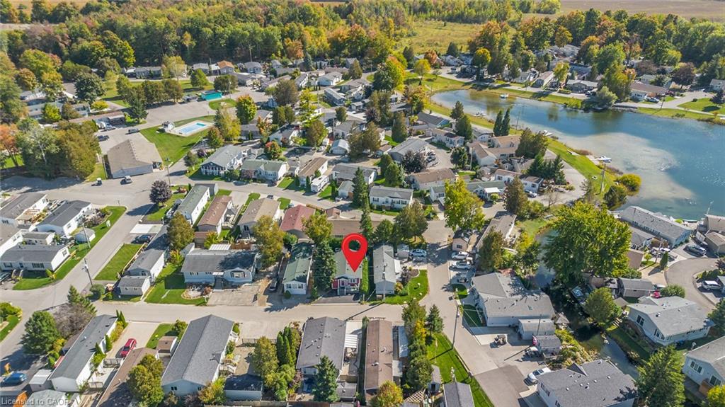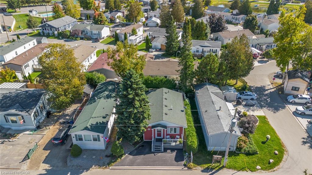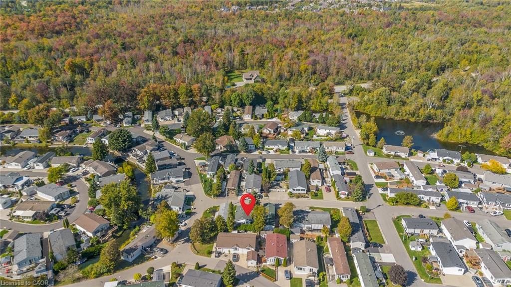 Welcome to this exceptional home nestled in the highly desirable gated community of MiniLakes with the added security of never being left without power. This home has a full backup GENERAC generator meaning that you will never be left in the dark. This home offers a perfect blend of comfort, style, and low-maintenance living, making it the ideal retreat for downsizers, empty nesters, or anyone seeking a tranquil lifestyle away from the hustle and bustle of city life. 4 Elm Street is a beautifully crafted home built by Quality Homes, known for their precision and attention to detail. Enter this beauty by way of a newly installed front deck/porch with glass railing. Step inside to be greeted by a light and airy living room featuring newer luxury vinyl plank flooring throughout, charming crown molding, and large windows that fill the space with natural light. The dining room space is perfect for family gatherings and can easily be converted into an additional bedroom if desired. The stunning kitchen boasts stainless steel appliances, backsplash, ample counter space, and pantry cupboards for all your storage needs. The main bath has been tastefully updated in the past two years by BathFitter. Step outside to your expansive deck where you can relax and enjoy views of the mature trees, plus there’s and a shed and storage hut for all extra things. Residents of MiniLakes enjoy a vibrant community lifestyle with access to spring-fed lakes, scenic canals, a heated pool, community gardens, and walking trails. Engage in various activities such as fishing, swimming, bocce, darts, and card nights, all while being just minutes away from Guelph’s amenities and a quick drive to the 401. If you’re ready to leave behind the confines of city living and embrace a peaceful, outdoor-oriented lifestyle, this home at MiniLakes offers an unparalleled opportunity to enjoy nature, connection, and recreation in a friendly, welcoming environment!