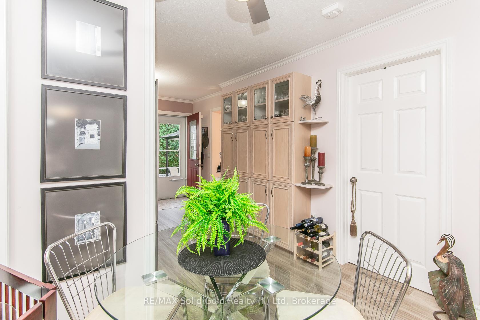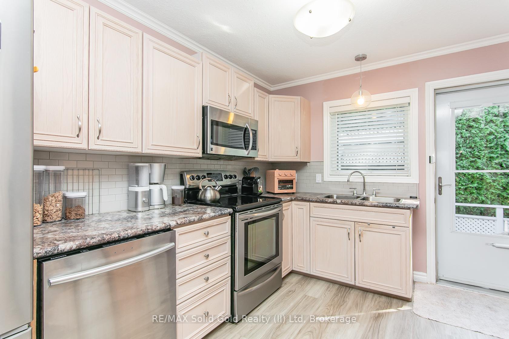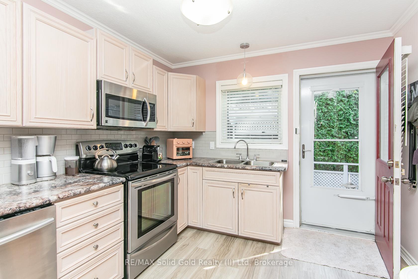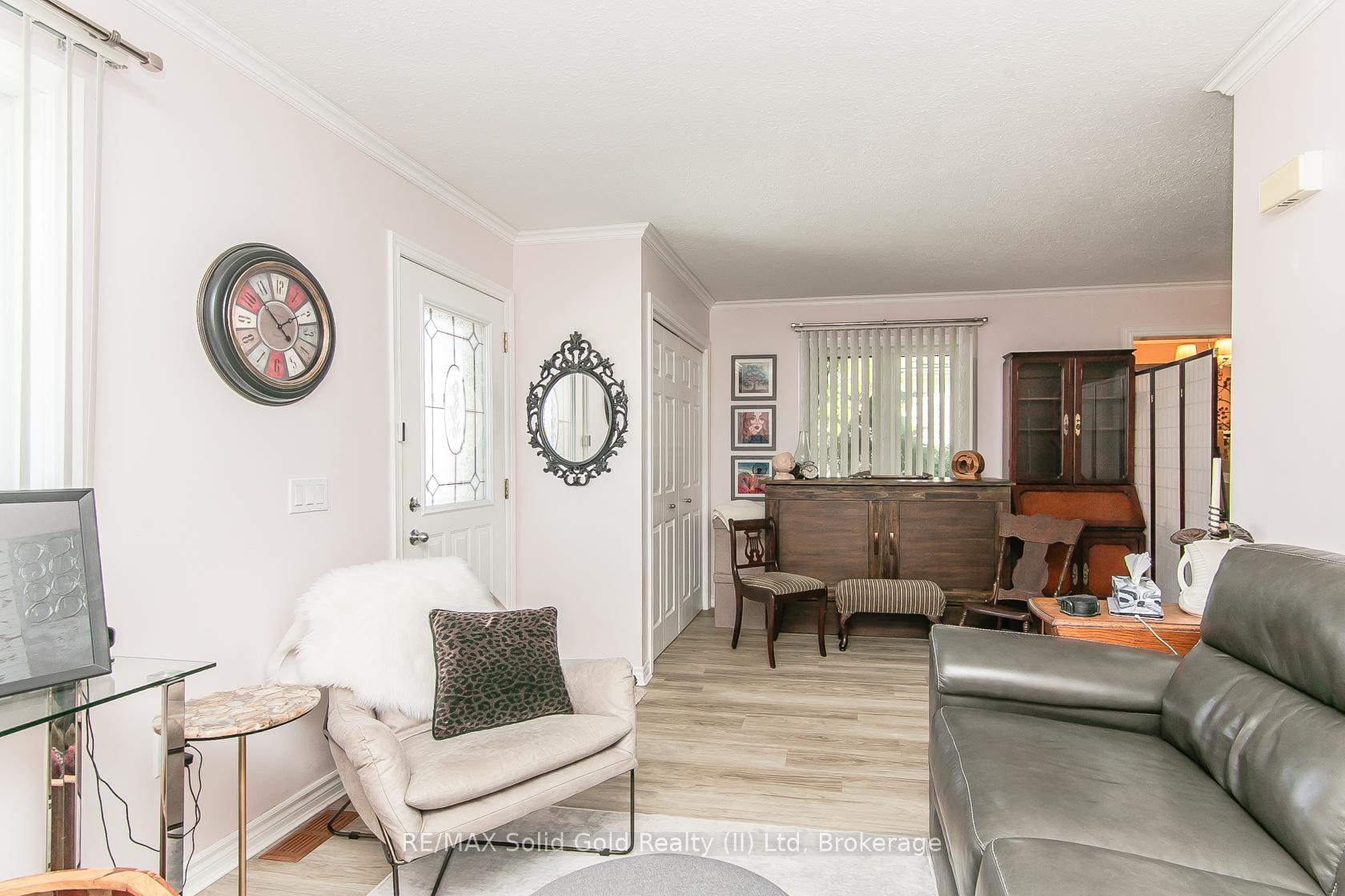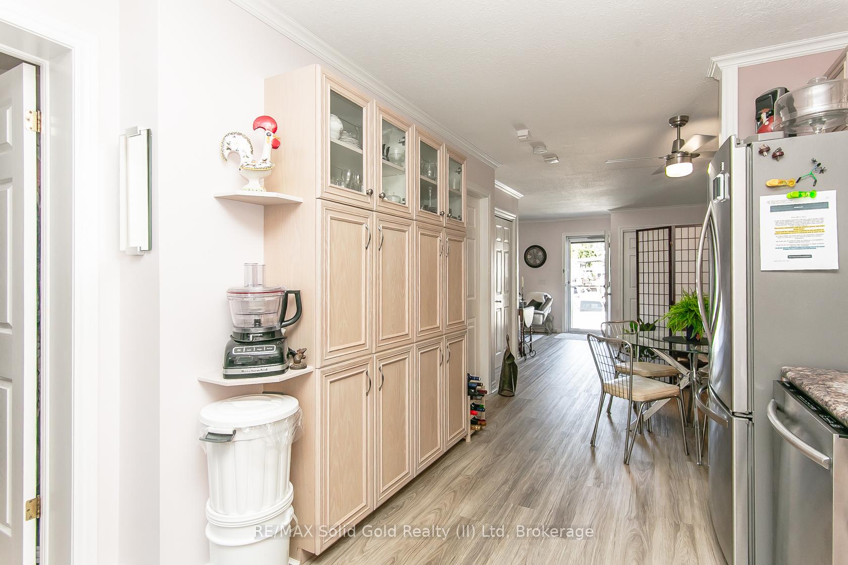 Welcome to this exceptional home nestled in the highly desirable gated community of MiniLakes with the added security of never being left without power. This home has a full backup GENERAC generator meaning that you will never be left in the dark. This home offers a perfect blend of comfort, style, and low-maintenance living, making it the ideal retreat for downsizers, empty nesters, or anyone seeking a tranquil lifestyle away from the hustle and bustle of city life. 4 Elm Street is a beautifully crafted home built by Quality Homes, known for their precision and attention to detail. Enter this beauty by way of a newly installed front deck/porch with glass railing. Step inside to be greeted by a light and airy living room featuring newer luxury vinyl plank flooring throughout, charming crown molding, and large windows that fill the space with natural light. The dining room space is perfect for family gatherings and can easily be converted into an additional bedroom if desired. The stunning kitchen boasts stainless steel appliances, backsplash, ample counter space, and pantry cupboards for all your storage needs. The main bath has been tastefully updated in the past two years by BathFitter. Step outside to your expansive deck where you can relax and enjoy views of the mature trees, plus there’s and a shed and storage hut for all extra things. Residents of MiniLakes enjoy a vibrant community lifestyle with access to spring-fed lakes, scenic canals, a heated pool, community gardens, and walking trails. Engage in various activities such as fishing, swimming, bocce, darts, and card nights, all while being just minutes away from Guelphs amenities and a quick drive to the 401. If youre ready to leave behind the confines of city living and embrace a peaceful, outdoor-oriented lifestyle, this home at MiniLakes offers an unparalleled opportunity to enjoy nature, connection, and recreation in a friendly, welcoming environment!