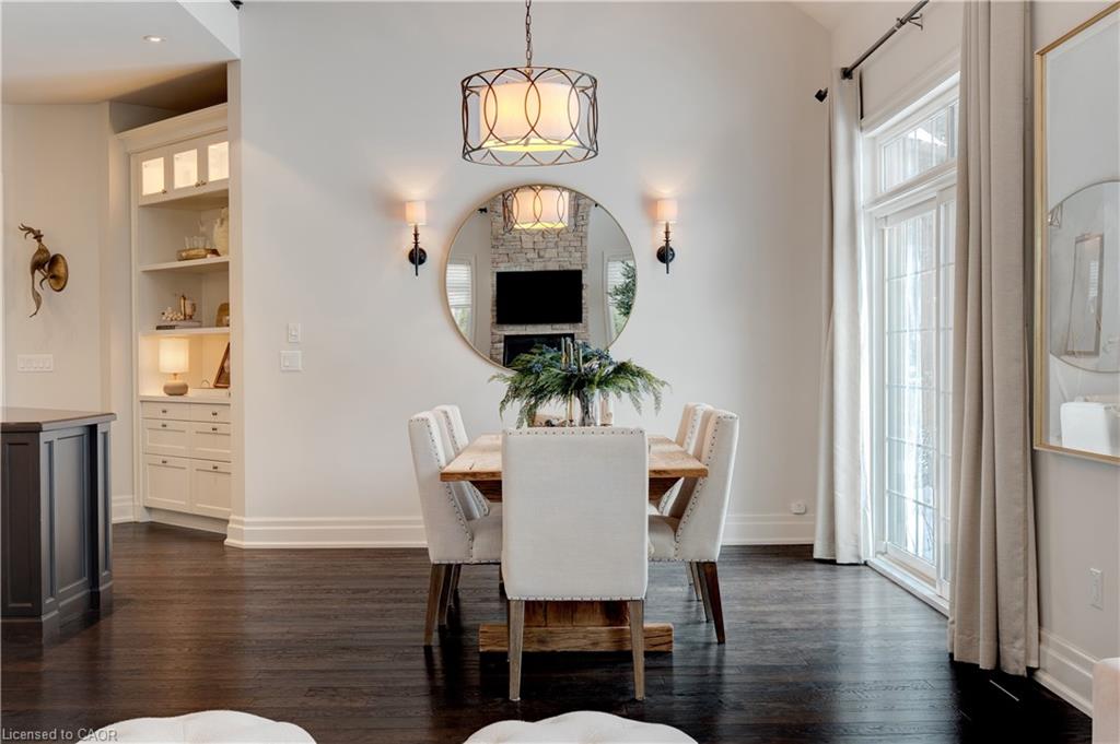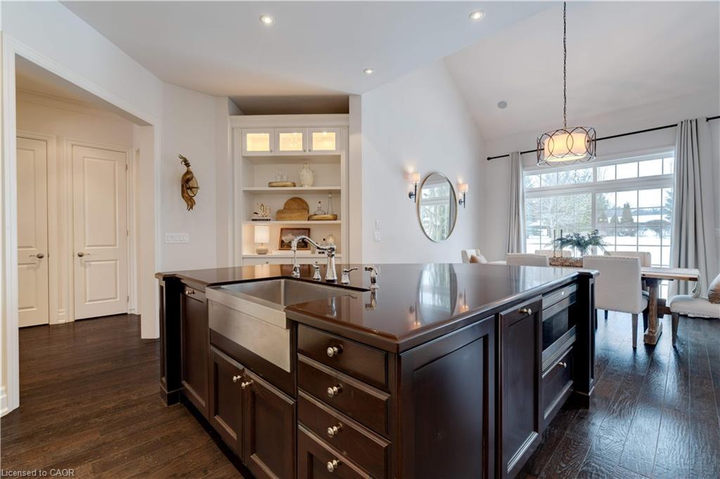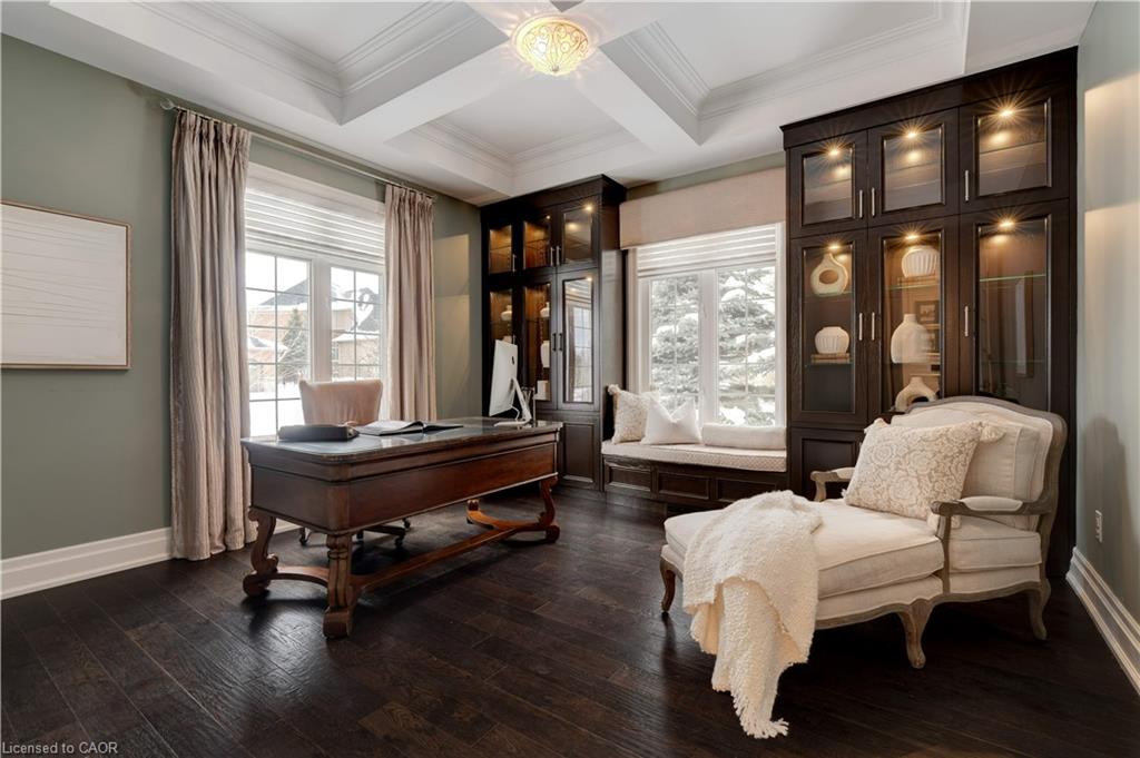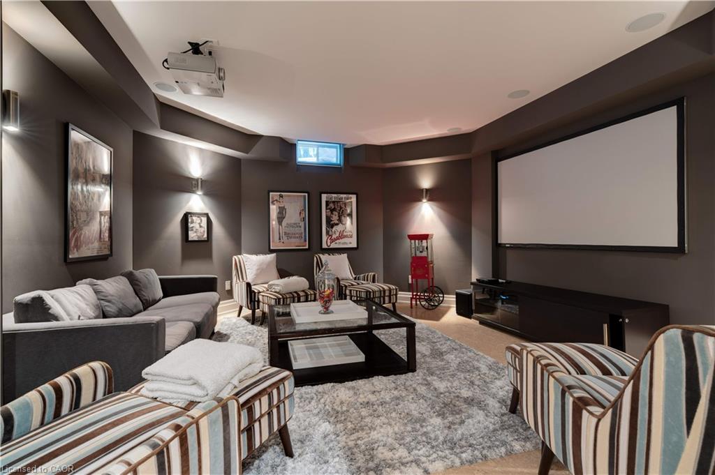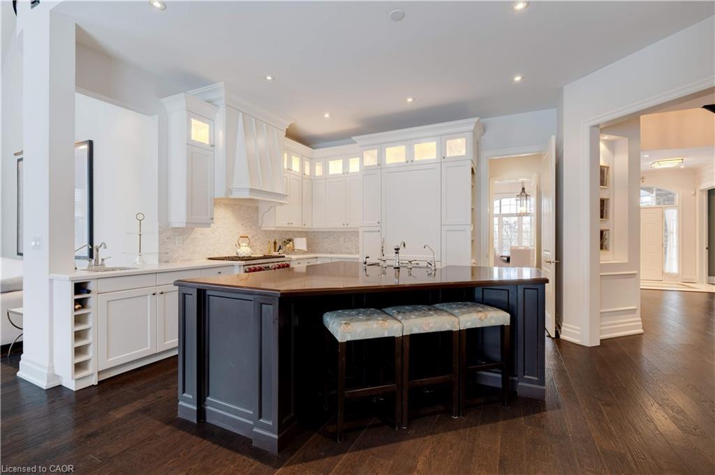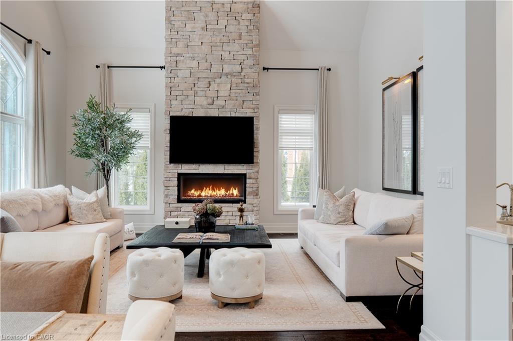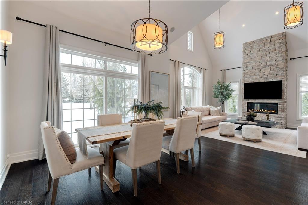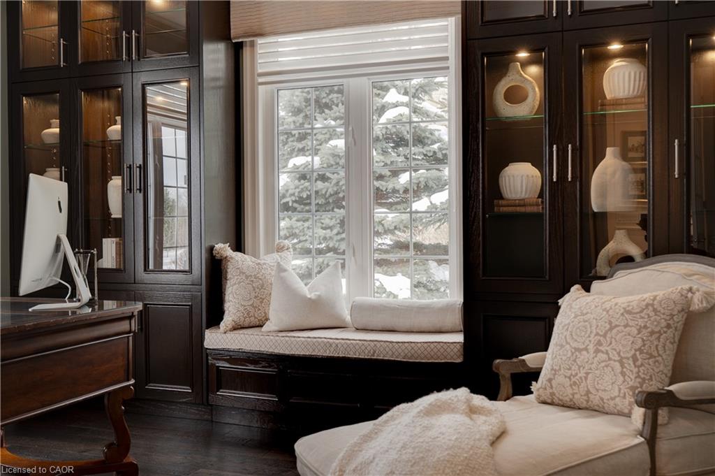 The gourmet kitchen features a large centre island, high-end finishes, and a convenient butler’s pantry, all overlooking the impressive two-storey great room with a floor-to-ceiling stone fireplace and sun-filled breakfast area. A formal dining room sits opposite a charming office, complete with a coffered ceiling and built-in window seat. The main level is anchored by a luxurious primary suite with its own fireplace and a spa-inspired ensuite. A second private bedroom suite is also located on this floor. The upper level offers a library loft overlooking the great room, along with a third spacious bedroom suite. The fully finished lower level is designed for entertaining, featuring an outstanding theatre room, a well-appointed bar, and a wine room. Step outside to experience complete serenity—lush gardens, mature landscaping, and peaceful views create the perfect backdrop for morning coffee or an evening glass of wine. A rare offering in one of Glen Williams’ most coveted enclaves. This is the lifestyle you’ve been dreaming of. Let’s get you home!