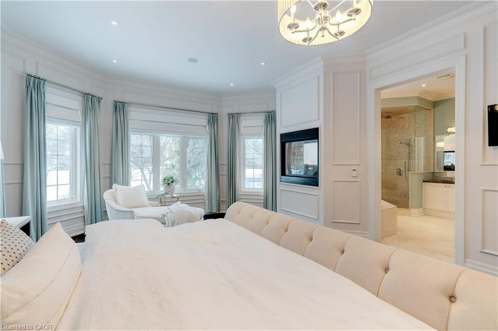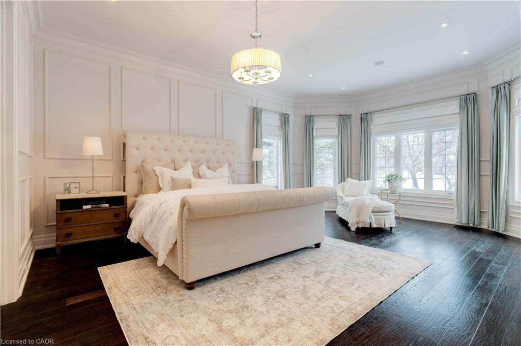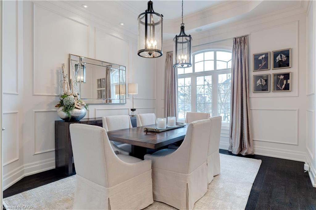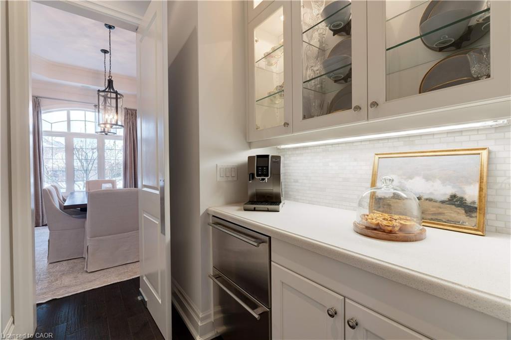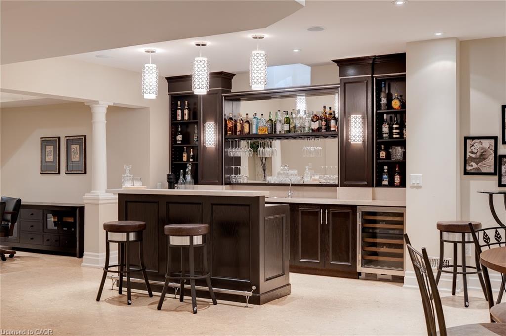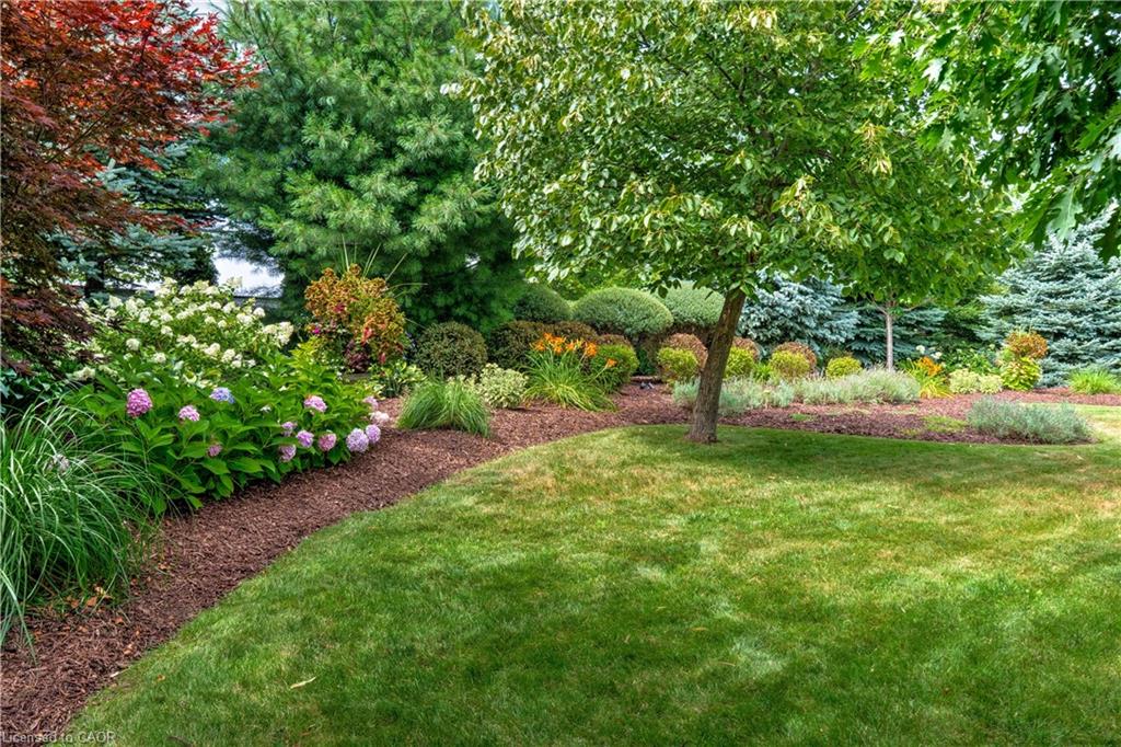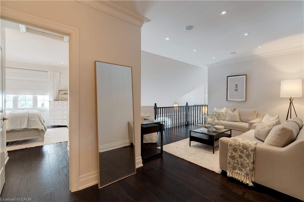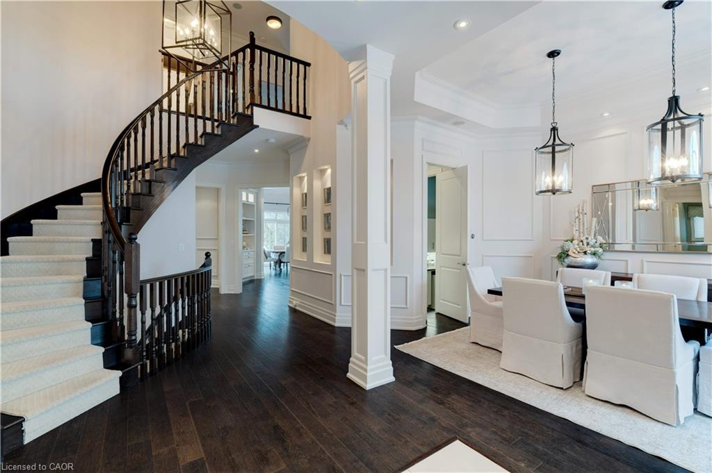 The gourmet kitchen features a large centre island, high-end finishes, and a convenient butler’s pantry, all overlooking the impressive two-storey great room with a floor-to-ceiling stone fireplace and sun-filled breakfast area. A formal dining room sits opposite a charming office, complete with a coffered ceiling and built-in window seat. The main level is anchored by a luxurious primary suite with its own fireplace and a spa-inspired ensuite. A second private bedroom suite is also located on this floor. The upper level offers a library loft overlooking the great room, along with a third spacious bedroom suite. The fully finished lower level is designed for entertaining, featuring an outstanding theatre room, a well-appointed bar, and a wine room. Step outside to experience complete serenity—lush gardens, mature landscaping, and peaceful views create the perfect backdrop for morning coffee or an evening glass of wine. A rare offering in one of Glen Williams’ most coveted enclaves. This is the lifestyle you’ve been dreaming of. Let’s get you home!