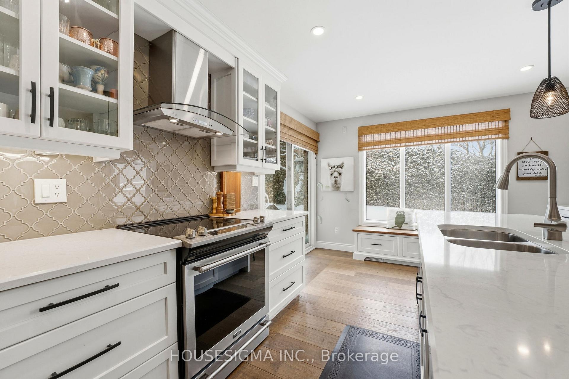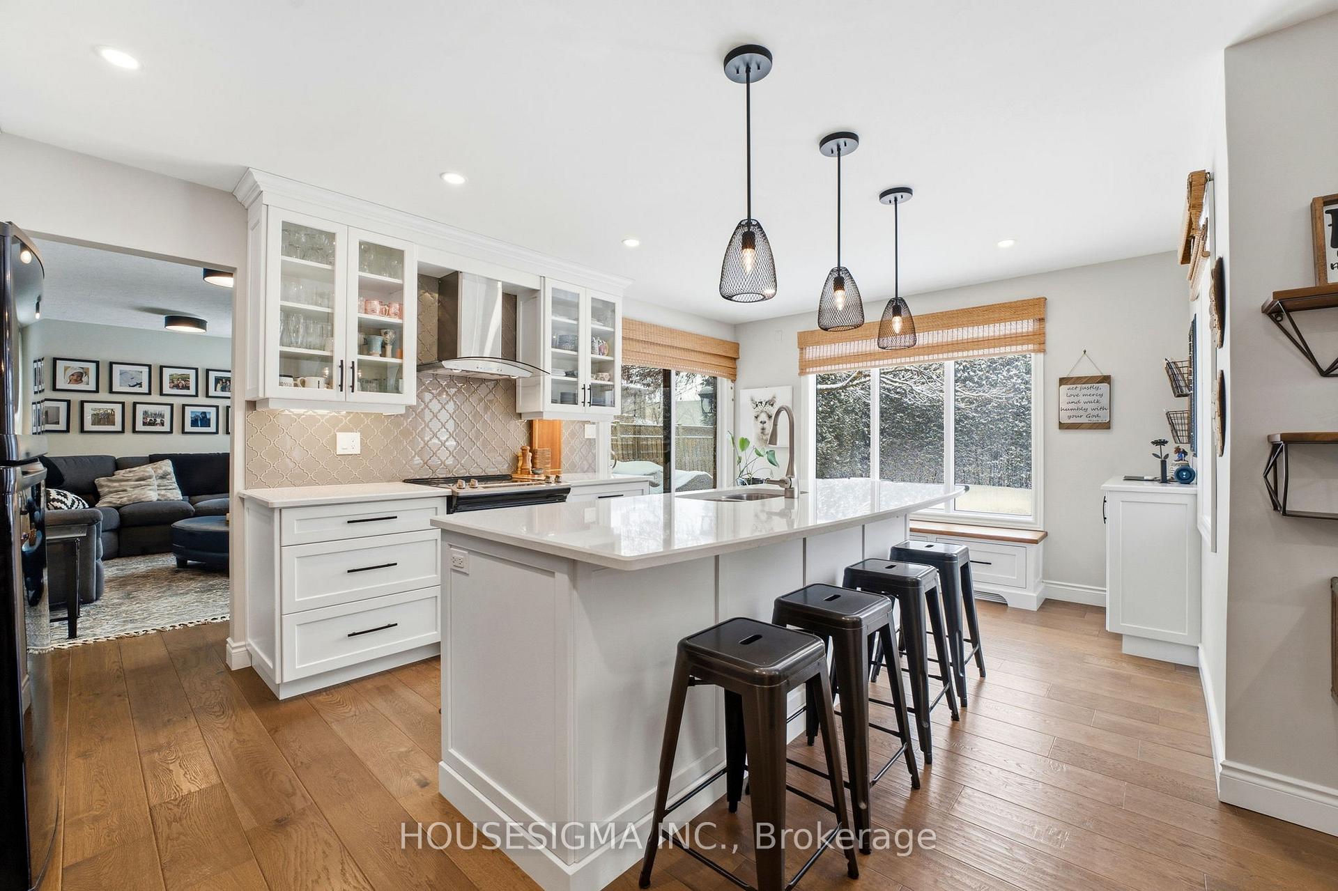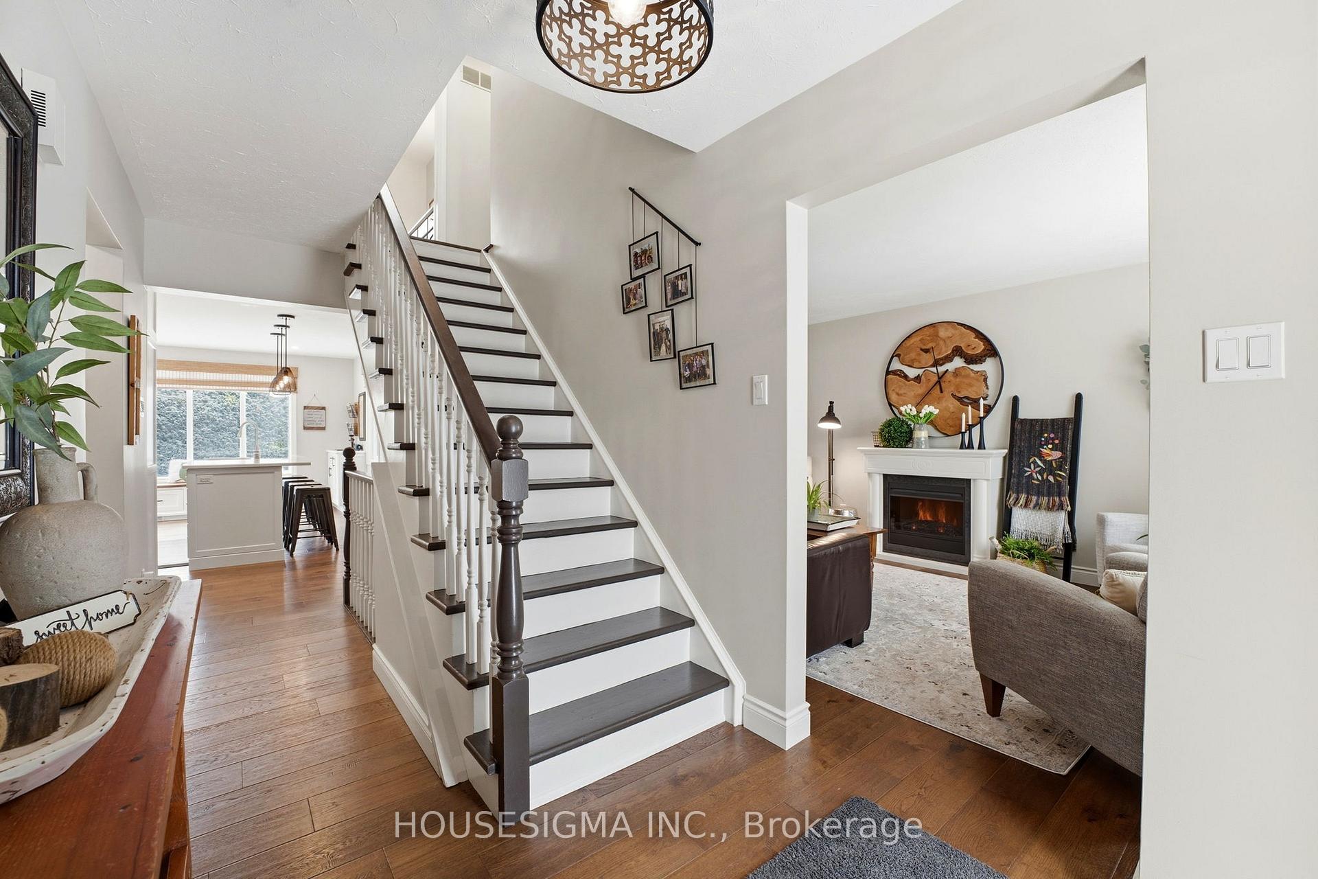 Welcome to this spacious 4+1 bedroom, 4 bathroom two-storey home offering over 3,000 sq ft of finished living space in the highly sought-after Kortright Hills neighbourhood of Guelph. Known for its quiet streets, mature trees, and family-friendly atmosphere, this area offers quick access to parks, scenic walking trails, excellent schools, the Hanlon Expressway, and south-end amenities.The main floor offers exceptional space and flexibility, featuring both a living room and separate family room-a sought-after layout that provides privacy and room for everyone. Whether entertaining guests or enjoying a quiet evening at home, the distinct living spaces offer comfort and versatility. The bright kitchen and open living area overlook a spacious backyard, made wonderfully private by a lush natural cedar hedge. Upstairs you’ll find four generously sized bedrooms, including a primary suite with its own built-in sitting room, ensuite bathroom, and ample closet space-a relaxing retreat at the end of the day. The second bedroom also features a built-in sitting room, ideal for reading, studying, or quiet workspace.The finished basement adds valuable living space with a fifth bedroom, additional bathroom, and large recreation area, perfect for guests, teens, or a home office or gym.Outside, the beautifully maintained interlock driveway offers parking for up to 7 vehicles. The backyard is framed by towering 20-foot cedars for added privacy and features recent hardscaping with raised garden beds, a stone patio along the driveway edge, and a welcoming stone front deck-perfect for outdoor relaxation and entertaining.A fantastic opportunity to enjoy space, comfort, and one of Guelph’s most desirable neighbourhoods.