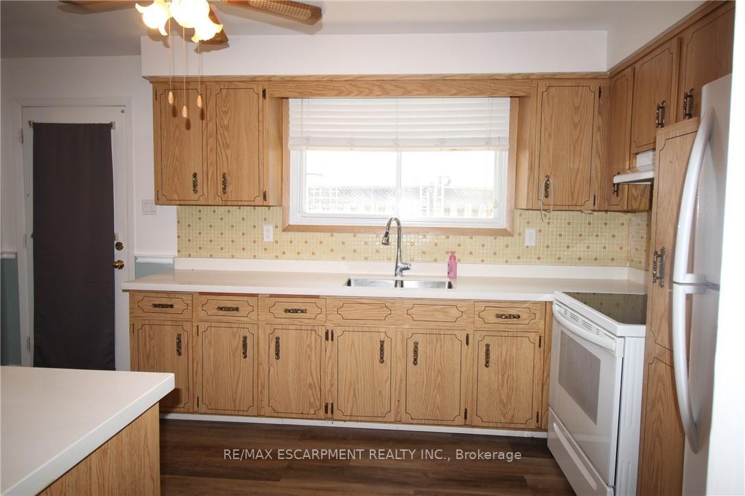 Beautiful oversized corner lot 3 level side split single family home in west mountain area, 4 bedrooms and 2 full bathrooms, laminate flooring , separate entrance to basement, minimum 6 parking spaces, close to school, shopping and highway. Easy to University of McMaster, Mohawk College. There’s a sun porch off the kitchen for added living space, sliding glass doors lead to sun porch from the dining room. Carpet Free. Upgrades: laminate floor 2021, bathroom 2021, panel 2021, lower level kitchen 2022
