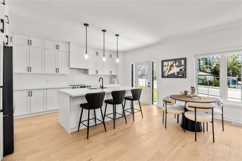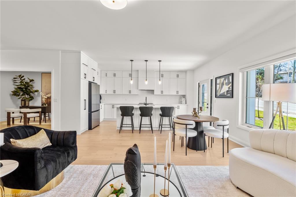 Step into refined living with this beautifully built bungalow townhome, offering 1,788 square feet of thoughtfully designed space in an exclusive enclave of just nine residences. Completed in 2023, this home blends modern farmhouse elegance with premium finishes, including quartz countertops, engineered hardwood flooring, and soaring 9-foot ceilings throughout. Designed to impress and built for versatility, the layout features two spacious bedrooms plus a generous office — perfect for professionals working from home, downsizers seeking single-level luxury, or families who love to entertain. The walk-out design adds natural light and seamless indoor-outdoor flow, enhancing the home’s livability. Nestled in a peaceful pocket just a short stroll from the historic village of Glen Williams, you’ll enjoy the charm of artisan shops and riverside cafes, with convenient access to top-rated schools, shopping, dining, and recreation centres. Whether you’re seeking tranquility, community, or connectivity, this location delivers.