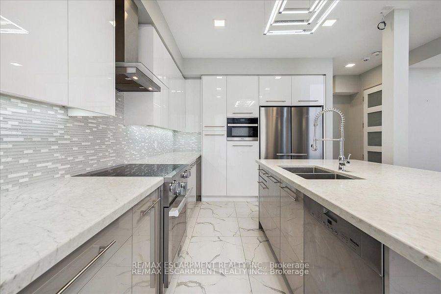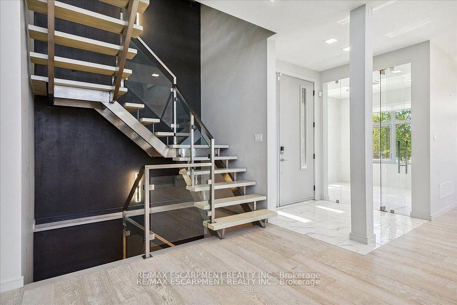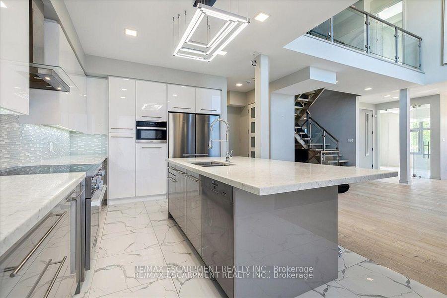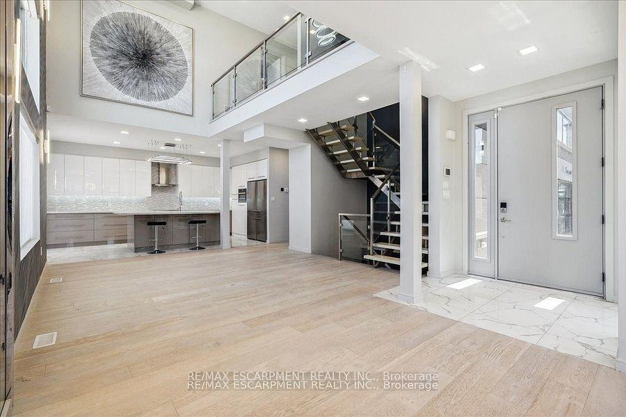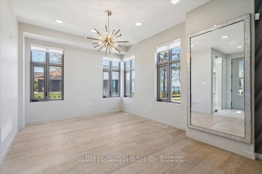 A rare lakeside opportunity – this extraordinary 3-storey residence offers over 5,000 sq ft of finely crafted living space with panoramic lake views from multiple levels. Featuring 6 bedrooms, 7 bathrooms, 2 full kitchens, and sitting on a premium 54.89 x 94 ft corner lot just steps to the lakefront and marina. The grand foyer sets the tone w/ polished porcelain tile floors & soaring ceilings, introducing a thoughtfully designed main level featuring a formal dining room, private home office, and an inviting family room. Wide-plank white oak hardwood flooring, custom millwork, and ambient designer lighting elevate the space, while the oversized windows frame the lake and floor the interior with natural light. With custom cabinetry, polished quartz surfaces, and high-end stainless steel appliances, the kitchen is equal parts showpiece and workspace. The second level features three generously sized bedrooms, each w/ their own private ensuite & balcony offering lake views. The primary suite is exceptional – with a spa-life 5-piece ensuite & an oversized terrace where you can enjoy sunset views over the water. Upstairs, the third level offers even more versatility with two additional bedrooms, a loft w/ ‘wet bar, and a private study nook – A perfect apace for relaxing or a work-from-home set up. The fully finished lower level includes a second kitchen, spacious recreation room, full bathroom, and a sixth bedroom. This is an ideal setup for multigenerational living, in-law accommodation, or extended guest stays. The professionally landscaped grounds boast a stone interlock driveway, newly planted trees for privacy, & a 3-car garage. Not to mention, you’re just a short stroll to the waterfront, marina, top schools, & boutique shopping. This one-of-a-kind property delivers it all, whether you’re looking for multigenerational living, space to entertain, or the waterfront, this is your forever home. LUXURY CERTIFIED.