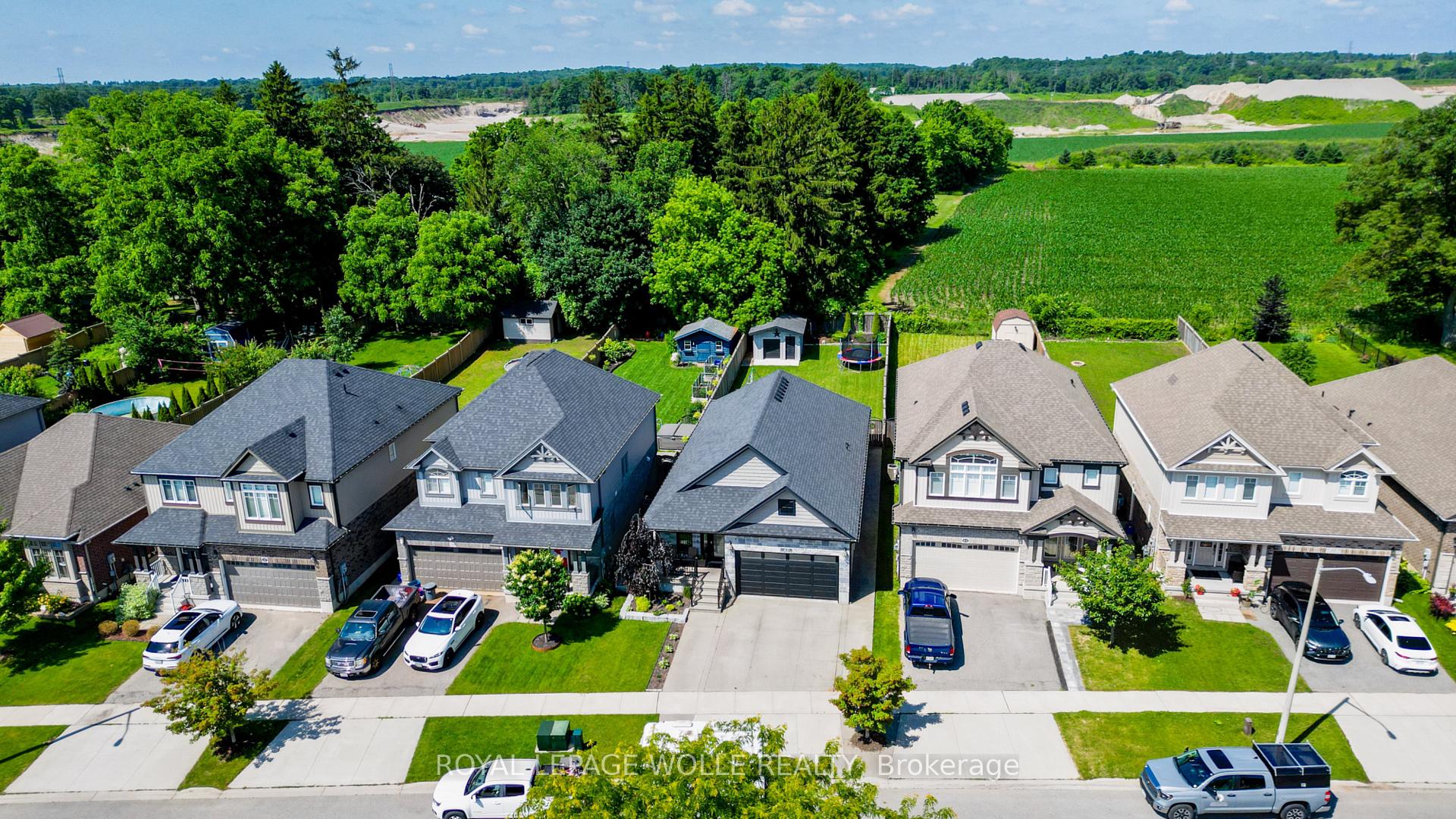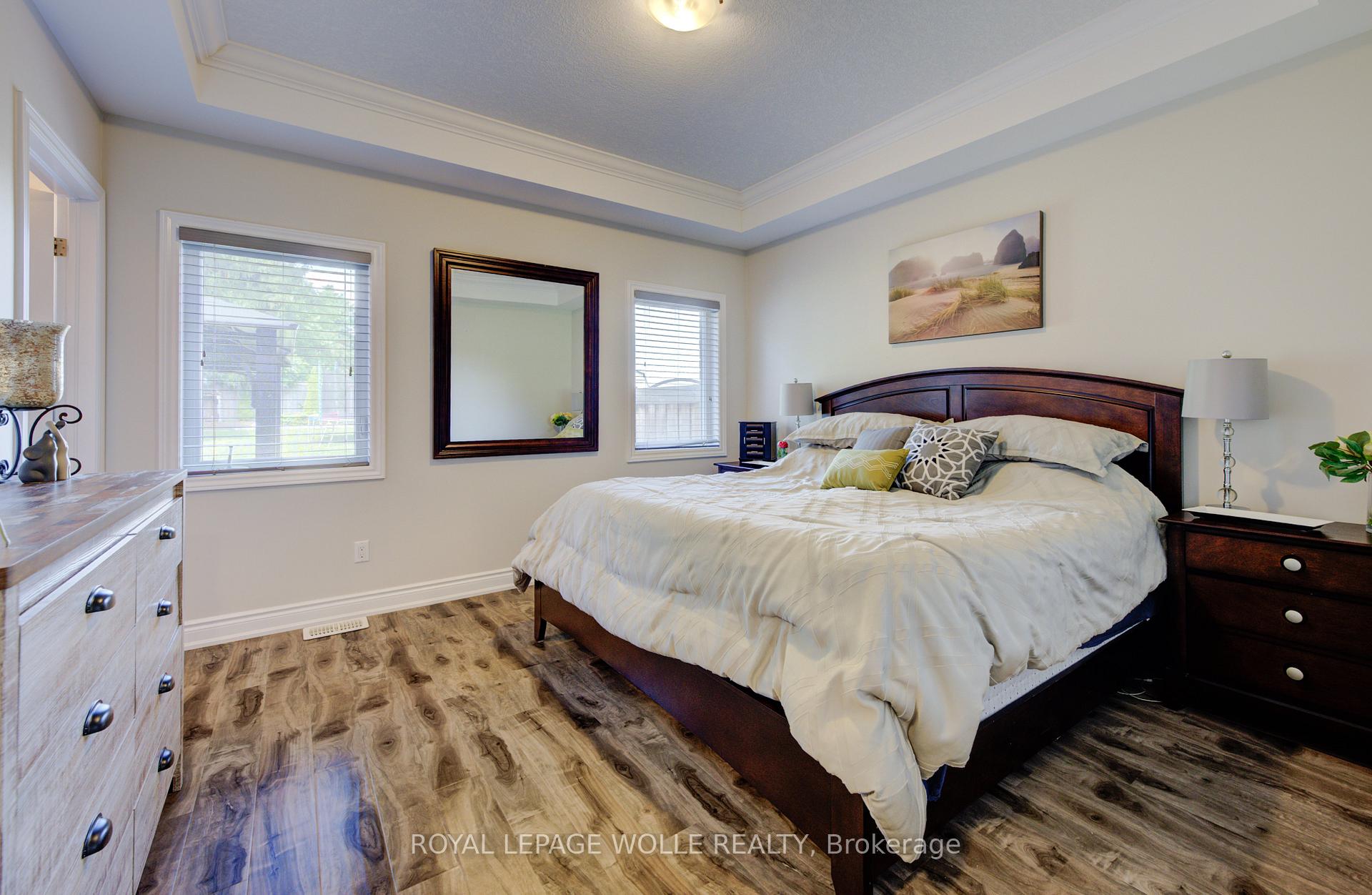 EXQUISITE property! This beautifully UPGRADED STONE BUNGALOW sits on an incredible 182 ft deep lot with no neighbours behind and OVER $100,000 in builder upgrades, custom finishes, and an unbeatable layout … inside and out. From the moment you arrive, the elegant curb appeal shines with an aggregate stone driveway, walkways, and stairs, leading to a covered front porch. Step inside to find engineered HARDWOOD flooring, CROWN moulding, and COFFERED ceilings that add timeless style to the bright, open-concept living space. The chef-inspired kitchen features fine cabinetry, quartz countertops, a custom tile backsplash, built-in range hood, walk-in pantry, and a tucked-away coffee bar. The spacious dining area is surrounded by natural light from the large windows and glass doors overlooking the backyard. The primary suite includes a tray ceiling, walk-in closet, and a 3-pc ensuite with a gorgeous tiled shower and bench. Two additional main floor bedrooms, a 5-pc bath with double vanity, and direct access to the double car garage complete the main level. The NEWLY FINISHED basement offers stunning luxury flooring, two oversized bedrooms, a home gym, private office, and a spacious rec room perfect for entertaining, relaxing, or multigenerational living. High ceilings, large egress windows, and a bathroom rough-in add flexibility for future needs. Step outside to the show-stopping backyard retreat with no rear neighbours, aggregate patio, professional landscaping, and a 12×14 ft workshop with 240-amp service. The fully insulated garage is roughed-in for heat and ideal for storage or workspace. Bonus: wheelchair accessible AND generator back up! Located on a quiet street near schools, shopping, and nature, this is your chance to own a home that truly has it all.*measurements as per iguide.