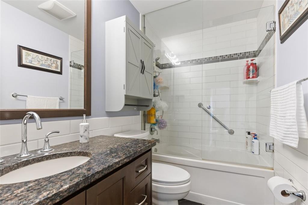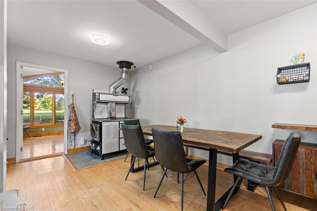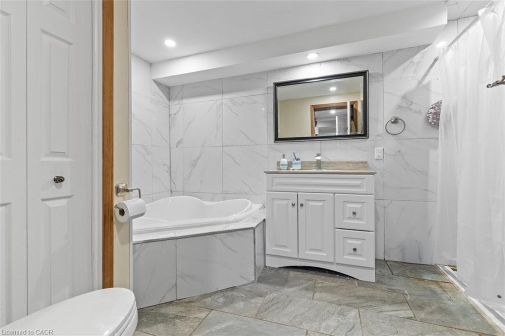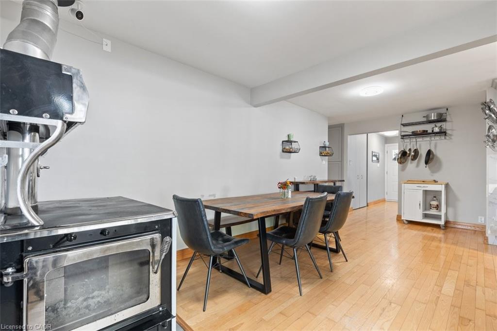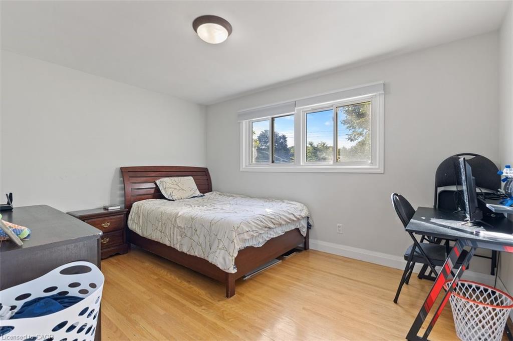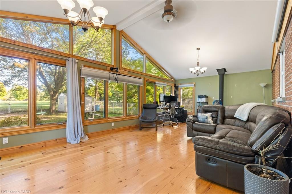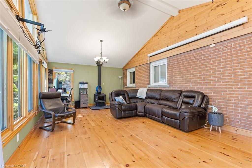 With over $150,000 in recent upgrades, this brick raised bungalow in Kitchener’s sought-after Stanley Park, offers 2,500 sq.ft. of finished living space. From the moment you arrive, the double-wide concrete driveway, stone retaining wall, and welcoming front steps set the tone for what’s inside. Step through the front door and you’re greeted by hardwood flooring that flows seamlessly from the living room into the kitchen and dining room. The kitchen is a chef’s dream with newer stainless steel appliances, granite countertops, and a gas stove, combining modern convenience with timeless style. The impressive 27′ x 14′ four-season sunroom steals the show — surrounded by windows that flood the space with natural light and featuring a wood-burning stove, it offers year-round views of the expansive backyard that backs directly onto Franklin Park. A backyard hot tub adds to this perfect retreat.