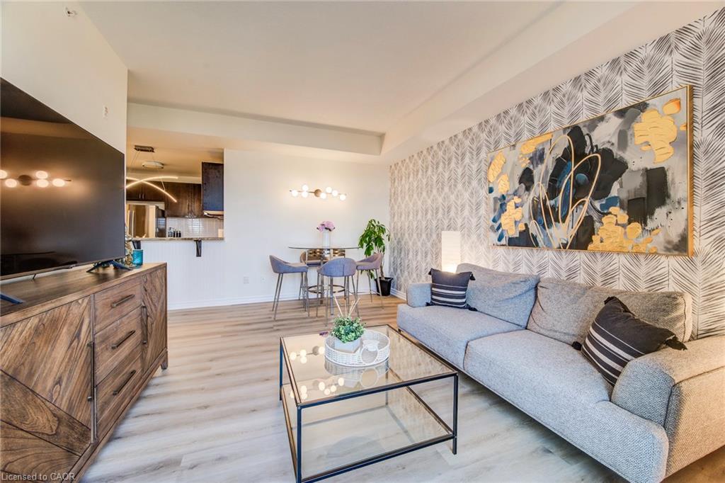 $4000 Marketing Incentive credit to Buyer at Closing. TWO Parking spots and a locker. Welcome to this beautifully updated 2-bedroom condominium offering style, comfort, and convenience. Top floor. Bright and tastefully decorated throughout, this move-in-ready unit features fresh paint, upgraded lighting, and new luxury vinyl plank flooring that adds a modern touch. The open-concept living and dining area is filled with natural light, while the custom accent wall in the primary bedroom adds a touch of designer flair. Step out onto a balcony straight from the pages of Homes & Gardens — a beautifully designed outdoor retreat perfect for quiet morning coffees or unwinding with a glass of wine at sunset. Enjoy fantastic building amenities including a well-equipped fitness room, an inviting event/party room, and plenty of visitor parking for your guests. Conveniently located close to shopping, transit, and everyday essentials—this is condo living at its best!