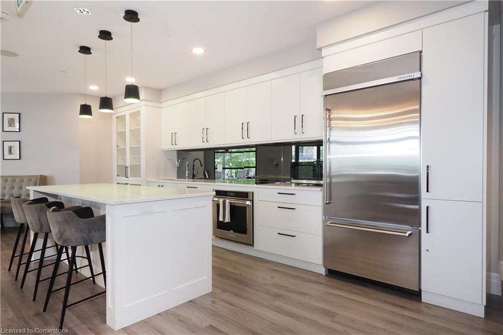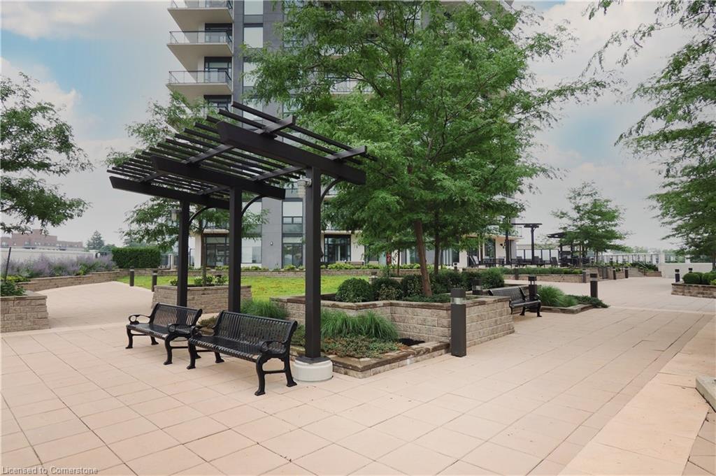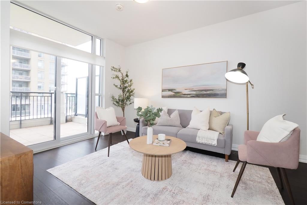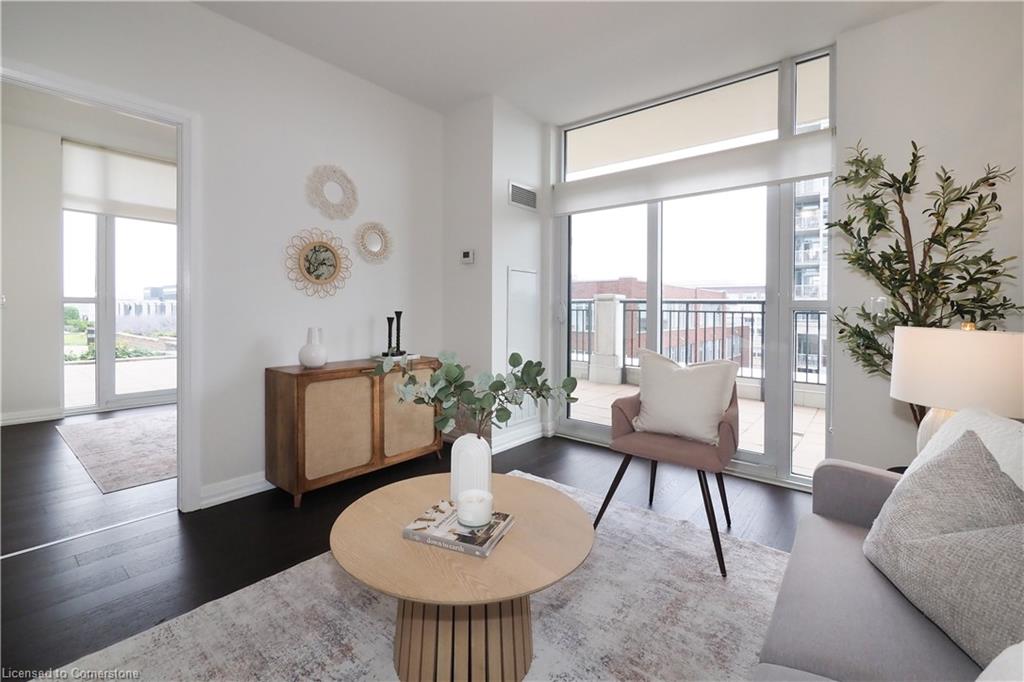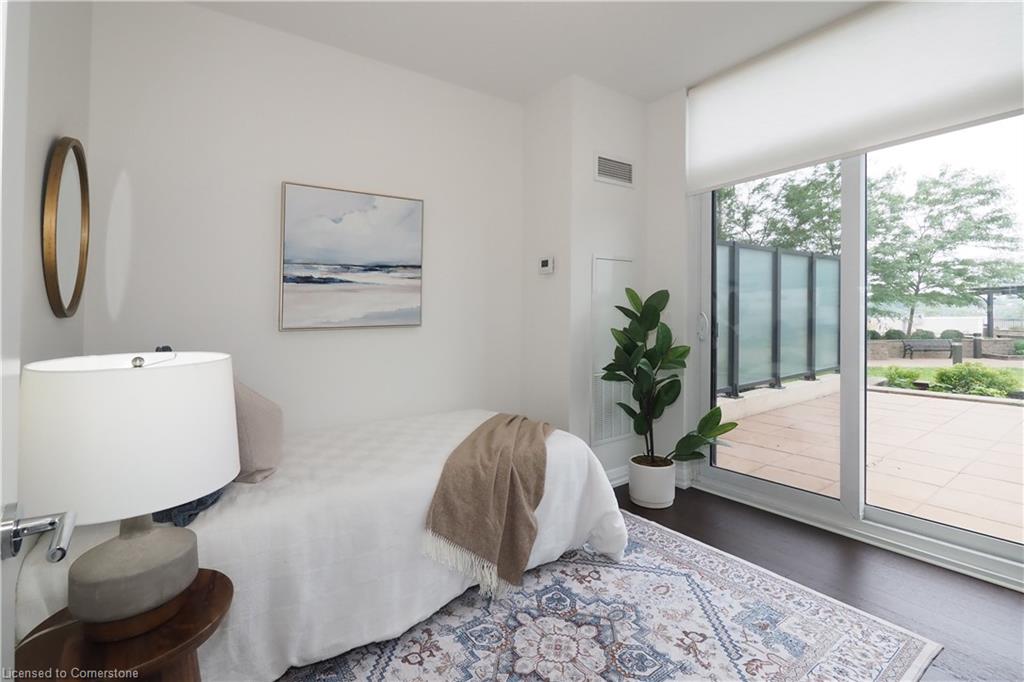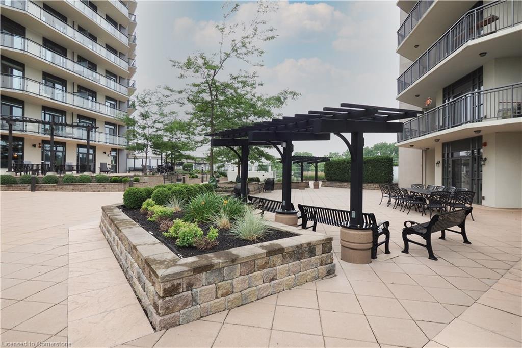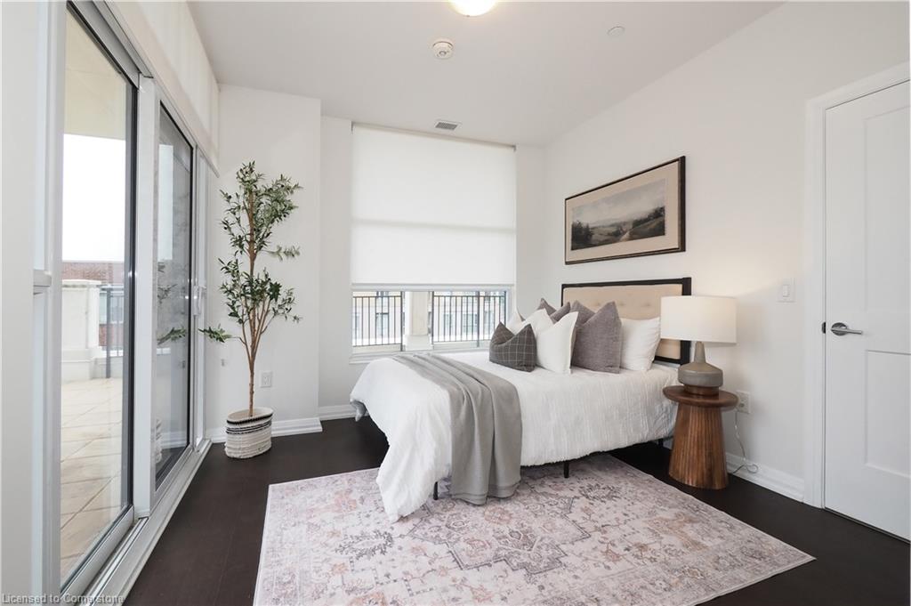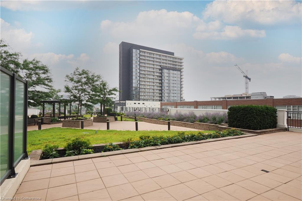 Don’t miss this rare and spectacular corner unit at the prestigious 155 Caroline Street Private Residences, perfectly located in the heart of Uptown Waterloo. This stunning 2-bedroom, 2-bathroom suite boasts an exceptional floor plan and an expansive private terrace that seamlessly extends your living space—more than doubling it—with views overlooking the beautifully landscaped 4th-floor common area. Inside, you’ll find 920 sq. ft. of thoughtfully designed living space featuring an upgraded kitchen with quartz countertops, stainless steel appliances, a breakfast bar, and a bright open-concept layout that flows into the spacious living and dining area. Enjoy the convenience of in-suite laundry and two stylish bathrooms, both finished with sleek quartz counters. Three separate sliding doors provide direct access to your incredible 958 sq. ft. private patio from both bedrooms and the living room, creating an airy, indoor-outdoor lifestyle that’s truly one of a kind. Residents enjoy exceptional building amenities including a concierge-staffed lobby, a chic party room, a well-equipped fitness centre, a theatre room, outdoor terrace, and guest suites for visiting family and friends. Situated steps from Vincenzo’s gourmet market, fine dining, trendy cafés, Belmont Village, boutique shopping, and the LRT, this unbeatable location also offers quick access to both universities, Google, Sun Life, and the Innovation Centre. This is Uptown living at its finest—style, space, and sophistication all in one extraordinary home.