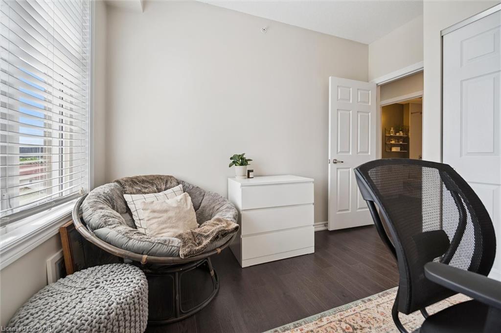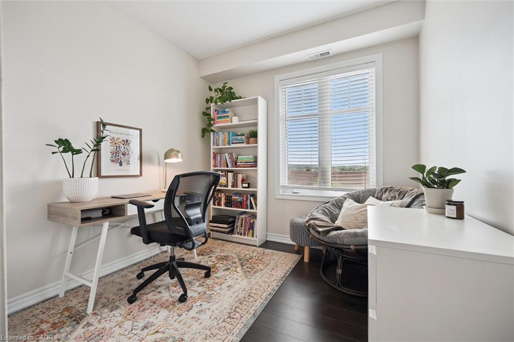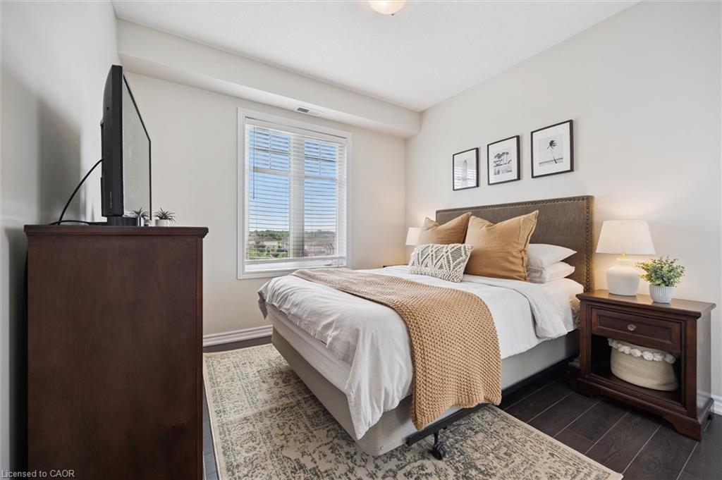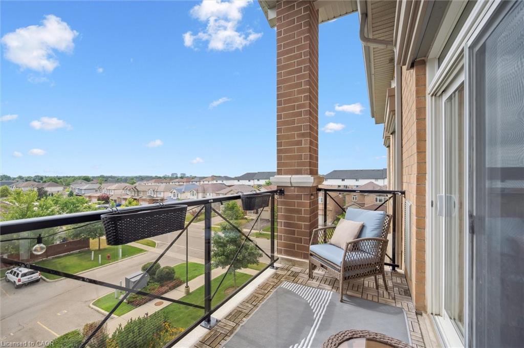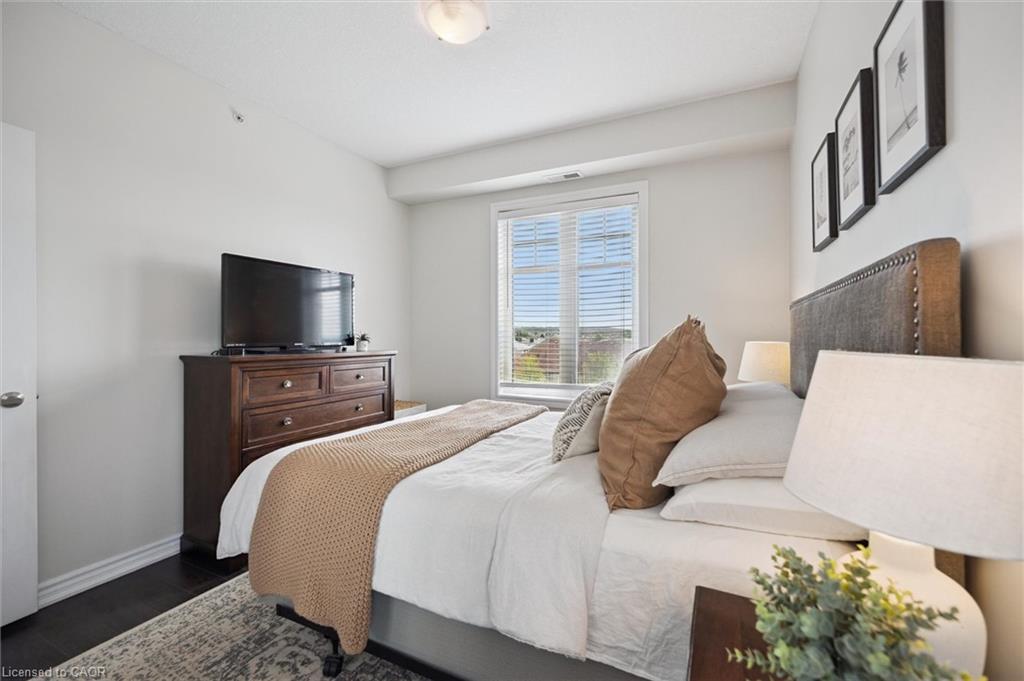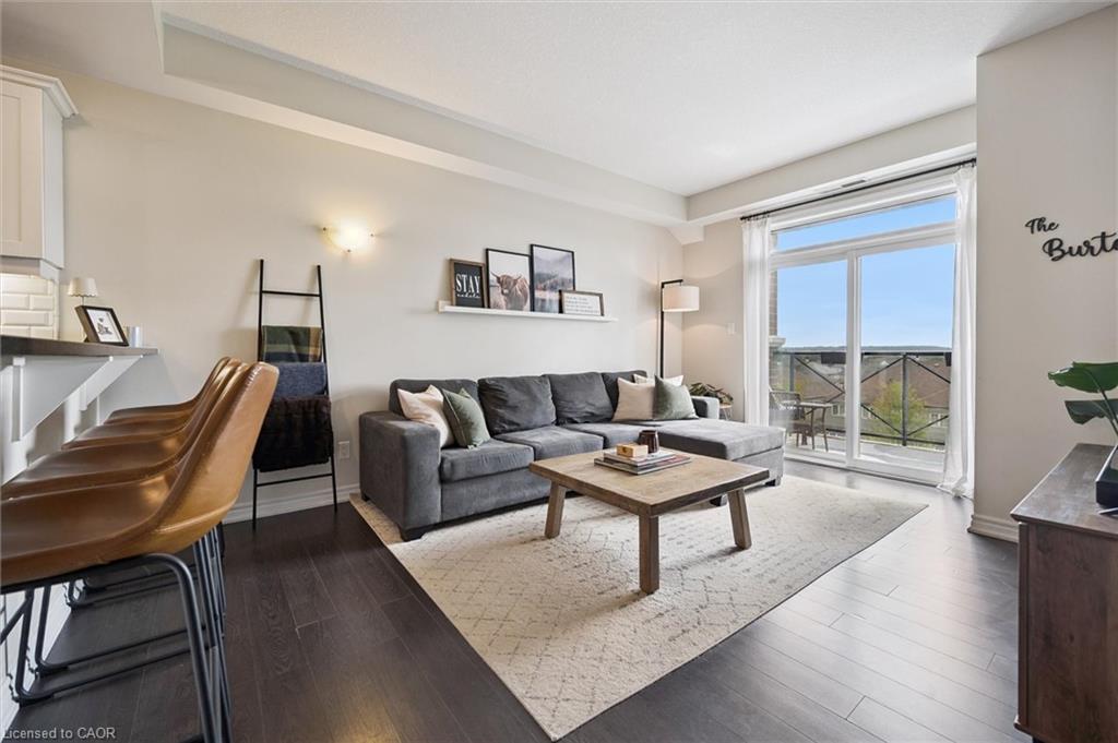 Absolutely gorgeous and move-in ready! This bright, stylish top floor, end-unit South End Guelph condo is dressed to impress with granite countertops, wood-look flooring, and soft, neutral finishes that make decorating a breeze. Offering over 810 sq. ft., it features two bedrooms and two full bathrooms, including a lovely primary suite with its own ensuite and a glass-enclosed shower. The open-concept layout feels fresh and inviting perfect for hosting friends with an updated kitchen complete with stainless steel appliances and a chic backsplash overlooking the living and dining area. Step through the patio doors to your private balcony, ideal for morning coffee or unwinding after a long day. Youll also enjoy an underground parking spot, plus building perks like a well-equipped gym, event/party room, and plenty of visitor parking. Just minutes from the University of Guelph, everyday conveniences, and the 401, its a beautiful choice for both homebuyers and investors.