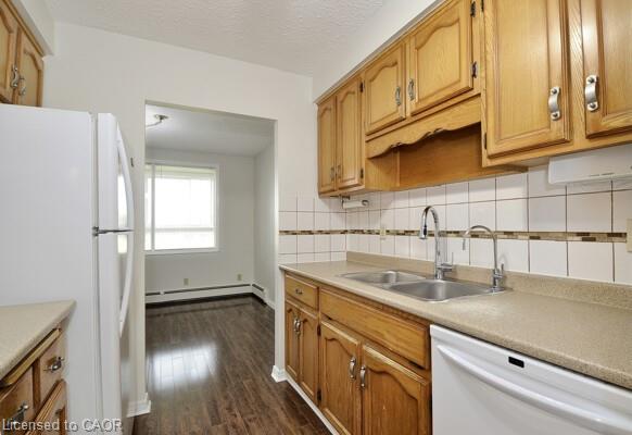 Step into comfort, style, and effortless living in this beautifully maintained 2-bedroom, 1-bathroom condo, nestled in one of East Galt’s most desirable communities. Bright and inviting, the open-concept living and dining area showcases elegant laminate flooring and flows naturally onto a sunny enclosed balcony—your private escape surrounded by mature trees, perfect for morning coffee or unwinding after a long day. The modern kitchen offers ample cabinetry and a convenient office nook, ideal for working from home or keeping things organized. Both bedrooms are spacious and filled with natural light, complemented by an updated bathroom designed for everyday ease. With in-suite laundry, a dedicated storage locker, and secure underground parking, this home checks every box. Residents also enjoy access to well-maintained building amenities and a prime location close to shopping, transit, parks, and scenic walking trails. Experience the perfect blend of comfort, convenience, and community—your next chapter begins here.