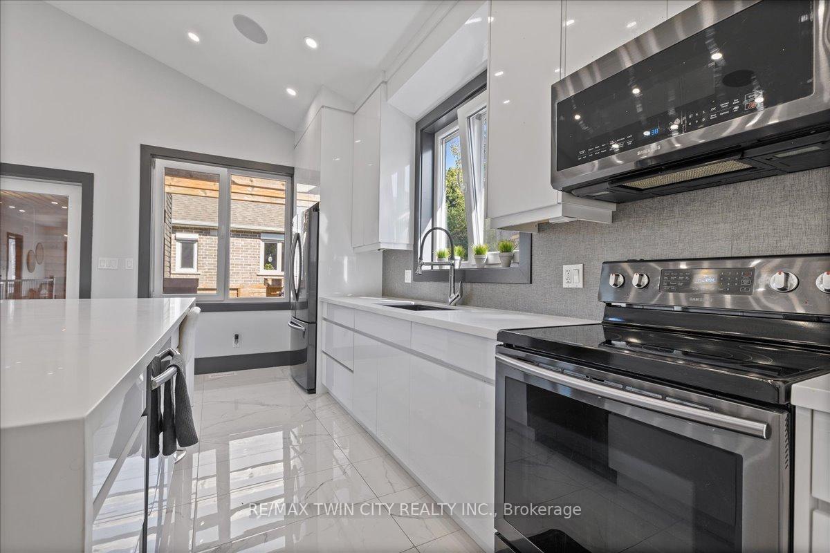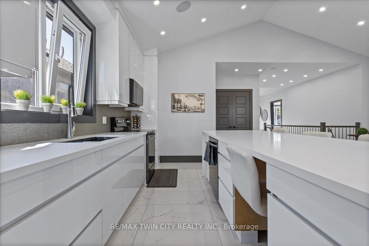 Custom built 2019 bungalow! Located in Preston North, walking distance to St Michael Catholic School, this home offers tons of structural and cosmetic updates. With over 2500 sq feet of total living space and 9 ceilings heights on each level, the home offers capacity and useability; also featured on the main level are vaulted and coffered ceiling accents. The kitchen is a modern design and offers capacity with style, featuring a four person island with waterfall countertops and stainless steel appliances. It sits adjacent to the family room, in the open space along the back of the home. The focal point is a stunning contemporary feature wall with electric fireplace insert. Smart home features are integrated throughout, including over 160 LED pot lights with diming capacity, multi zone surround sound system, and programable thermostat. The balance of the main level consists of the primary suite with walkin closet and 4 pc luxury ensuite complete with body jets and rainfall glass shower, 4 pc main bathroom, second bedroom, and laundry mud room with direct access to the garage. A hardwood staircase leads to the fully finished basement offering an oversized recreation room with wet bar rough in, 4 pc bathroom, two bedrooms, one with 3 pc ensuite. The home is carpet free with porcelain and engineered flooring throughout. For maximum comfort, an in-floor heating system organized in multiple zones spans the entire home, making sure you eliminate cold basement floors. The home is also thermally superior and safe, not only is it completely cladded in stucco, providing for a higher than required R value, it also features high quality European tilt and turn windows and doors with robust locking mechanisms and electronic exterior shutters, giving you the ability to completely shut out light during daytime if desired. The house sits on a larger corner lot with a fully fenced yard, backyard deck, and double concrete driveway. A home you need to see in person to fully appreciate!