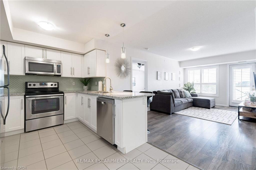 Welcome to Village Suites, a sought-after low-rise condo in one of Milton’s most desirable neighbourhoods! This beautifully maintained top-floor 2 bedroom, 2 bathroom suite offers the perfect blend of comfort, style, and convenience. Enjoy a bright and airy open concept layout with southern exposure, filling the space with natural light throughout the day. The upgraded white kitchen features granite countertops, a glass backsplash, stainless steel appliances, and a functional breakfast bar perfect for casual dining or entertaining.The unit boasts modern laminate flooring throughout with no carpet, creating a clean and cohesive look. The spacious primary bedroom includes a private ensuite with a large walk-in shower, while the second bedroom is ideal for guests, a home office, or growing families. Step outside to your private south facing balcony, perfect for enjoying morning coffee or admiring the sunset. Additional highlights include underground parking and a storage locker for added convenience. Location, Location, Location! Ideally situated close to Parks, schools, Shopping, restaurants, and everyday amenities! Easy access to highways and transit for commuters! This is an exceptional opportunity to own a stylish, move-in-ready condo in a fantastic community perfect for first-time buyers, down sizers, or investors alike! Flexible possession available!
