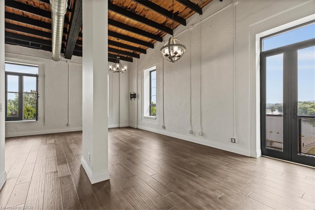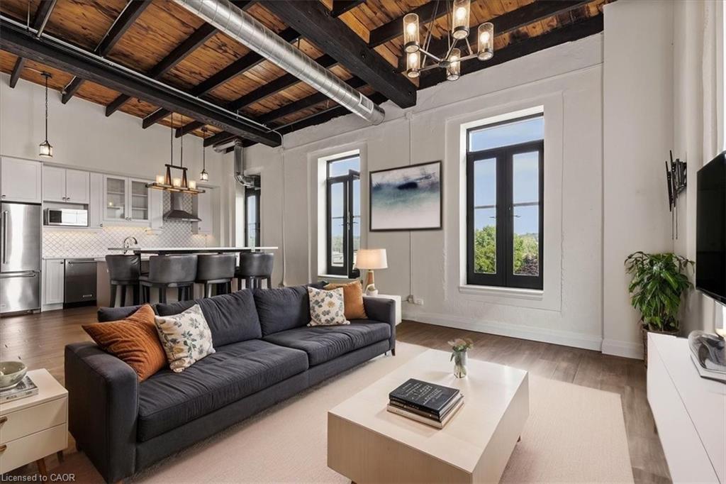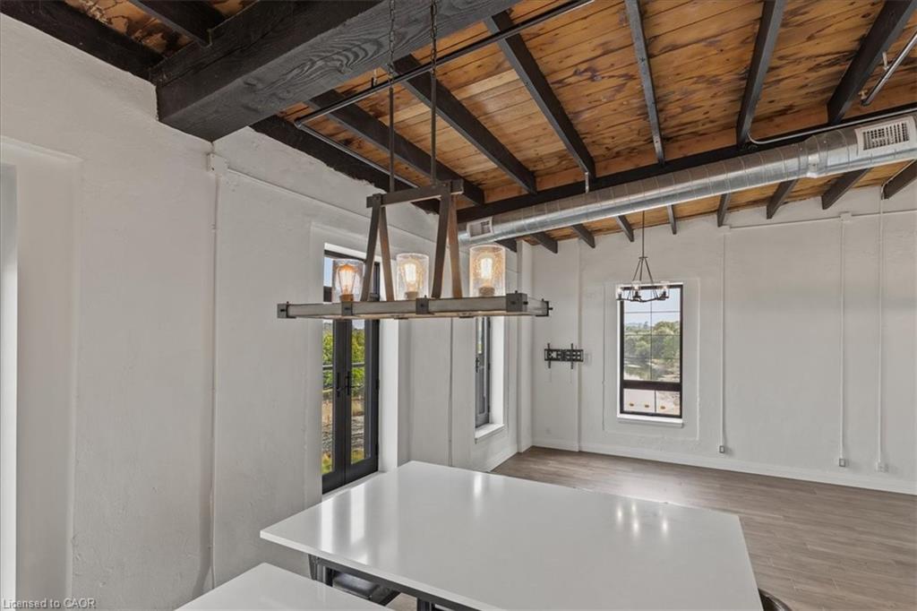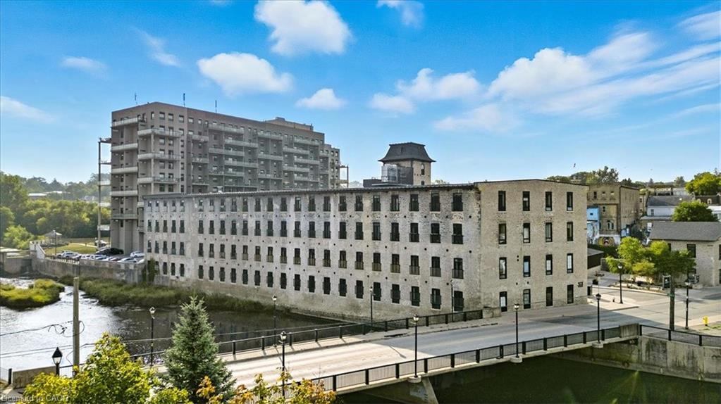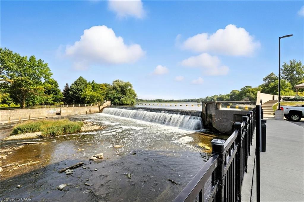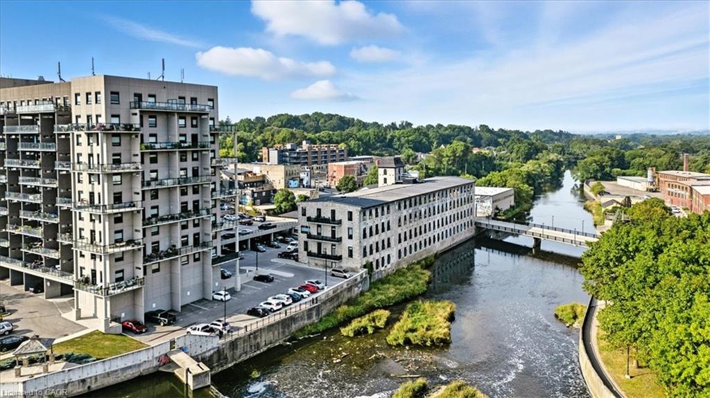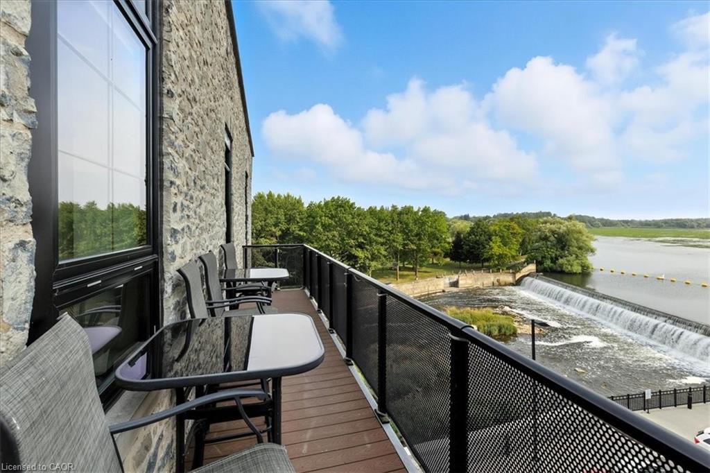 Experience refined riverside living at the coveted Riverbank Lofts in historic Hespeler Village. Welcome to Penthouse 408 at 19 Guelph Avenue, a bright, beautifully designed 2-bedroom, 3-bathroom corner unit that offers a perfect blend of elegance, comfort, and natural beauty. Nestled above the Mill Pond and cascading falls, this home provides unobstructed views of the river and surrounding landscape from a full-length private balcony. Enjoy the soothing sounds of the water, and the peaceful ambiance of nature right from your own living space.The thoughtfully laid-out open-concept floor plan is ideal for both everyday living and entertaining. With generous natural light streaming in, premium finishes, and spacious principal rooms, this suite offers a serene and stylish retreat. Both bedrooms are well-appointed, offering privacy and comfort, while the three bathrooms provide added convenience and functionality. Whether youre enjoying a quiet evening or hosting friends and family, Suite 408 offers an inviting and sophisticated setting.The building is rich in amenities and designed with lifestyle in mind. Residents enjoy access to a secure bike room, 2 lounges, a convenient dog wash station, and an owned storage locker. The rare inclusion of a double private garage adds exceptional value and ease of living. Every element has been thoughtfully curated to enhance your daily experience, making this more than just a place to live – it’s a home designed for enjoyment and connection. Located just steps from charming local shops, scenic walking trails, and all the conveniences of Hespeler Village, Riverbank Lofts offers a unique opportunity to live in a landmark building that harmonizes heritage charm with modern luxury. Suite 408 is a rare gem that combines low-maintenance condo living with the tranquility of nature, right in the heart of the community. This is more than a residence – it’s a lifestyle worth embracing. Virtual staging of 4