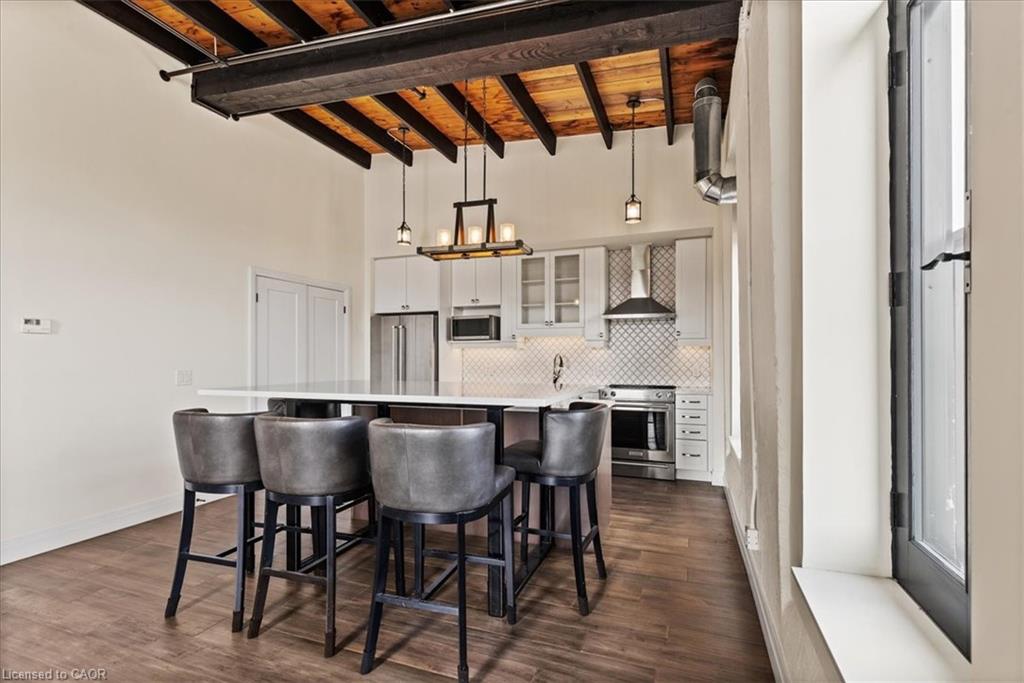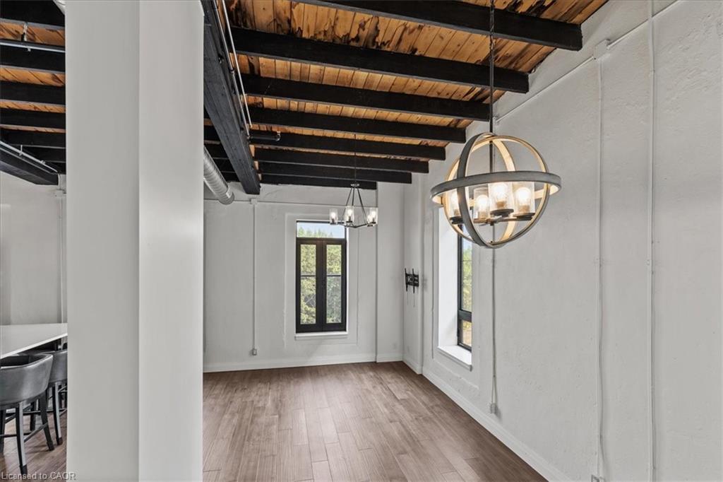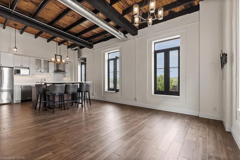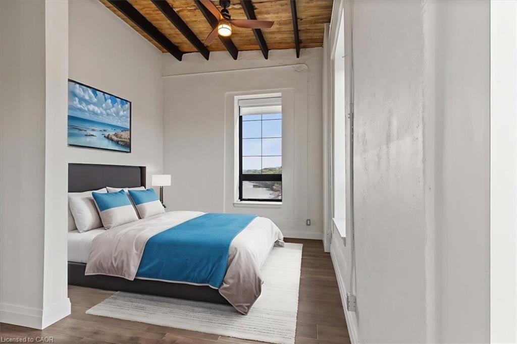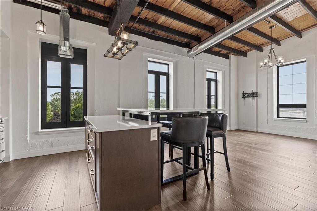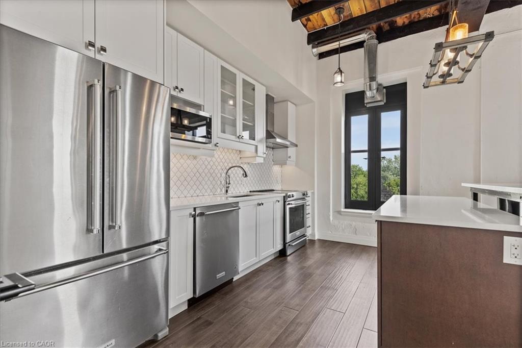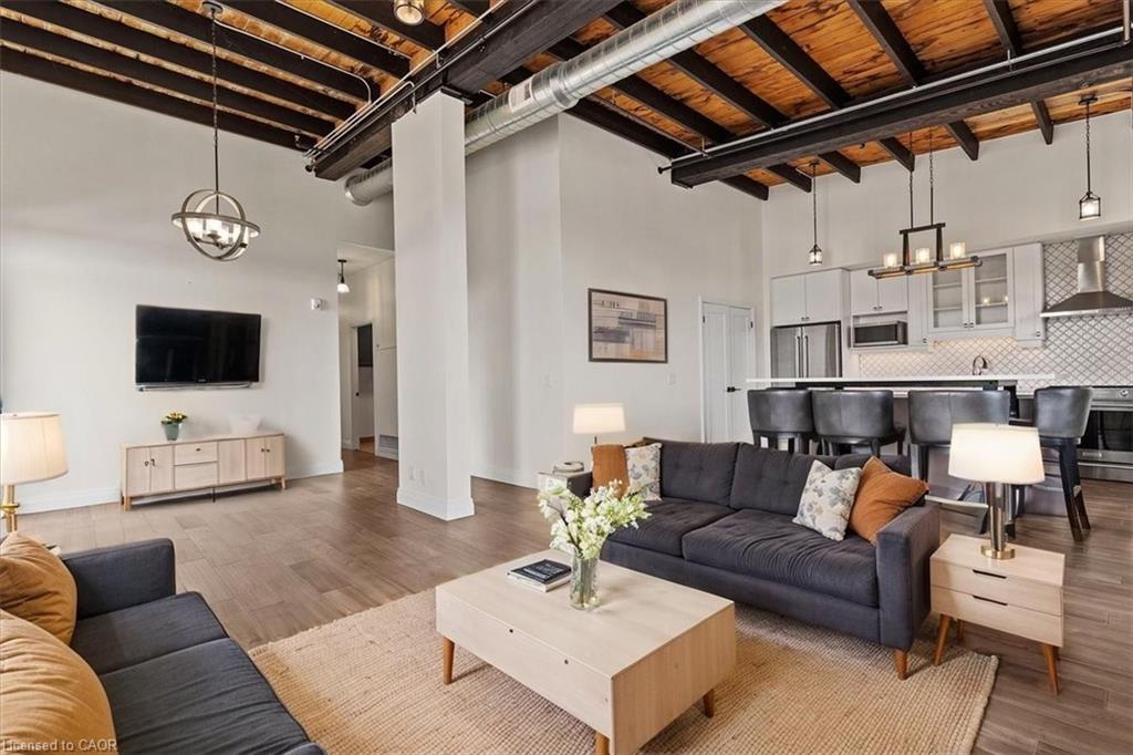Experience refined riverside living at the coveted Riverbank Lofts in historic Hespeler Village. Welcome to Penthouse 408 at 19 Guelph Avenue, a bright, beautifully designed 2-bedroom, 3-bathroom corner unit that offers a perfect blend of elegance, comfort, and natural beauty. Nestled above the Mill Pond and cascading falls, this home provides unobstructed views of the river and surrounding landscape from a full-length private balcony. Enjoy the soothing sounds of the water, and the peaceful ambiance of nature right from your own living space.The thoughtfully laid-out open-concept floor plan is ideal for both everyday living and entertaining. With generous natural light streaming in, premium finishes, and spacious principal rooms, this suite offers a serene and stylish retreat. Both bedrooms are well-appointed, offering privacy and comfort, while the three bathrooms provide added convenience and functionality. Whether youre enjoying a quiet evening or hosting friends and family, Suite 408 offers an inviting and sophisticated setting.The building is rich in amenities and designed with lifestyle in mind. Residents enjoy access to a secure bike room, 2 lounges, a convenient dog wash station, and an owned storage locker. The rare inclusion of a double private garage adds exceptional value and ease of living. Every element has been thoughtfully curated to enhance your daily experience, making this more than just a place to live – it’s a home designed for enjoyment and connection. Located just steps from charming local shops, scenic walking trails, and all the conveniences of Hespeler Village, Riverbank Lofts offers a unique opportunity to live in a landmark building that harmonizes heritage charm with modern luxury. Suite 408 is a rare gem that combines low-maintenance condo living with the tranquility of nature, right in the heart of the community. This is more than a residence – it’s a lifestyle worth embracing. Virtual staging of 4