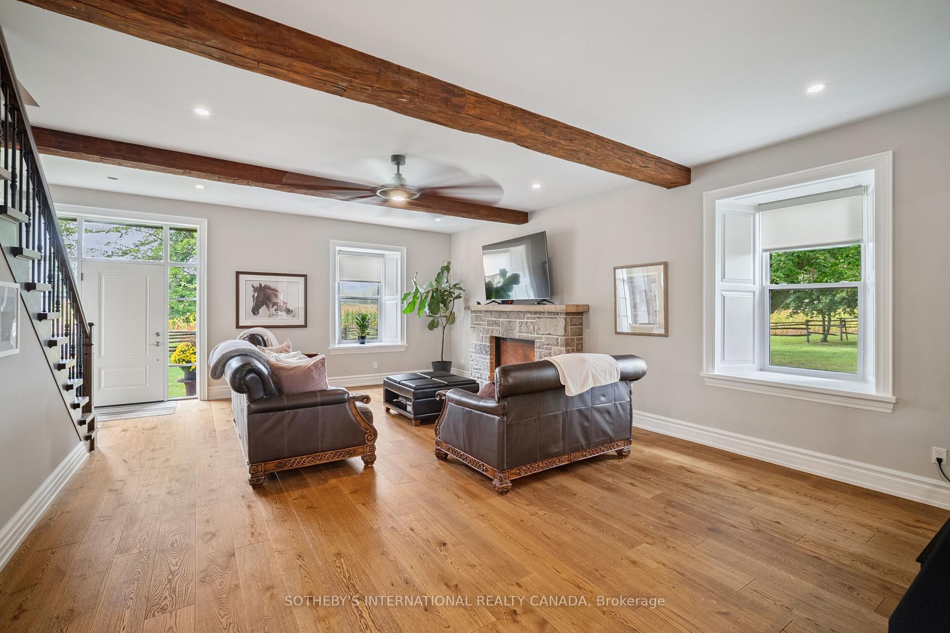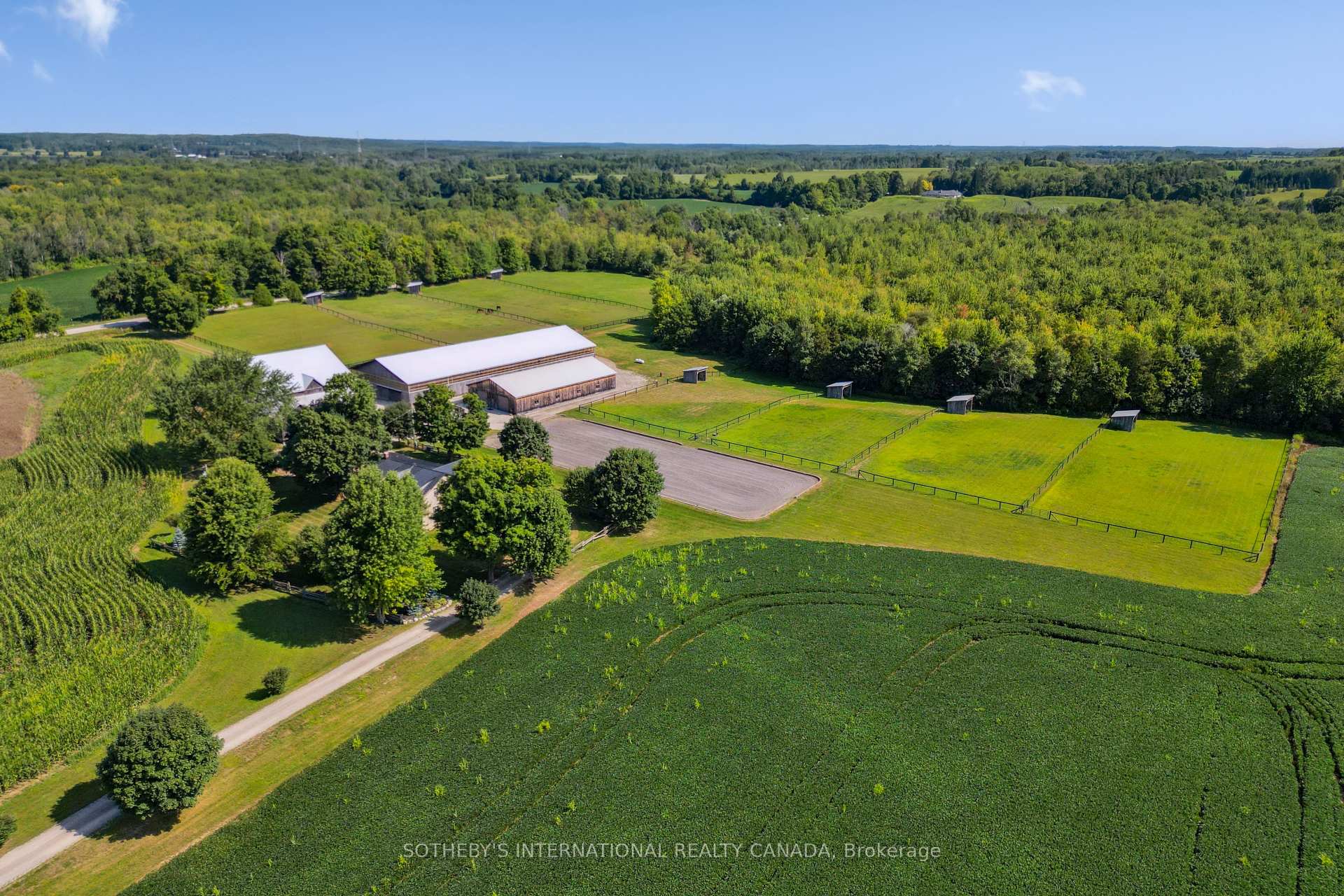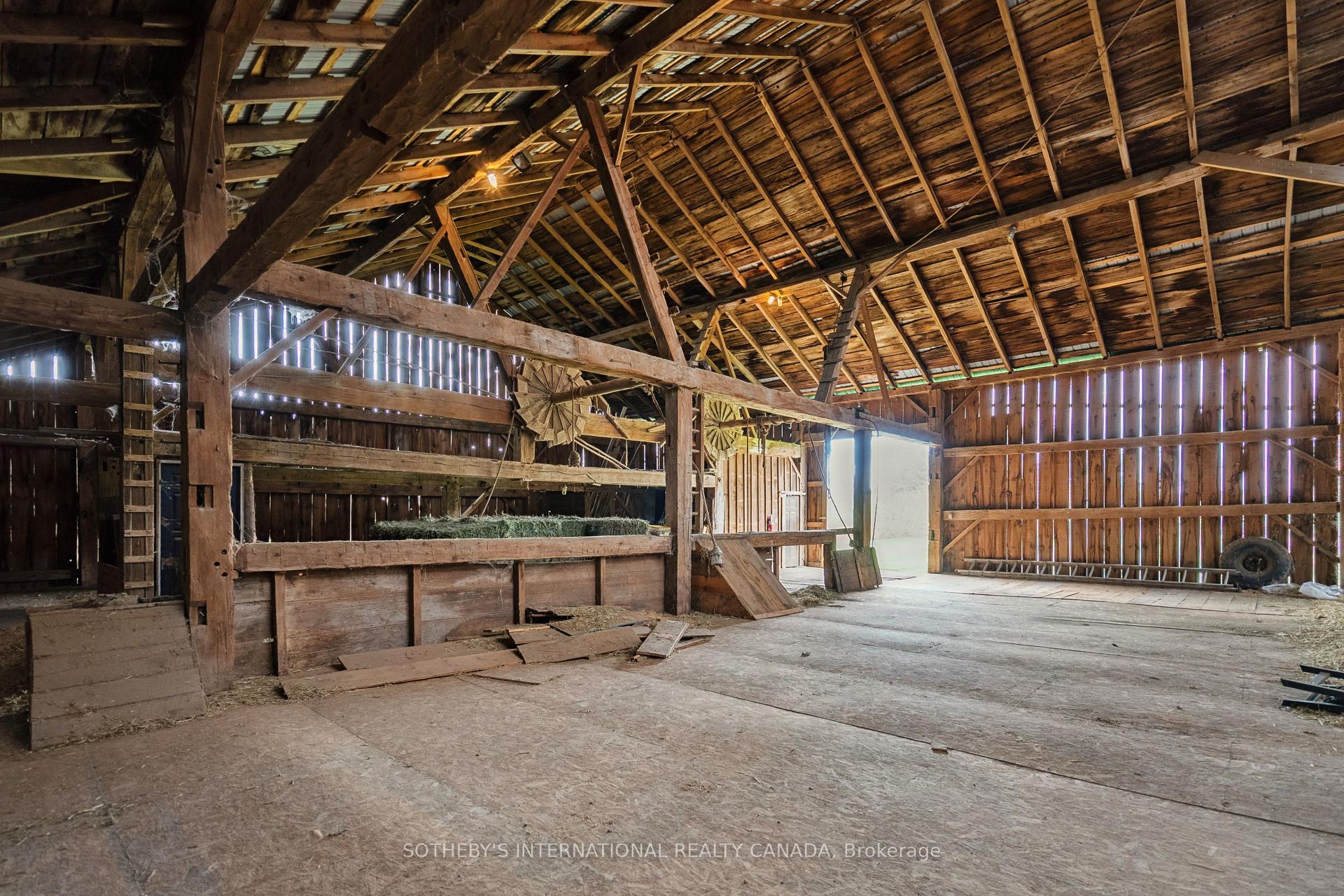 Welcome to 4085 Victoria Road S, an extraordinary property where timeless history meets modern country living. Resting on just under 100 acres in picturesque Puslinch, this estate offers a rare combination of a beautifully restored 1870s farmhouse, premier equestrian facilities & breathtaking natural landscapes. The home itself is rich in character & comfort. The chefs kitchen is a showpiece, featuring top-of-the-line appliances, an oversized island, & an inviting eat-in space that flows into the family room. A grand fireplace & expansive windows frame views of manicured grounds & rolling fields. With a main floor primary suite & two additional bedrooms upstairs, the home offers convenience & charm, blending historic details with thoughtful updates that preserve the warmth & history of the farmhouse. Nearly 45 acres of farmable land provide opportunity & productivity, while 36 untouched wooded acres offer privacy, & natural beauty. Tucked within the trees, a charming sugar shack evokes the property’s rural heritage, while a spring-fed pond adds to the serene setting. The equestrian facilities are exceptional, with 2 classic bank barns one complete with its original rack lifter standing proudly as reminders of the property’s rich past. A dedicated hay barn & a beautifully maintained horse barn with 10 stalls & a wash stall provide everything needed for care & training. Sprawling paddocks, thoughtfully laid out with 8 run-in sheds, create a haven for horses, while a competition-quality dust-free indoor riding arena & a spacious outdoor arena allow for riding & training in every season. A meticulously kept outbuilding & garage, complete with a tractor hoist, adds practicality & versatility, while the surrounding leased farmland opens opportunity for farming or investment. From its sweeping fields to its shaded woods, from its historic charm to its state-of-the-art equestrian amenities, this is more than a property it is a lifestyle, a retreat, & a rare opportunity.