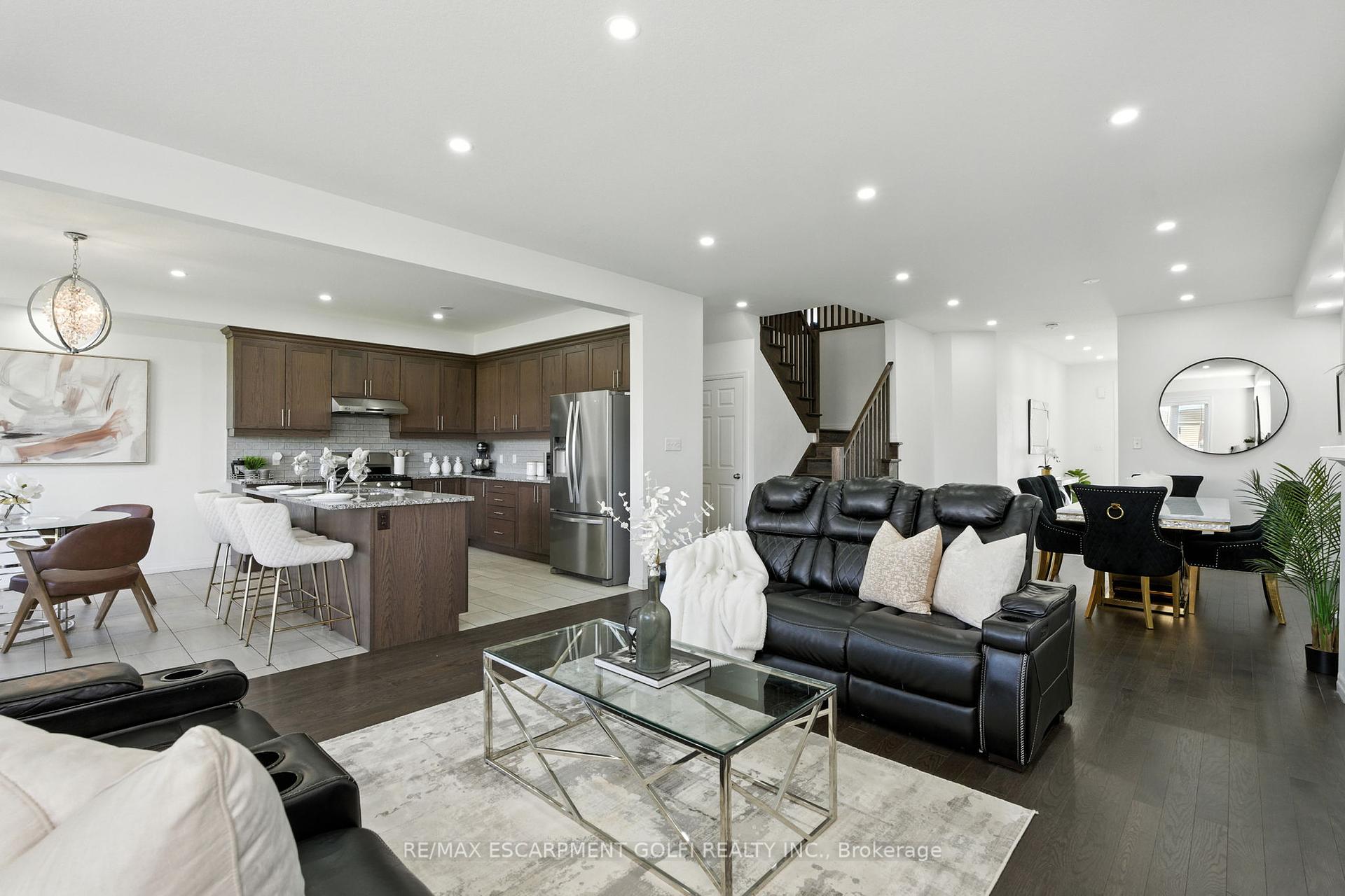 Welcome to 409 Freure Drive, a modern 5-bedroom, 4-bathroom home in Cambridge’s sought-after Salisbury/Southgate neighbourhood. Backing onto Lynn Freure Park, this property offers both style and a serene setting. The open-concept kitchen, dining, and living area is ideal for entertaining or everyday living, featuring stainless steel appliances, abundant storage, and a large island. A cozy fireplace enhances the inviting living room, while main-floor laundry adds convenience. Upstairs, the generous bedrooms impress, including two with walk-in closets – one complete with a private ensuite and balcony. The primary suite is a true retreat with its own spa-like ensuite and expansive walk-in closet. The unfinished basement presents endless possibilities, offering the perfect opportunity to create a customized space – whether that’s a home gym, recreation room, additional living area, or a private suite tailored to your needs. Located only moments from Highway 401 and the charming shops, restaurants of downtown Galt, this home delivers both comfort and convenience. With its prime park-backing lot in the desirable Salisbury/Southgate neighborhood, this is a truly special opportunity.