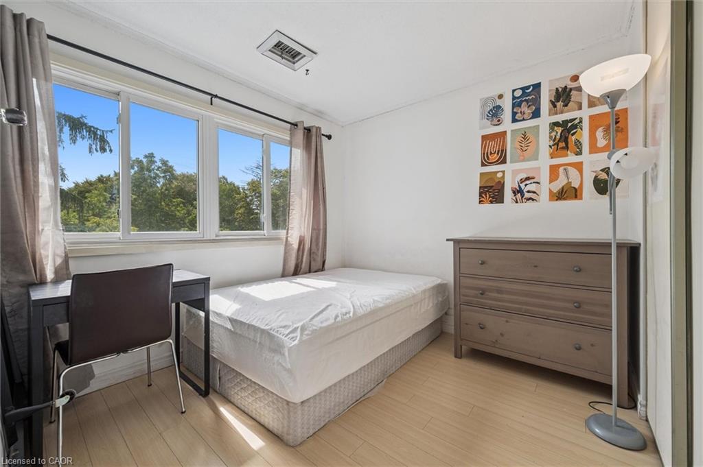 Excellent investment opportunity in the desirable Village on the Green! This bright and spacious 5-bedroom, 3-bathroom end-unit townhome offers over 2,200 sq ft of living space, including a finished basement with rec room, storage and laundry. The main floor features a large eat-in kitchen with walkout to a private yard, living room (presently used as a bedroom), and a convenient main-floor bedroom. Upstairs the oversized primary suite has a walk-in closet and ensuite, plus two more generous bedrooms and another full bath. Easy access to transit, shopping, dining, trails, and minutes to University of Waterloo, Laurier, and Conestoga College – the location is unbeatable! Highly rentable and move-in ready. With condo fees covering water, parking, and exterior up-keep, this is a turnkey, low-maintenance investment.