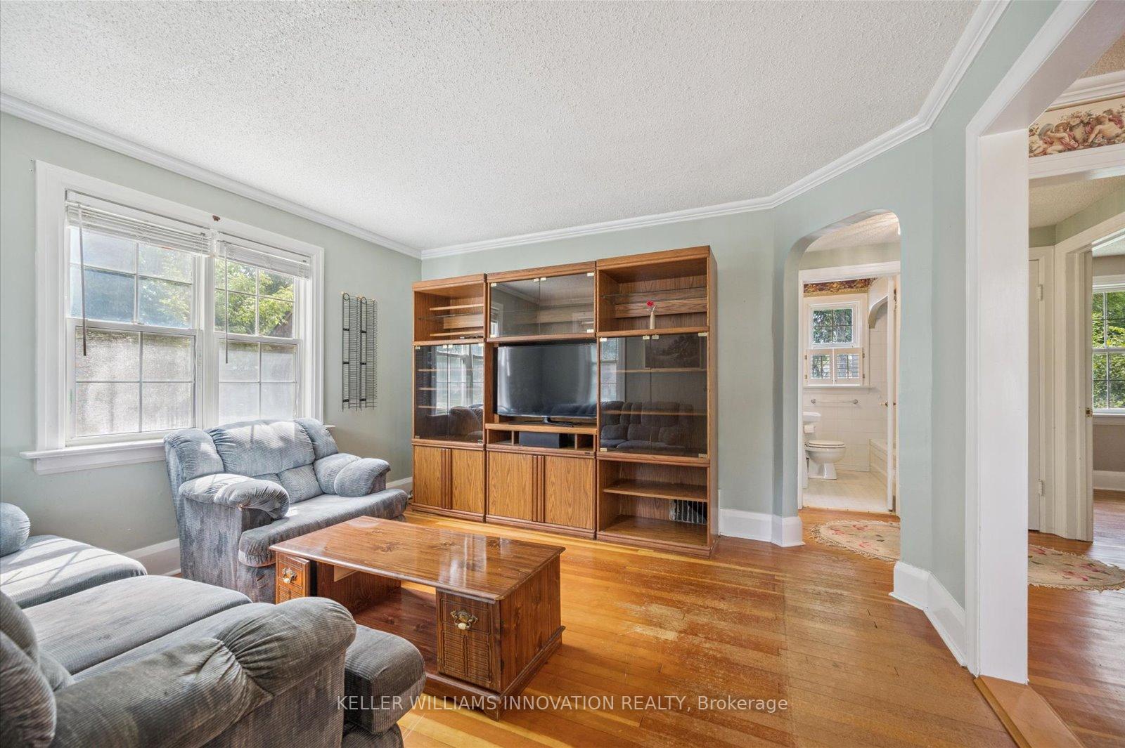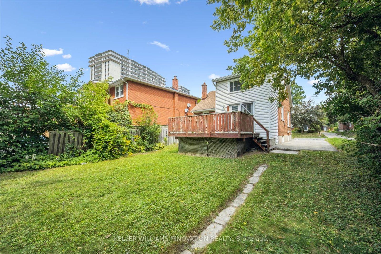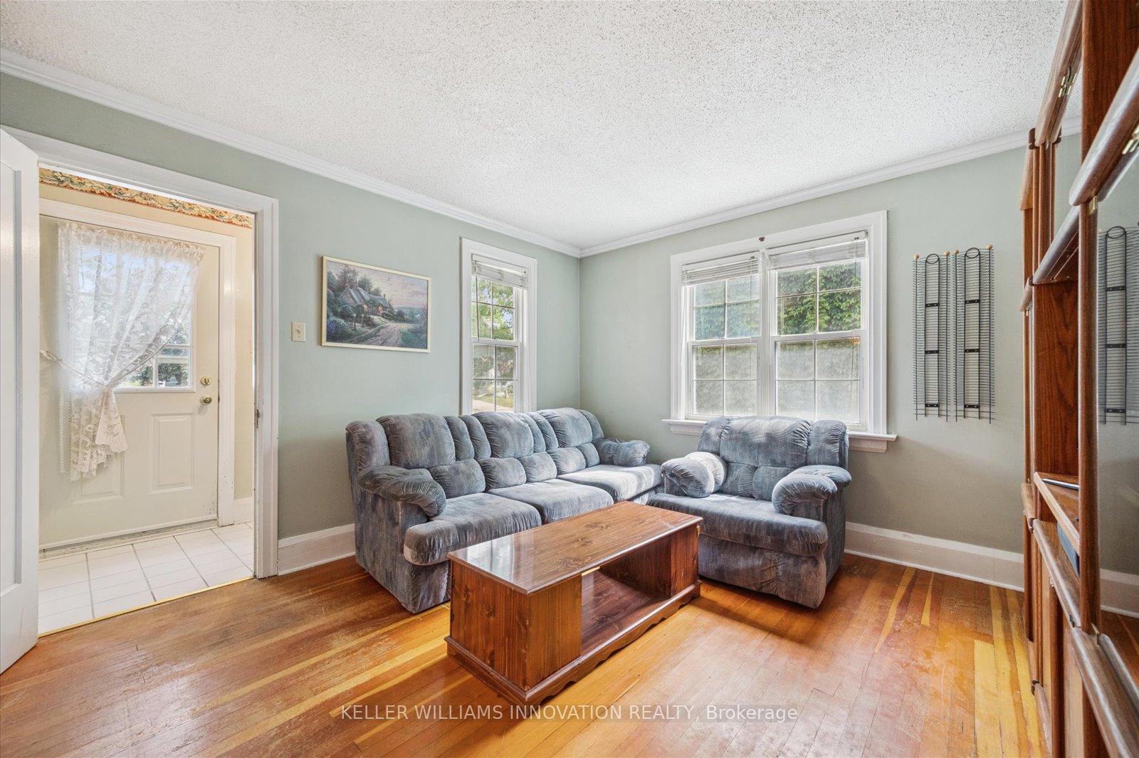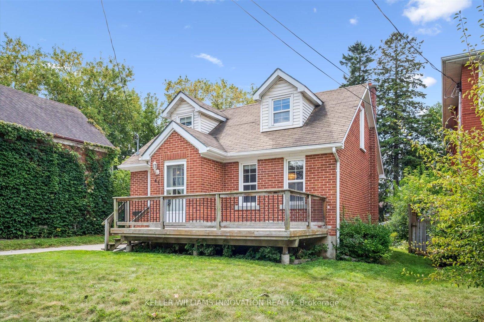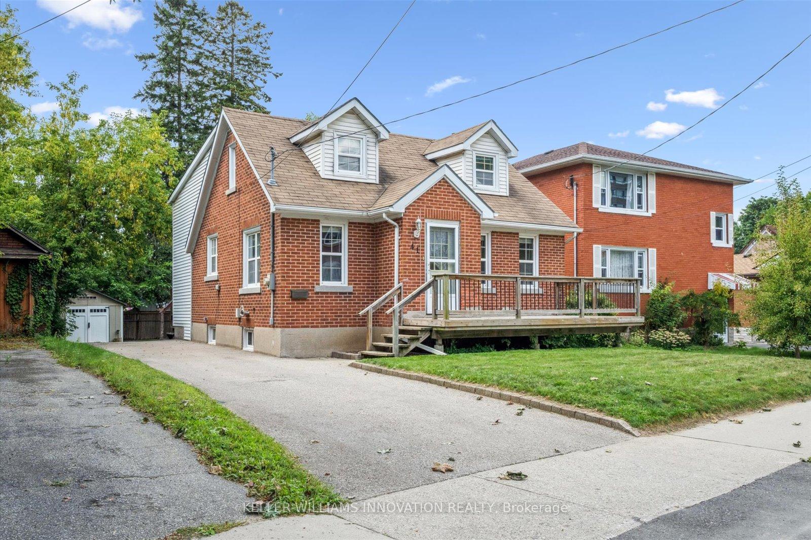 Welcome to 41 Brunswick Ave in Kitchener! This charming 1.5-storey detached home is situated on a quiet street and offers great potential for first-time homebuyers, investors, or renovators. Inside, the main level features a cozy living room, a separate dining room, a 4-piece bathroom, a functional kitchen, and a bedroom that would also make a great home office. Around the corner is a bonus family room addition that boasts tall ceilings, bright windows, and access to the backyard. On the second level, you will find two more bedrooms along with a convenient two-piece bathroom. The unfinished basement provides storage space and has the potential for extra living space once completed. Outside, enjoy the spacious front and rear decks, as well as an expansive backyard with mature trees. Additional features include a garden shed for storage and driveway parking for up to four cars. This home is conveniently located just a short walk from the Breithaupt Centre and Park, as well as transit and shopping options.
