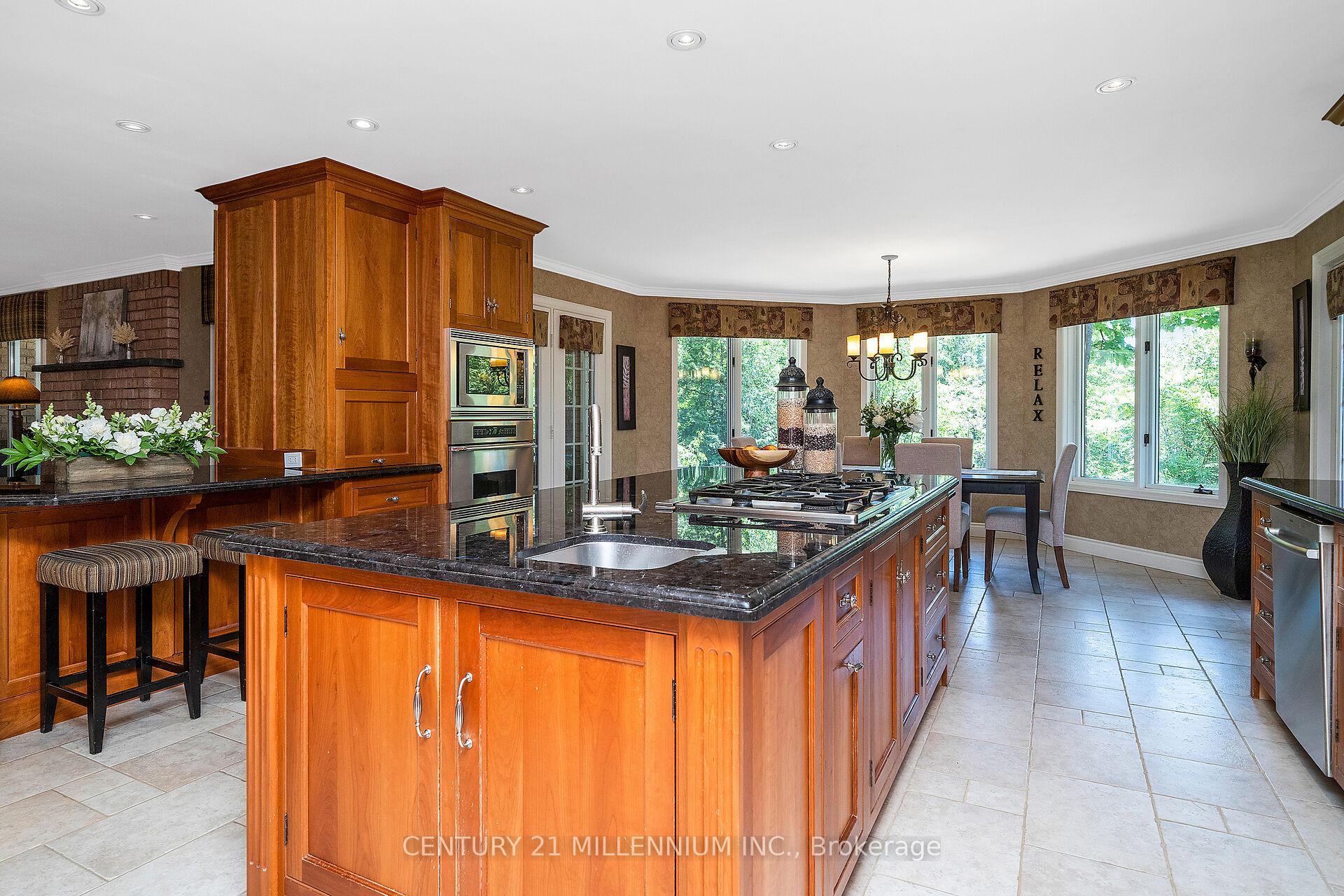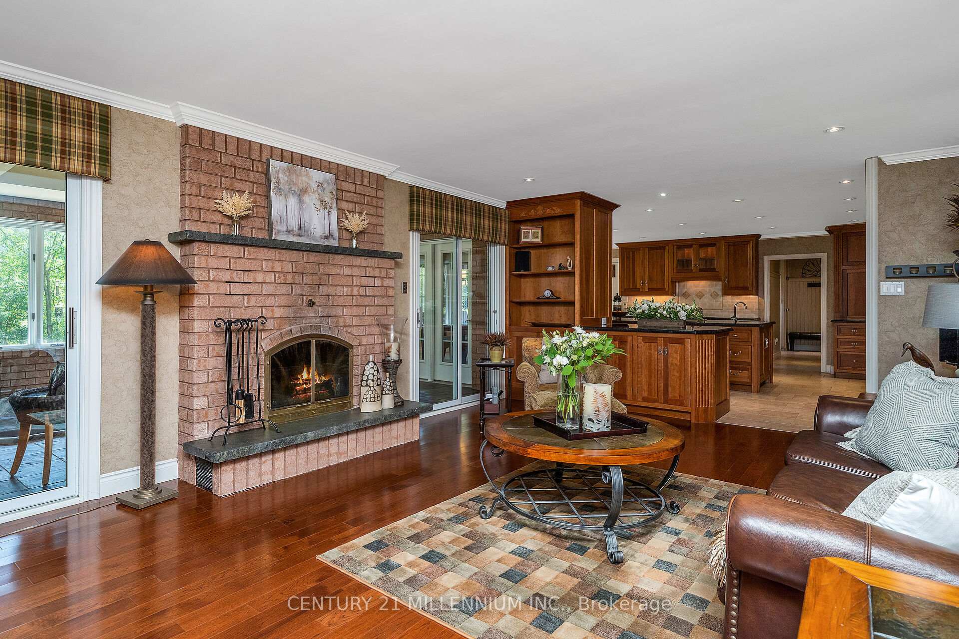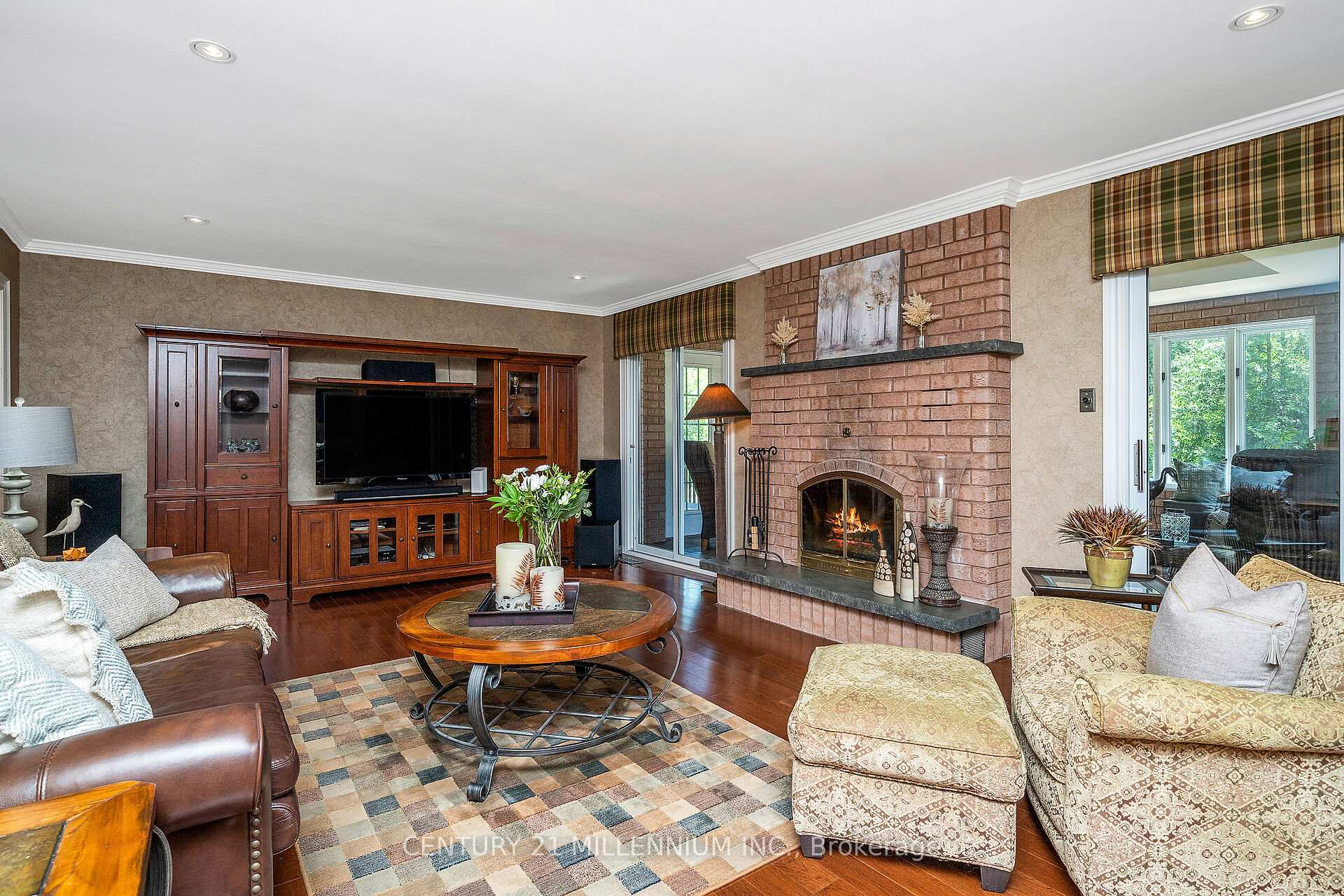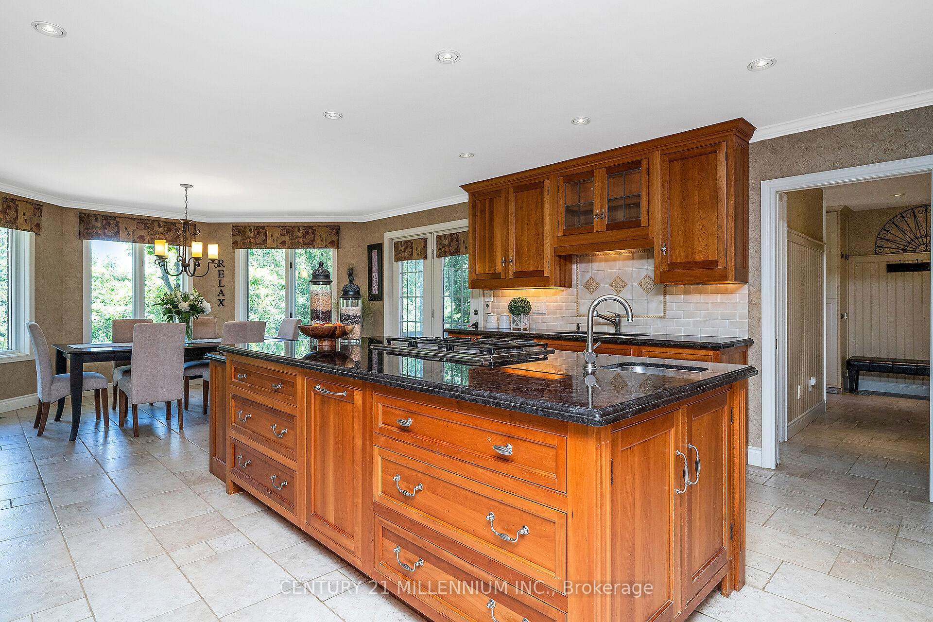 Escape to this exquisite 1.4-acre estate home in the picturesque town of Erin! As you drive up the concrete driveway, you’ll be welcomed by mature trees leading to a magnificent 3+2 bedroom, 4-bath bungalow that offers expansive living spaces throughout. The modernized kitchen boasts heated floors, a center island with a grill top, cabinets are natural cherry and an elevating exhaust fan. From here, you can access the year-round hot tub room, the back deck, and a cozy family room complete with a fireplace ideal for relaxation and entertaining. Host grand gatherings in the elegant formal living and dining areas, or utilize the expansive basement, which features two entryways, a full kitchen and bath, a custom bar, a games area, and two additional bedrooms perfect for an in-law suite. With three fireplaces (two wood-burning and one gas), you’ll enjoy warmth and ambiance throughout the home. The primary bedroom is a true sanctuary, featuring a luxurious 8-piece ensuite with a soaker tub, glass shower, and makeup table, plus a full walk-in custom closet. Revel in the serene views of the yard with a private walkout to the deck. Backing onto conservation land, this property offers utmost peace and privacy. The 3.5-car garage provides ample space for all your toys. With local amenities and shops nearby, this estate offers the perfect blend of tranquility and convenience. Make this dream home yours today!