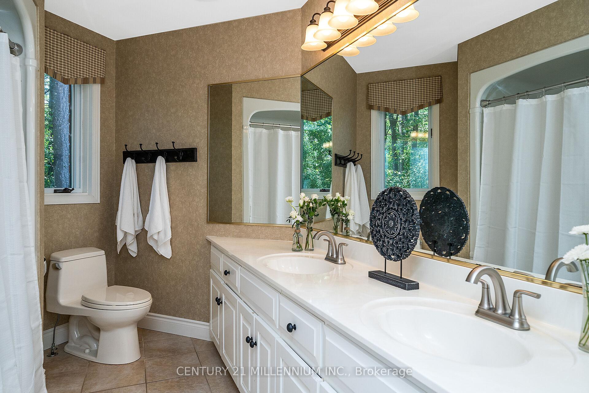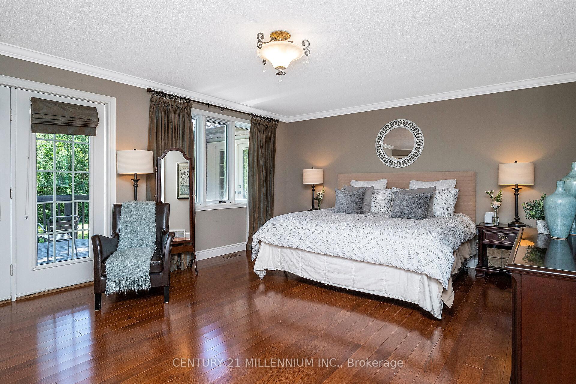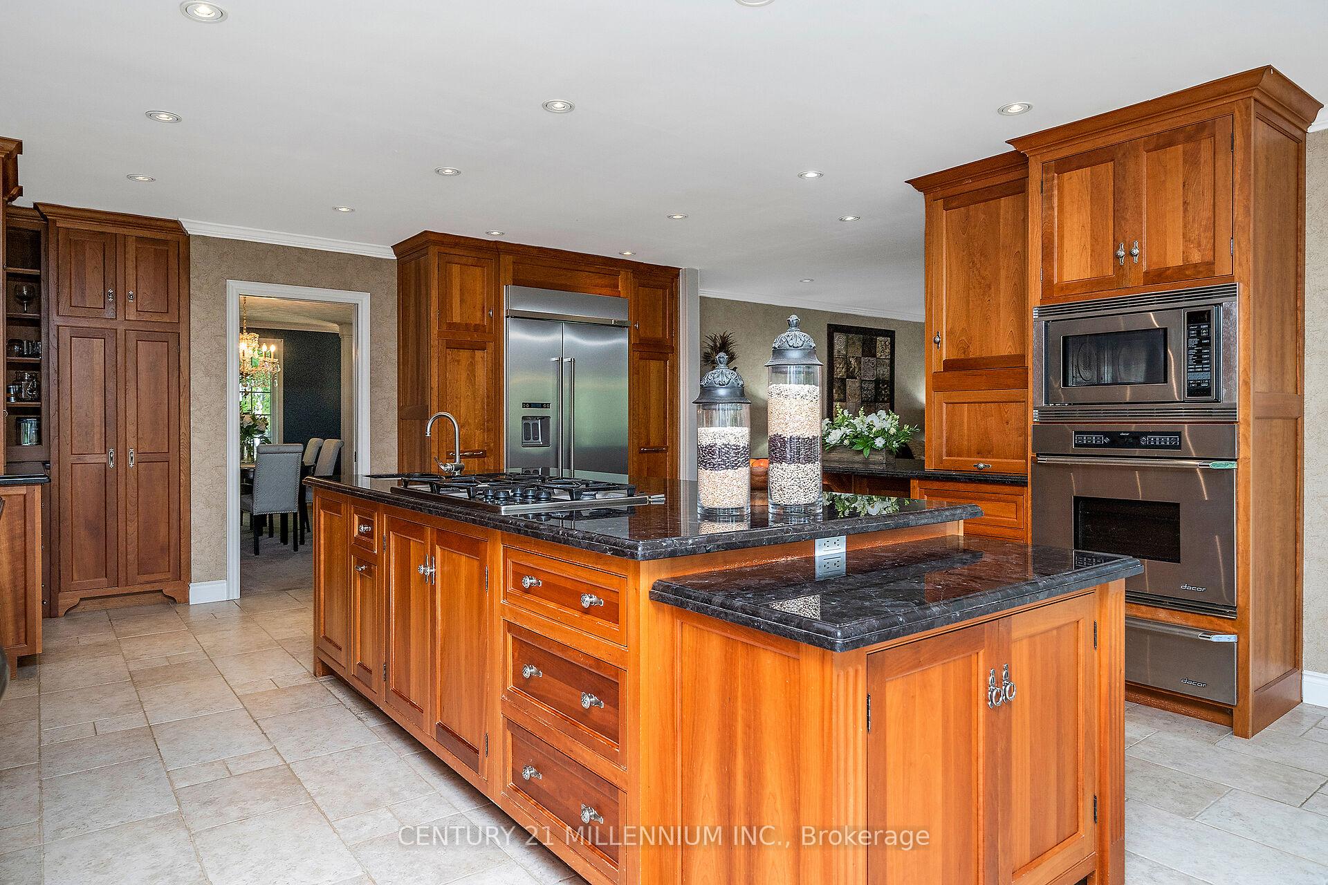 Escape to this exquisite 1.4-acre estate home in the picturesque town of Erin! As you drive up the concrete driveway, you’ll be welcomed by mature trees leading to a magnificent 3+2 bedroom, 4-bath bungalow that offers expansive living spaces throughout. The modernized kitchen boasts heated floors, a center island with a grill top, cabinets are natural cherry and an elevating exhaust fan. From here, you can access the year-round hot tub room, the back deck, and a cozy family room complete with a fireplace ideal for relaxation and entertaining. Host grand gatherings in the elegant formal living and dining areas, or utilize the expansive basement, which features two entryways, a full kitchen and bath, a custom bar, a games area, and two additional bedrooms perfect for an in-law suite. With three fireplaces (two wood-burning and one gas), you’ll enjoy warmth and ambiance throughout the home. The primary bedroom is a true sanctuary, featuring a luxurious 8-piece ensuite with a soaker tub, glass shower, and makeup table, plus a full walk-in custom closet. Revel in the serene views of the yard with a private walkout to the deck. Backing onto conservation land, this property offers utmost peace and privacy. The 3.5-car garage provides ample space for all your toys. With local amenities and shops nearby, this estate offers the perfect blend of tranquility and convenience. Make this dream home yours today!