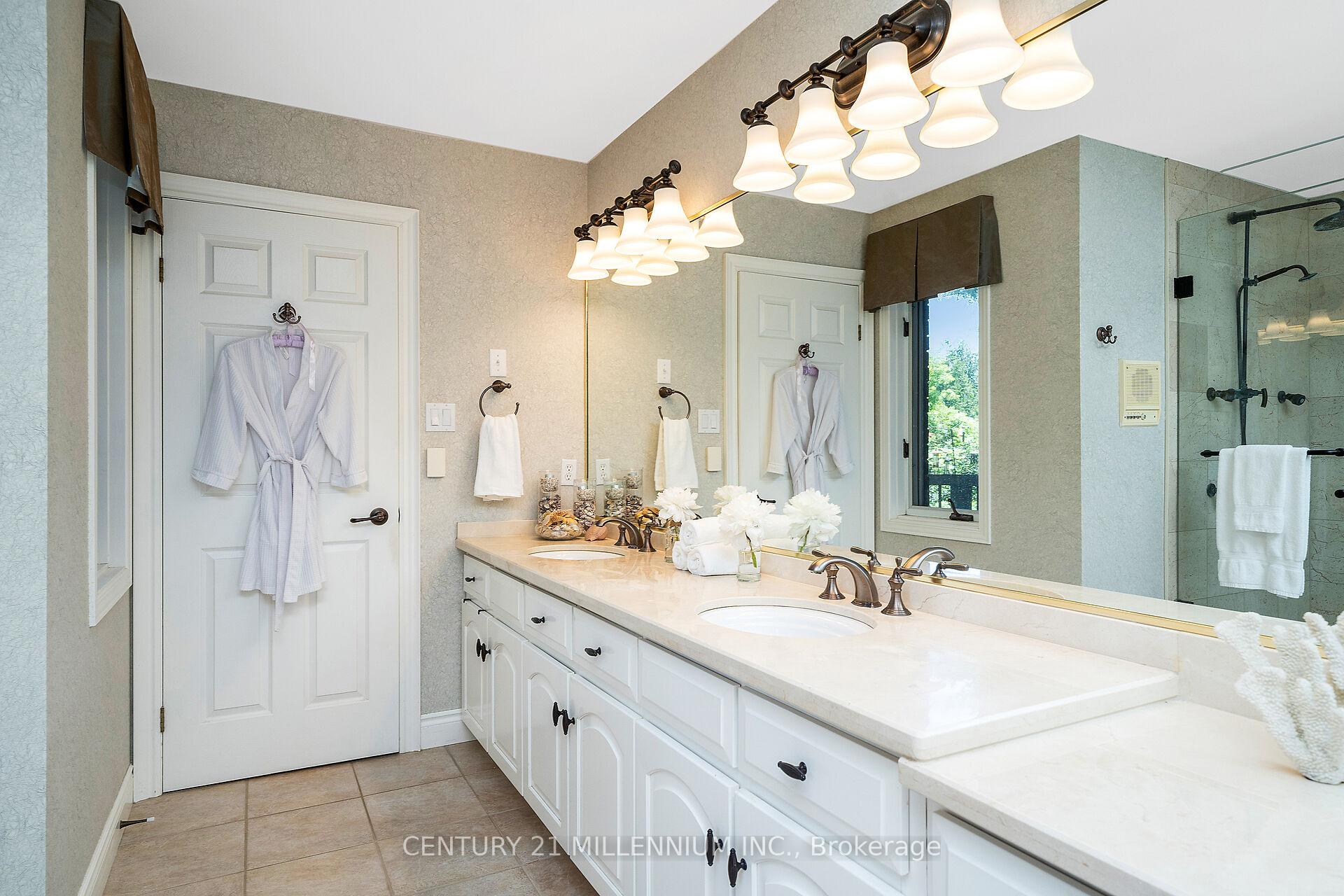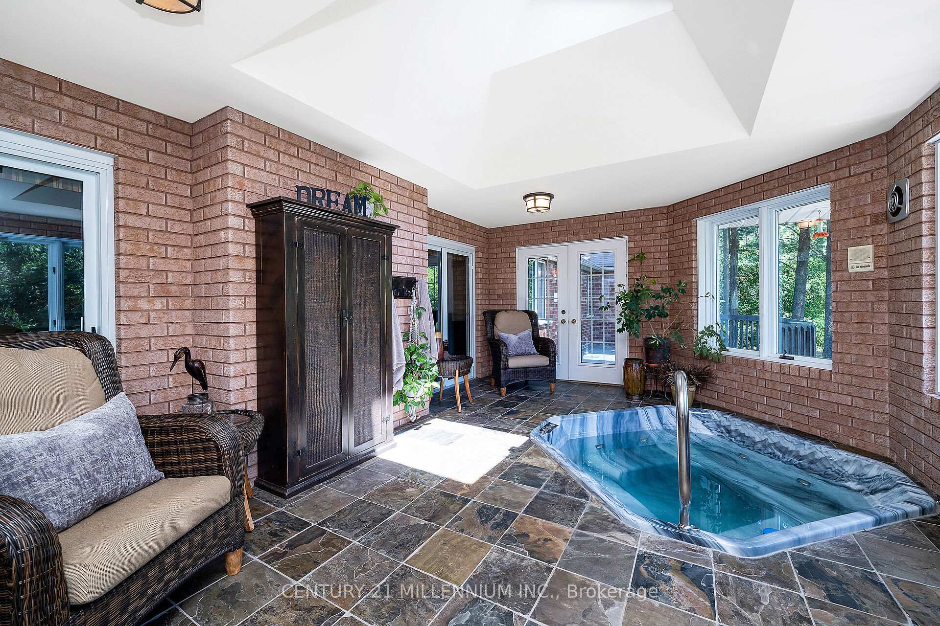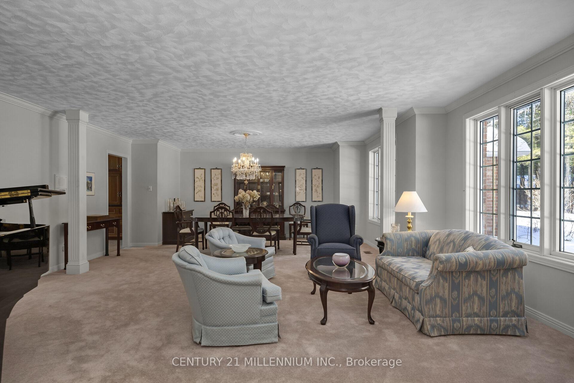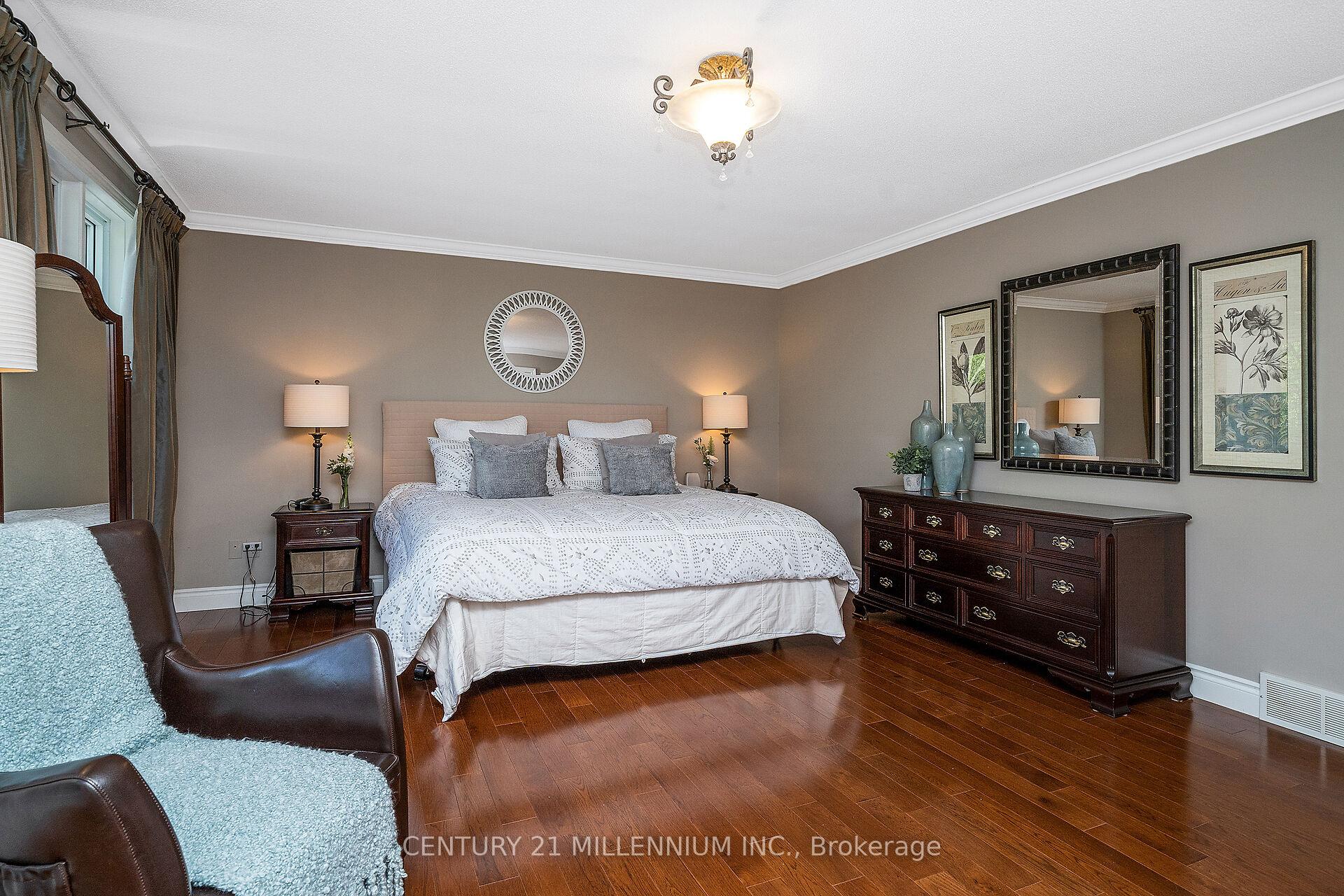 Escape to this exquisite 1.4-acre estate home in the picturesque town of Erin! As you drive up the concrete driveway, you’ll be welcomed by mature trees leading to a magnificent 3+2 bedroom, 4-bath bungalow that offers expansive living spaces throughout. The modernized kitchen boasts heated floors, a center island with a grill top, cabinets are natural cherry and an elevating exhaust fan. From here, you can access the year-round hot tub room, the back deck, and a cozy family room complete with a fireplace ideal for relaxation and entertaining. Host grand gatherings in the elegant formal living and dining areas, or utilize the expansive basement, which features two entryways, a full kitchen and bath, a custom bar, a games area, and two additional bedrooms perfect for an in-law suite. With three fireplaces (two wood-burning and one gas), you’ll enjoy warmth and ambiance throughout the home. The primary bedroom is a true sanctuary, featuring a luxurious 8-piece ensuite with a soaker tub, glass shower, and makeup table, plus a full walk-in custom closet. Revel in the serene views of the yard with a private walkout to the deck. Backing onto conservation land, this property offers utmost peace and privacy. The 3.5-car garage provides ample space for all your toys. With local amenities and shops nearby, this estate offers the perfect blend of tranquility and convenience. Make this dream home yours today!