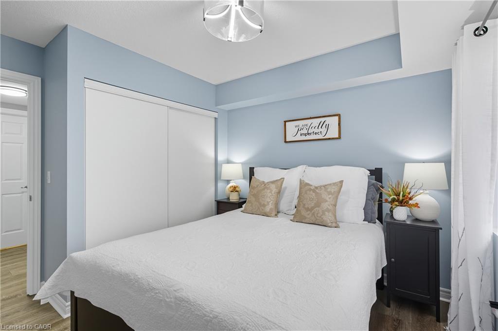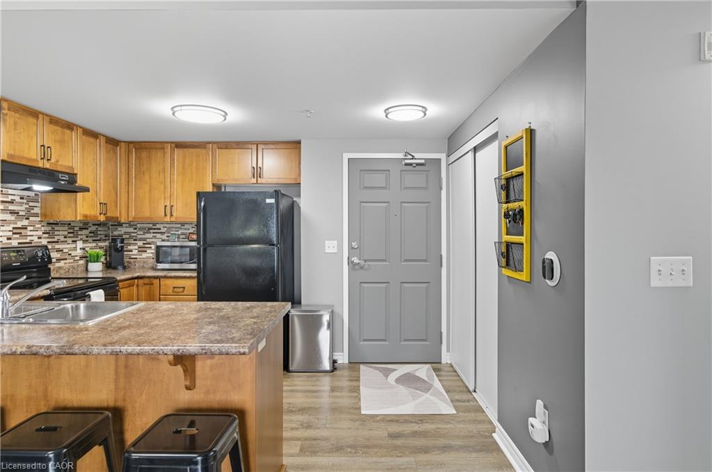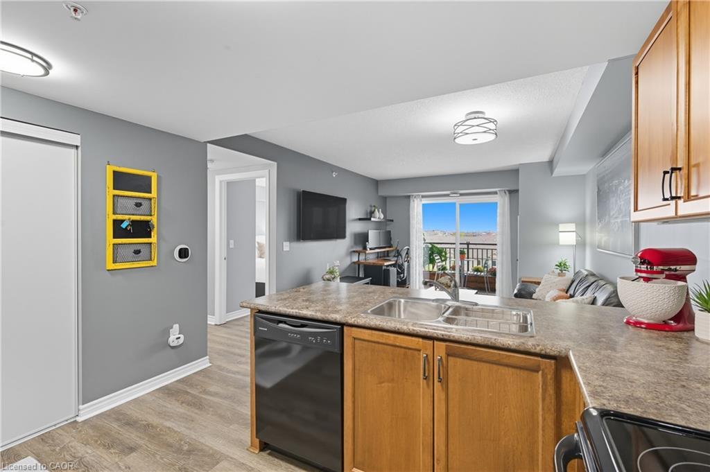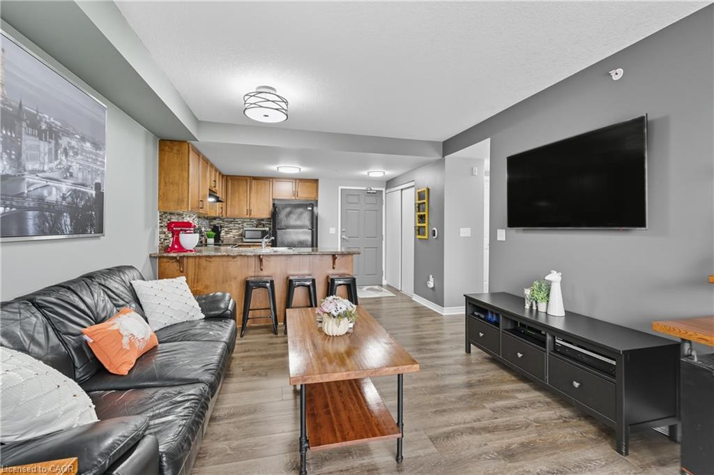 With less than $20K DP & For less than *$1,800. (P&I) per month you can own this condo – SO stop renting. A beautifully renovated top-floor condo in one of Guelph’s most convenient south-end communities. This bright 1 bedroom suite offers an open concept living and dining area with modern finishes, a stylish upgraded kitchen, the large window & sliding doors allows natural lighting to fill the living space. Located on the top floor of a quiet, well managed 4 storey building, this unit offers both privacy and comfort with a covered balcony, in-suite laundry, owned water softener, and low monthly condo fees. Enjoy the unbeatable location, walk to grocery stores, restaurants, fitness centres, banks, and movie theatres, or take a direct bus to the University of Guelph. Quick access to Highway 6 and the 401 makes commuting to Kitchener-Waterloo, Cambridge, Milton, or the GTA a breeze. Perfect for first-time buyers, investors, or down-sizers looking for a move-in-ready home in a growing, highly desirable neighbourhood. *subject to change without notice.