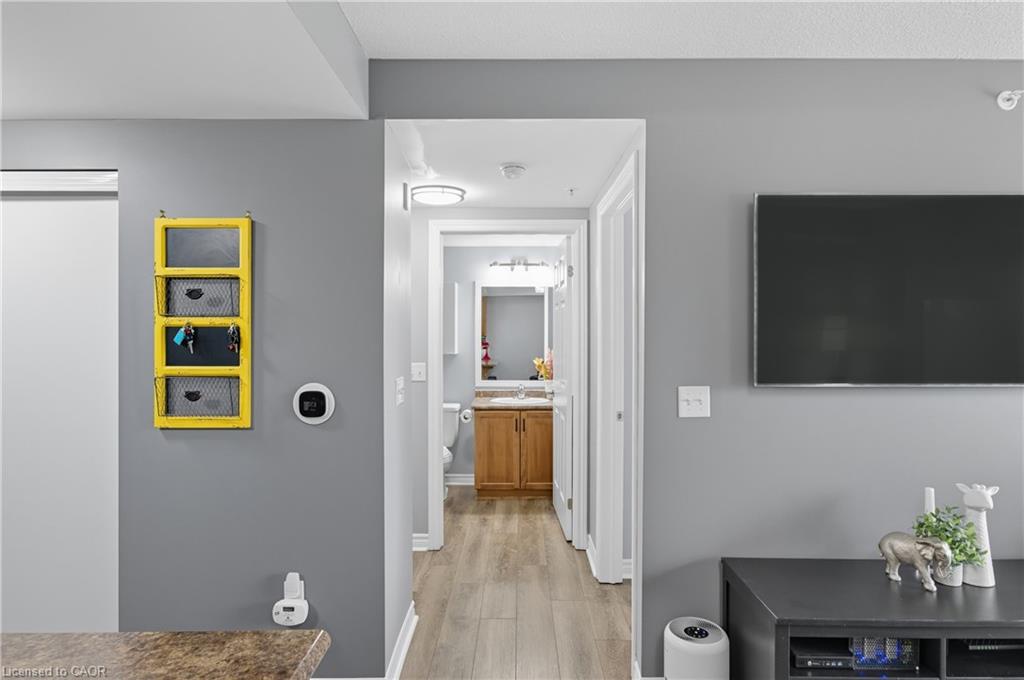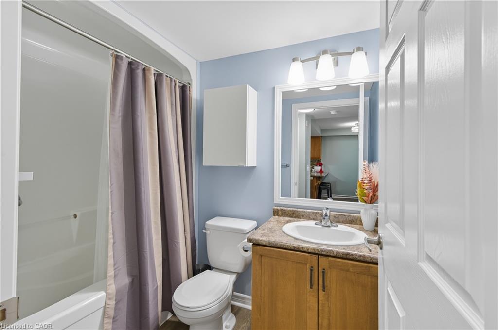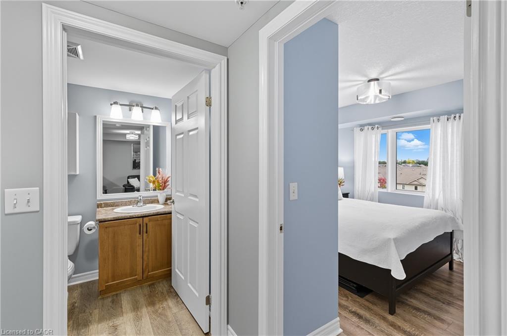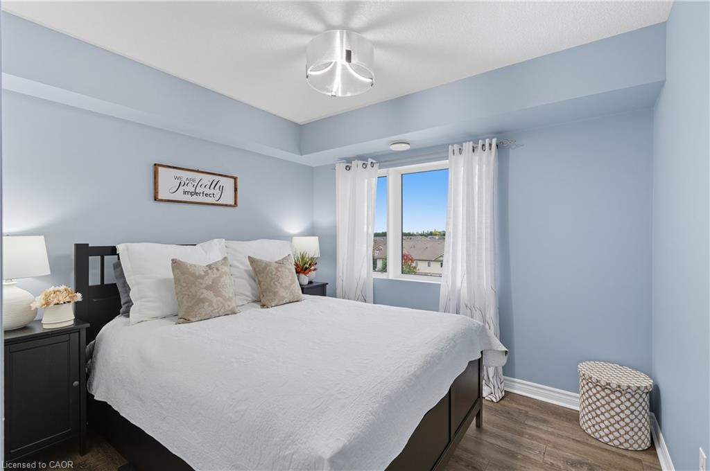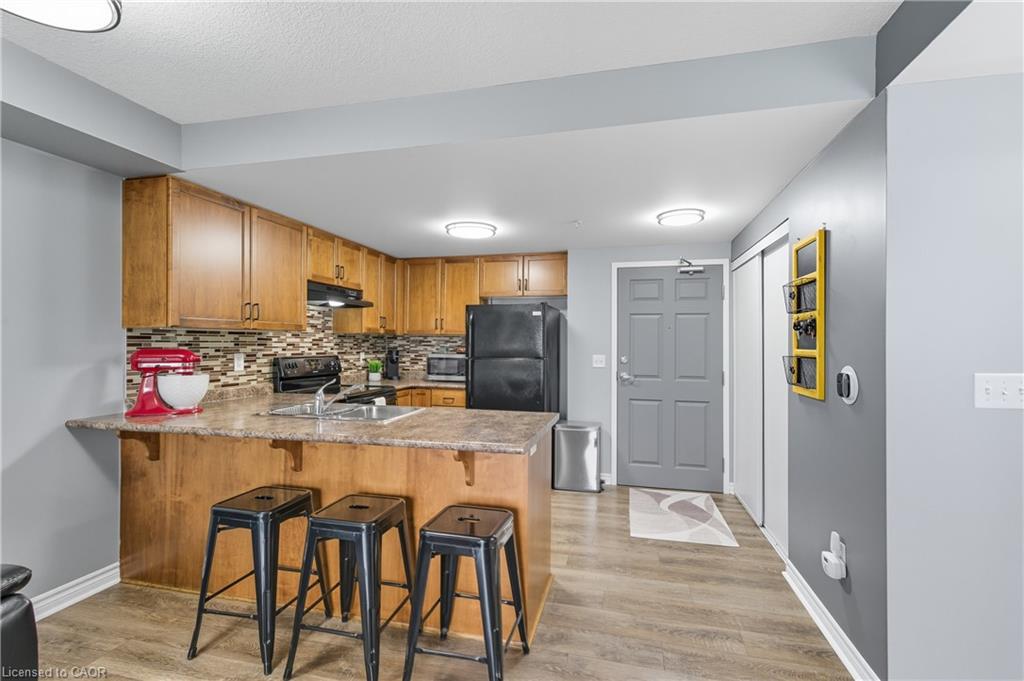 With less than $20K DP & For less than *$1,800. (P&I) per month you can own this condo – SO stop renting. A beautifully renovated top-floor condo in one of Guelph’s most convenient south-end communities. This bright 1 bedroom suite offers an open concept living and dining area with modern finishes, a stylish upgraded kitchen, the large window & sliding doors allows natural lighting to fill the living space. Located on the top floor of a quiet, well managed 4 storey building, this unit offers both privacy and comfort with a covered balcony, in-suite laundry, owned water softener, and low monthly condo fees. Enjoy the unbeatable location, walk to grocery stores, restaurants, fitness centres, banks, and movie theatres, or take a direct bus to the University of Guelph. Quick access to Highway 6 and the 401 makes commuting to Kitchener-Waterloo, Cambridge, Milton, or the GTA a breeze. Perfect for first-time buyers, investors, or down-sizers looking for a move-in-ready home in a growing, highly desirable neighbourhood. *subject to change without notice.