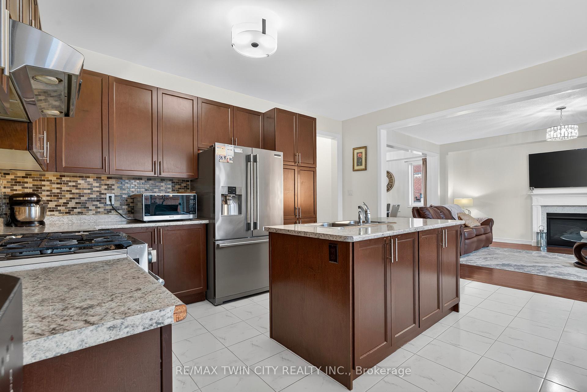 Welcome to 411 Linden Drive, Cambridge: a beautifully maintained home where Elegance and modern living come together in perfect harmony. This stunning property instantly impresses with its amazing curb appeal, lush landscaping, and ample parking for 4 vehicles (2 car garage and 2 car driveway. Step inside to a welcoming foyer with soaring high ceilings. The main level is fully carpet-free, featuring Engineered hardwood flooring and 9-ft ceilings. Just a few steps down, a 2pc powder room adds convenience for guests. The bright and airy living room is highlighted by a gas fireplace that adds charm and cozy ambiance. The fully upgraded kitchen boasts stainless steel appliances, a gas stove, chic backsplash and a large center island. Adjacent to the kitchen, a sun-filled breakfast area flows seamlessly into a designated dining space, perfect for family meals and gatherings. Upstairs, a separate family room provides additional living space for movie nights or quiet moments. The home offers 4 spacious bedrooms and 3 full bathrooms, with two bedrooms featuring their own private ensuites. The primary suite is a true retreat, complete with a walk-in closet and luxurious ensuite bathroom. The basement is ready for your personal touch, with framing already in place for two additional bedrooms and a rough-in for a bathroom, along with plenty of storage space, providing incredible potential to suit your family’s needs. Step outside to a fully fenced, expansive backyard – perfect for summer fun, hosting parties, or enjoying quiet outdoor relaxation. This property is ideally located just 2 minutes from Highway 401, with quick access to Conestoga College, top-rated schools, parks, public transit, shopping, and all amenities, making commuting and daily life convenient and effortless. This is a move-in ready home in a highly desirable location. Don’t miss this fantastic opportunity, a true must-see property! book your showing Today!