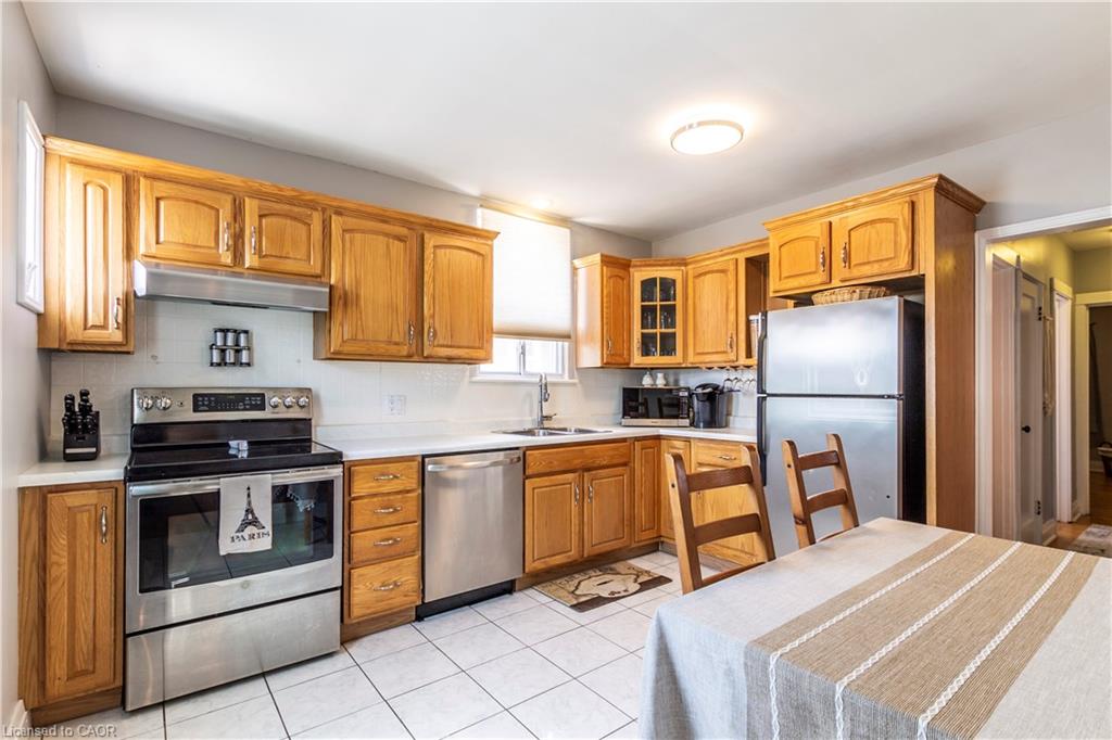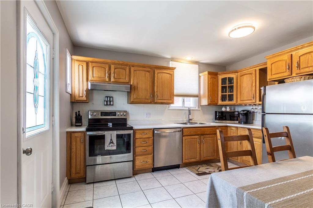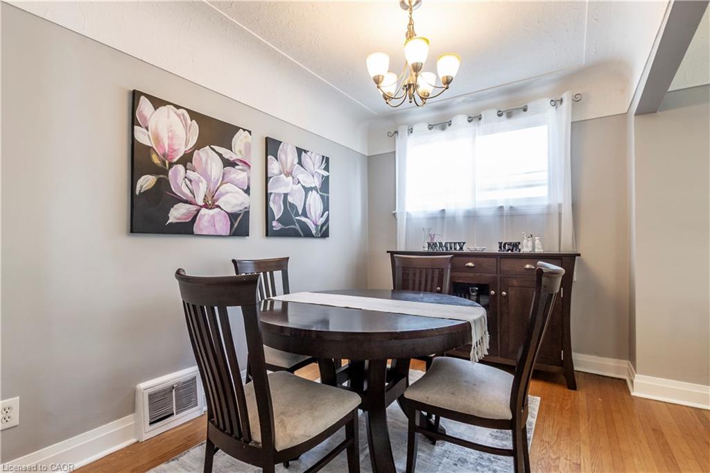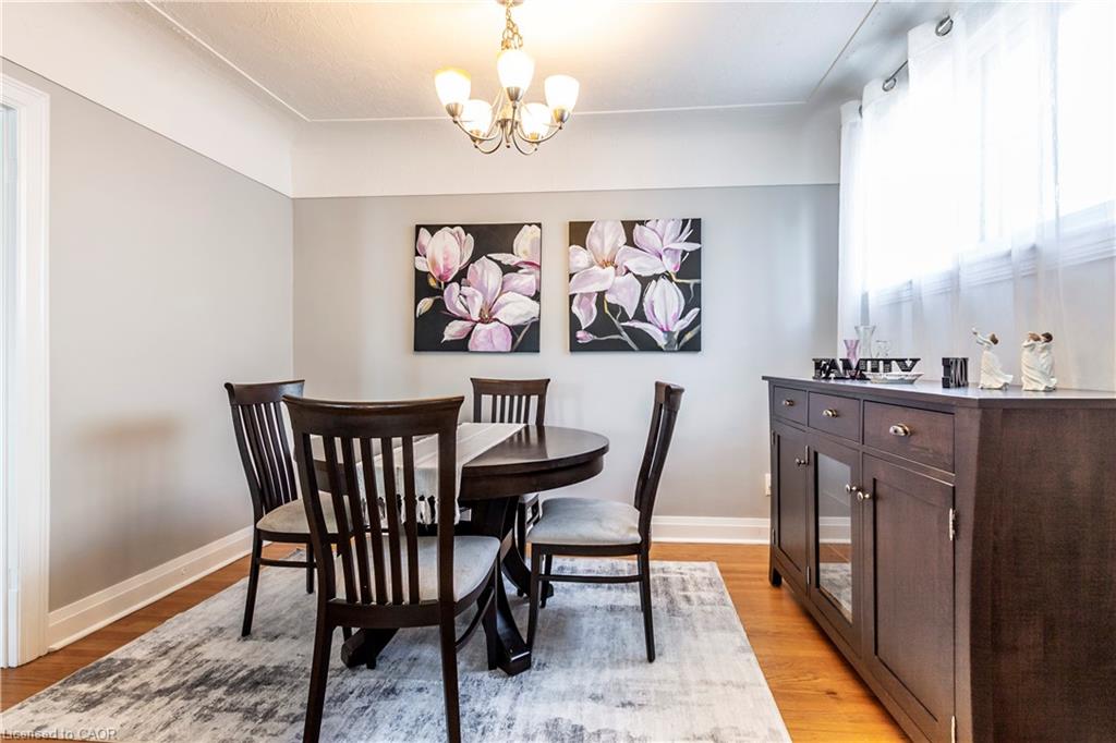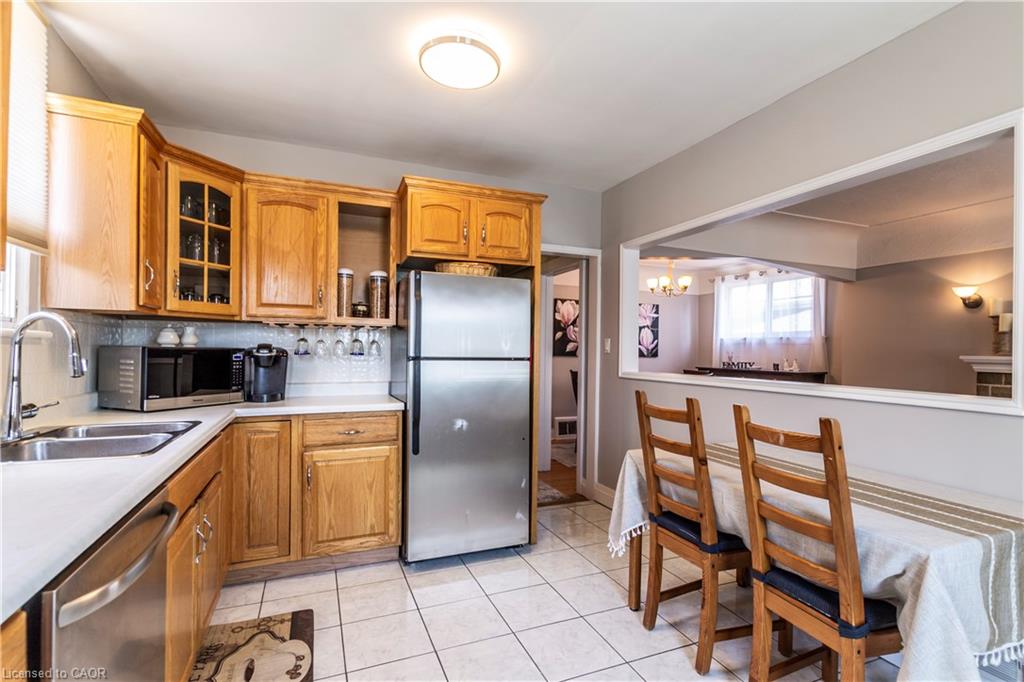 Welcome to this charming all-brick bungalow nestled in the family-friendly neighbourhood of Bartonville. Offering over 1,600 sq ft of finished living space, this well-maintained detached home features 2+1 bedrooms, 2 full bathrooms, and a warm, inviting layout perfect for first-time buyers or those looking to downsize. The spacious eat-in kitchen boasts classic oak cabinets and stainless steel appliances, with a separate dining room ideal for entertaining. Enjoy cozy evenings in the living room complete with a wood-burning fireplace. The fully finished lower level includes a huge rec room with oversized windows, a mini wet bar, third bedroom, and convenient side entrance—offering in-law potential. Outside, you’ll find a private, fully fenced backyard with a concrete patio, shed, and parking for three vehicles. Located in a vibrant, family-oriented community, this home is steps from Queenston Road’s array of shops, restaurants, and amenities. Commuters will appreciate easy access to Red Hill Valley Parkway, while outdoor enthusiasts can explore nearby Red Hill Trail or relax in Gage Park. Top-rated schools, parks, & recreational facilities make this area a haven for growing families.