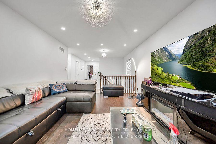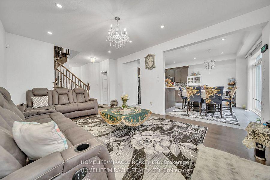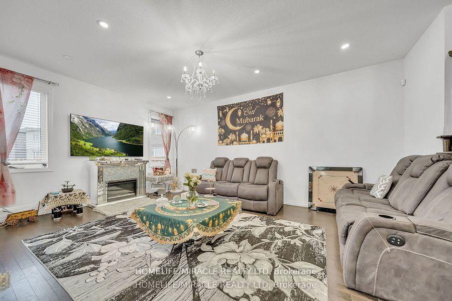 Stunning Detached Home Back onto Park with corner lot. The main floor features a spacious living room with a fireplace, open-concept upgraded kitchen with quartz countertops, backsplash, an island and gas line if need to change. The second floor boasts a luxurious primary bedroom with a walk-in closet and an ensuite, family room, two full bathroom and three bedrooms. One more bedroom on main floor. Pot lights, upgraded light fixtures, and a bright dining area complete the space. Close To Amenities, Grand River, Restaurants, Hospitals, school, shopping. Furniture available for sale with separate negotiation with seller not included in price.