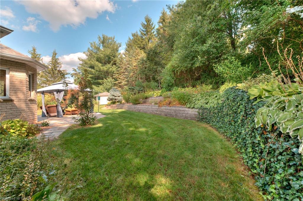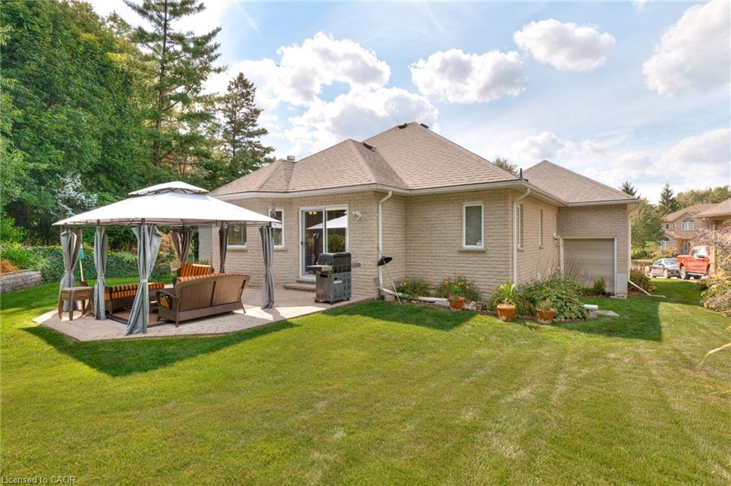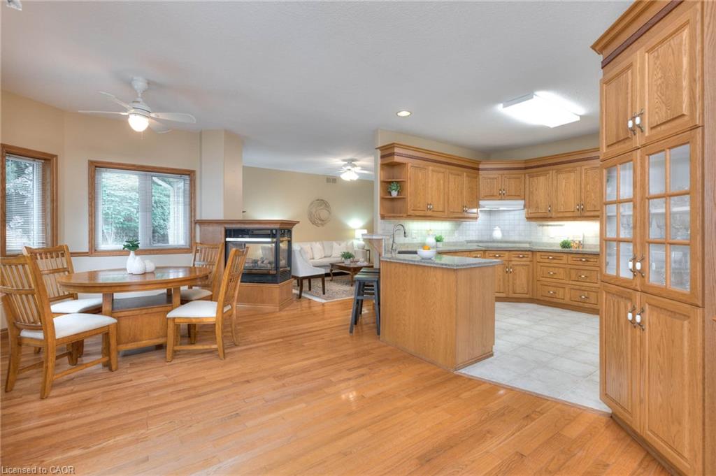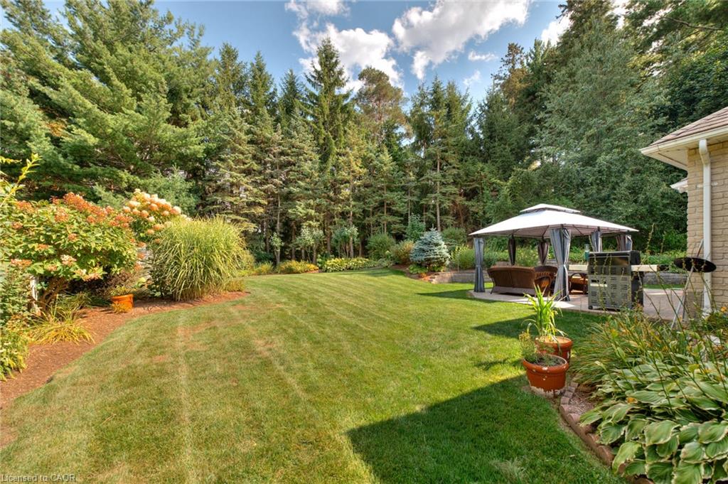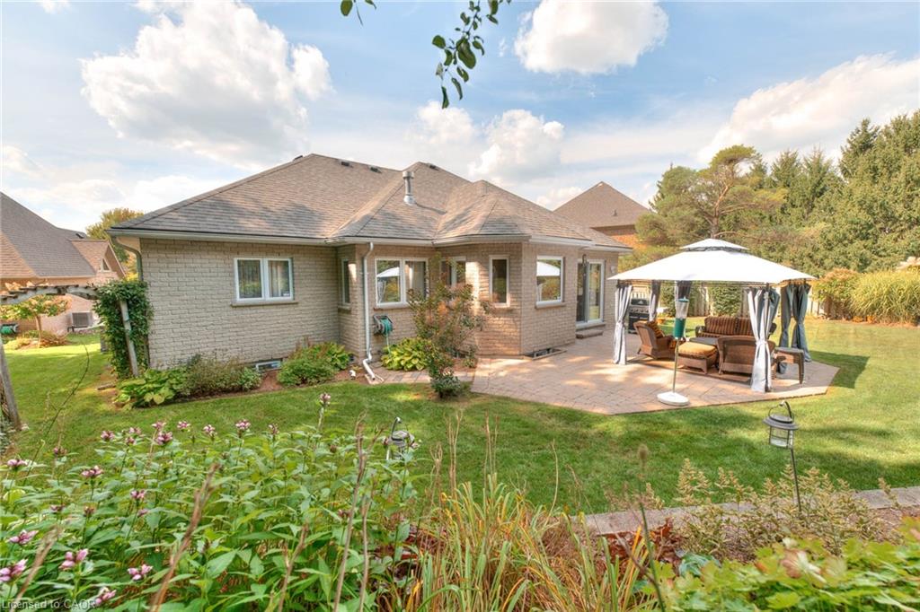 This exceptional residence is being offered for the first time by its original owner, the builder himself, reflecting unmatched craftsmanship and pride of ownership throughout. Nestled on a highly desirable court where homes rarely come available, this home combines timeless design, quality finishes, and a serene setting on a private, mature treed, 0.244-acre lot. The main floor showcases solid oak hardwood flooring through the living areas and bedrooms, and elegant solid oak trim and casings through out. A three-sided gas fireplace warms the kitchen, dinette, and living room, where expansive windows invite natural light and garden views. The oversized formal dining room impresses with a double raised tray ceiling, bay window, French doors, and gleaming hardwood floors. The kitchen is a chef’s delight with oak cabinetry and intricate detailing, crown moldings, granite counters, backsplash, built-in appliances, glass cabinetry, and a wall pantry. The split-bedroom design ensures privacy, with the primary suite tucked away featuring backyard views, a walk-in closet, and luxurious 4-piece ensuite with granite counters. Secondary bedrooms each offer hardwood floors and have close access to the main 4-piece bath. The main floor laundry/mudroom with garage access complete the main level. The fully finished basement expands the living space with large windows, a solid oak wet bar, gas fireplace, ample storage, & three versatile rooms ideal for an office, fitness, playroom, or guest space. Outdoors, the landscaping is extraordinary, offering year-round beauty with mature trees, interlocking retaining walls, a stone patio with gazebo & carefully planned perennial gardens that bloom in every season. A convenient rear garage door provides easy access to the backyard and with a four-car driveway and no sidewalk to shovel, convenience meets charm. This rare opportunity to own on such a coveted court is not to be missed.
