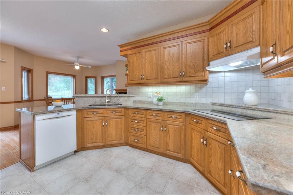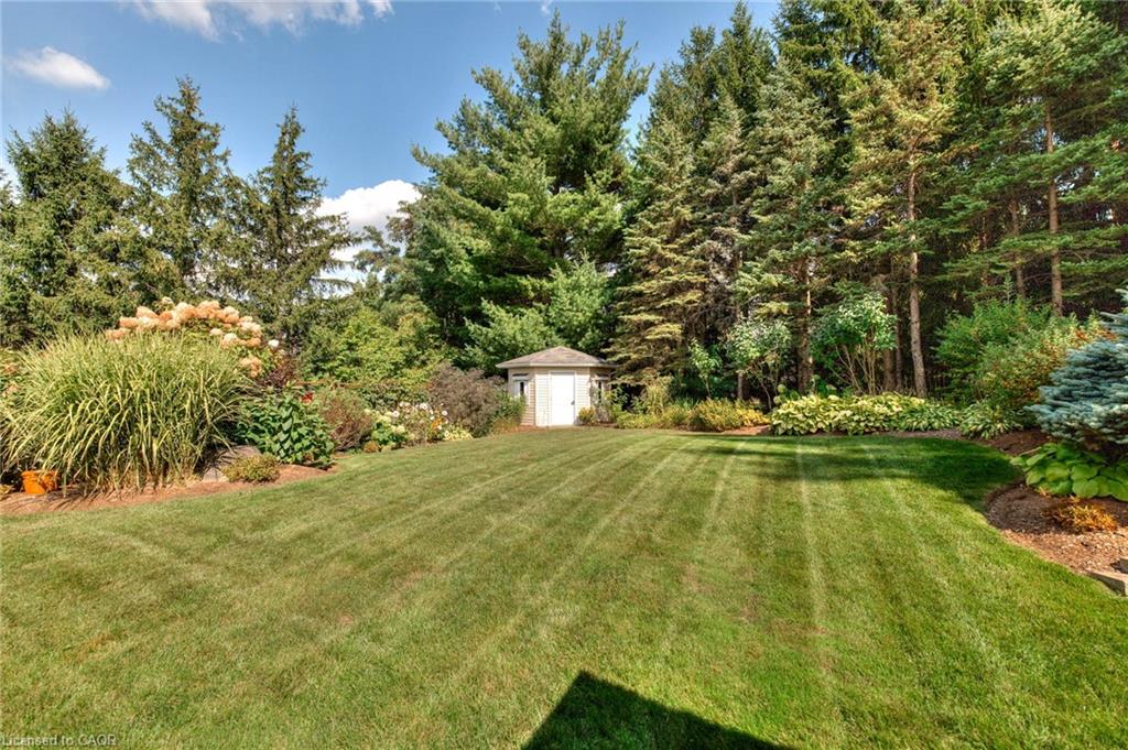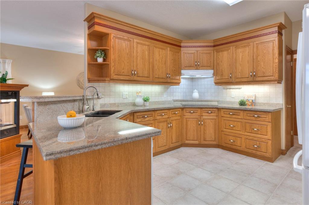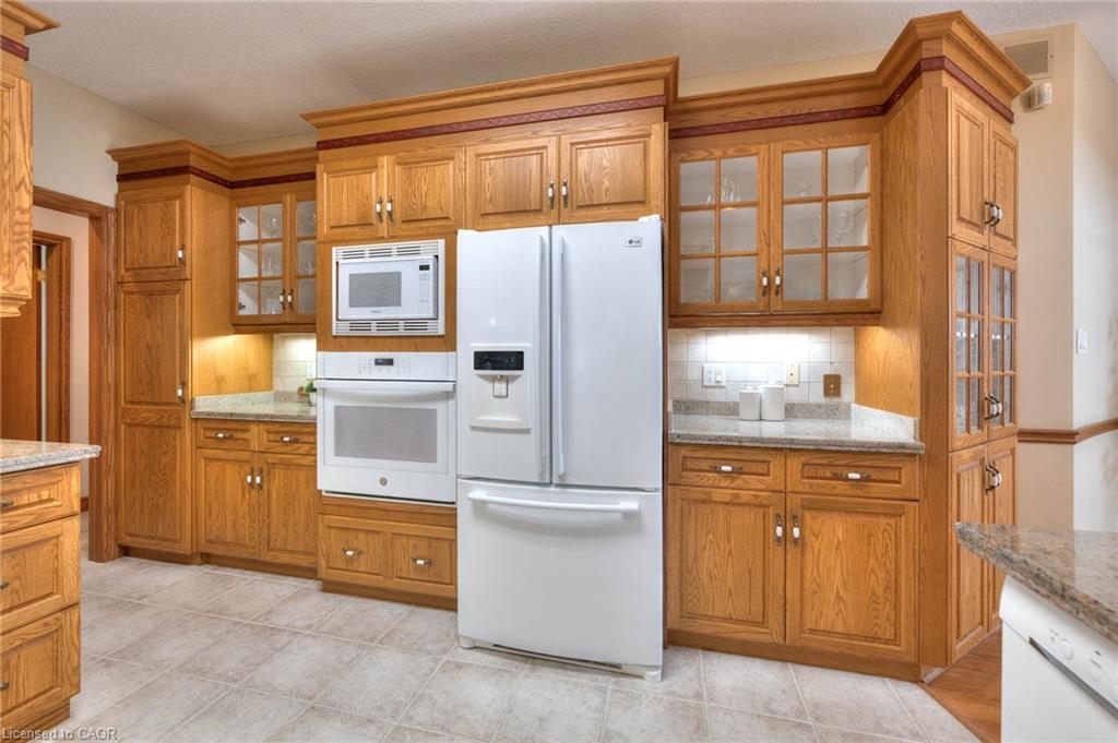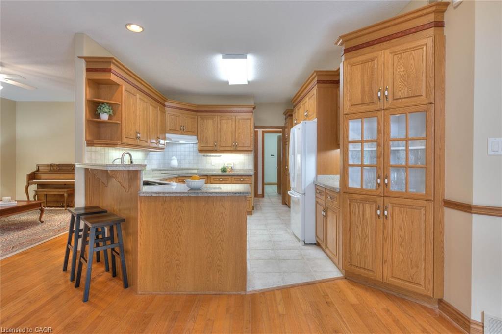 This exceptional residence is being offered for the first time by its original owner, the builder himself, reflecting unmatched craftsmanship and pride of ownership throughout. Nestled on a highly desirable court where homes rarely come available, this home combines timeless design, quality finishes, and a serene setting on a private, mature treed, 0.244-acre lot. The main floor showcases solid oak hardwood flooring through the living areas and bedrooms, and elegant solid oak trim and casings through out. A three-sided gas fireplace warms the kitchen, dinette, and living room, where expansive windows invite natural light and garden views. The oversized formal dining room impresses with a double raised tray ceiling, bay window, French doors, and gleaming hardwood floors. The kitchen is a chef’s delight with oak cabinetry and intricate detailing, crown moldings, granite counters, backsplash, built-in appliances, glass cabinetry, and a wall pantry. The split-bedroom design ensures privacy, with the primary suite tucked away featuring backyard views, a walk-in closet, and luxurious 4-piece ensuite with granite counters. Secondary bedrooms each offer hardwood floors and have close access to the main 4-piece bath. The main floor laundry/mudroom with garage access complete the main level. The fully finished basement expands the living space with large windows, a solid oak wet bar, gas fireplace, ample storage, & three versatile rooms ideal for an office, fitness, playroom, or guest space. Outdoors, the landscaping is extraordinary, offering year-round beauty with mature trees, interlocking retaining walls, a stone patio with gazebo & carefully planned perennial gardens that bloom in every season. A convenient rear garage door provides easy access to the backyard and with a four-car driveway and no sidewalk to shovel, convenience meets charm. This rare opportunity to own on such a coveted court is not to be missed.