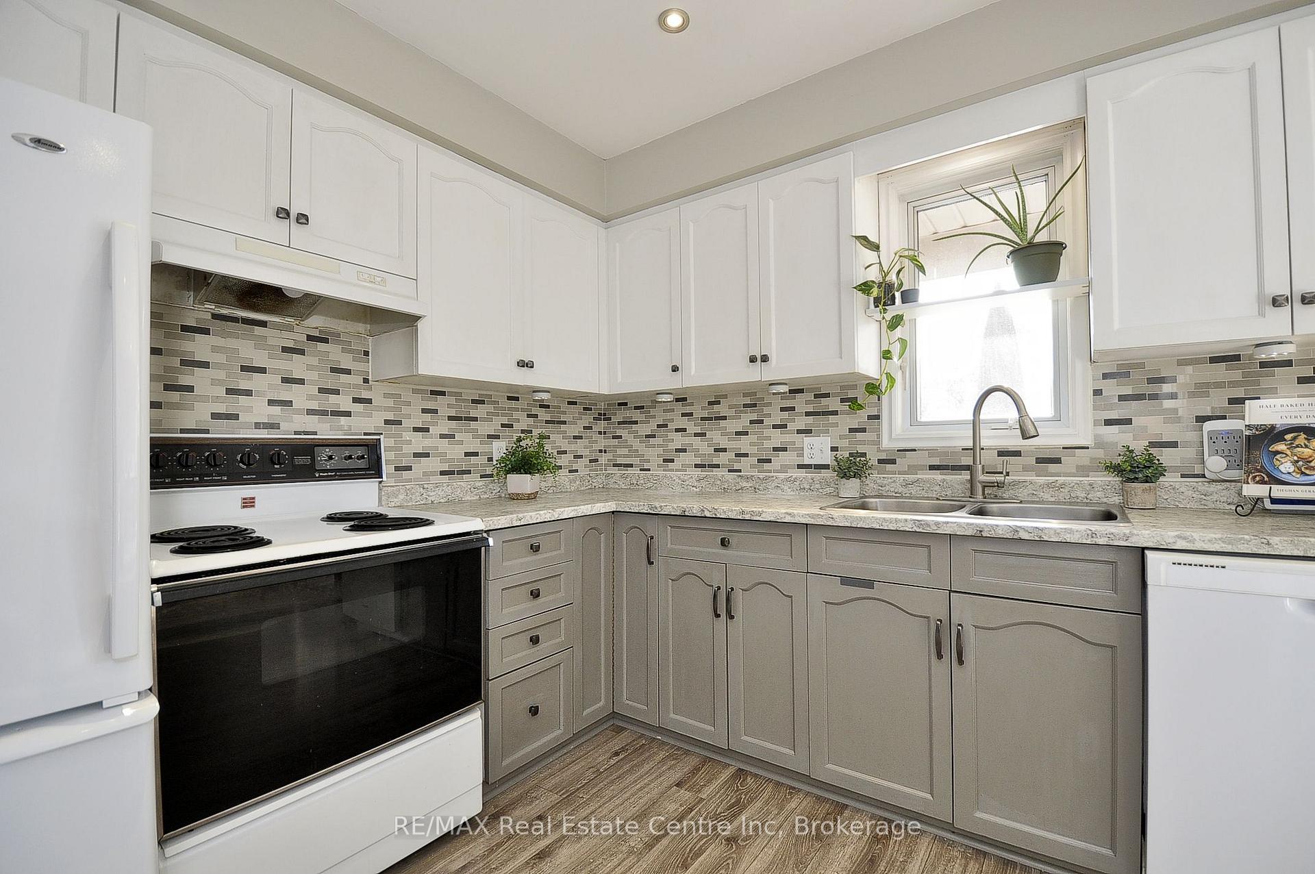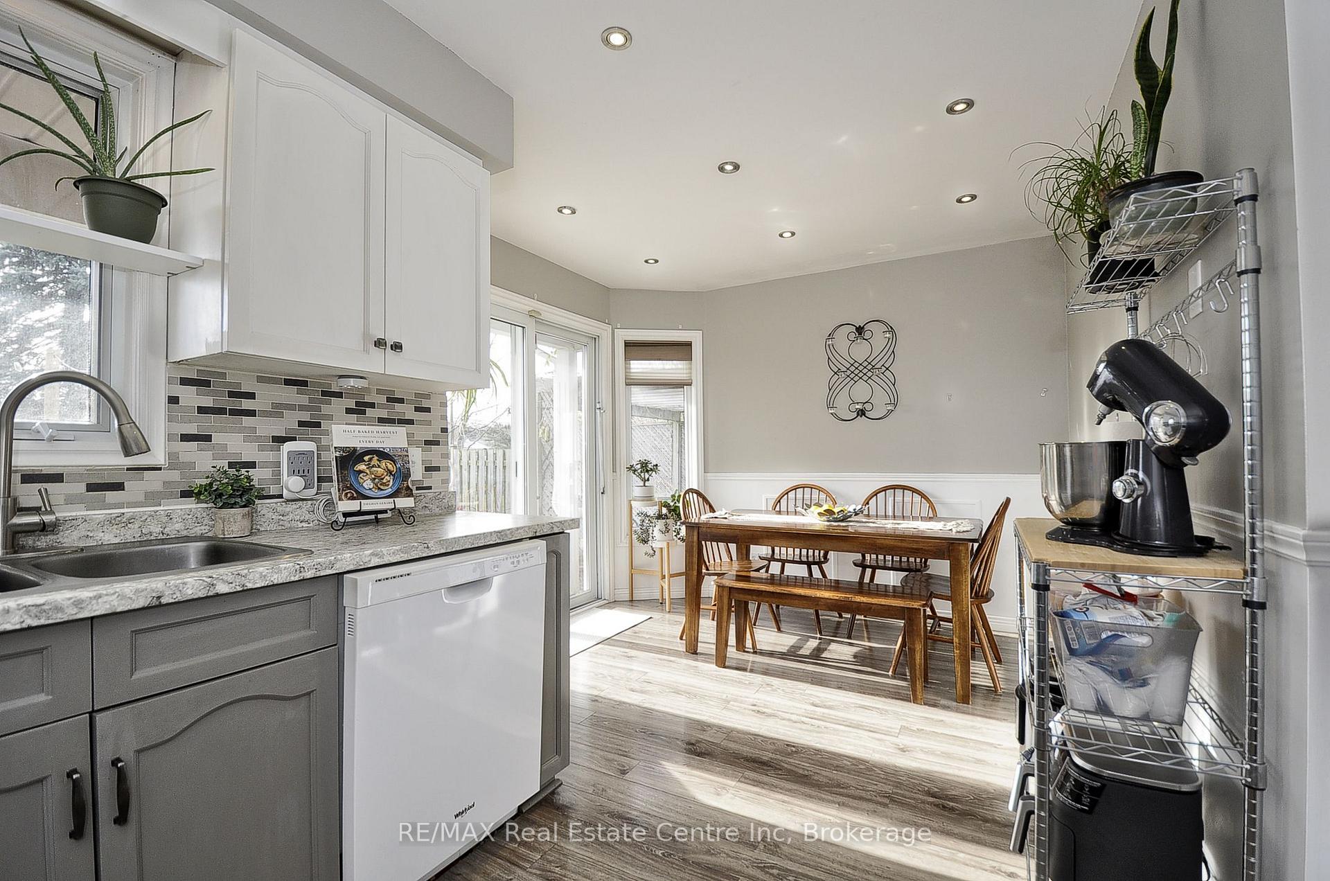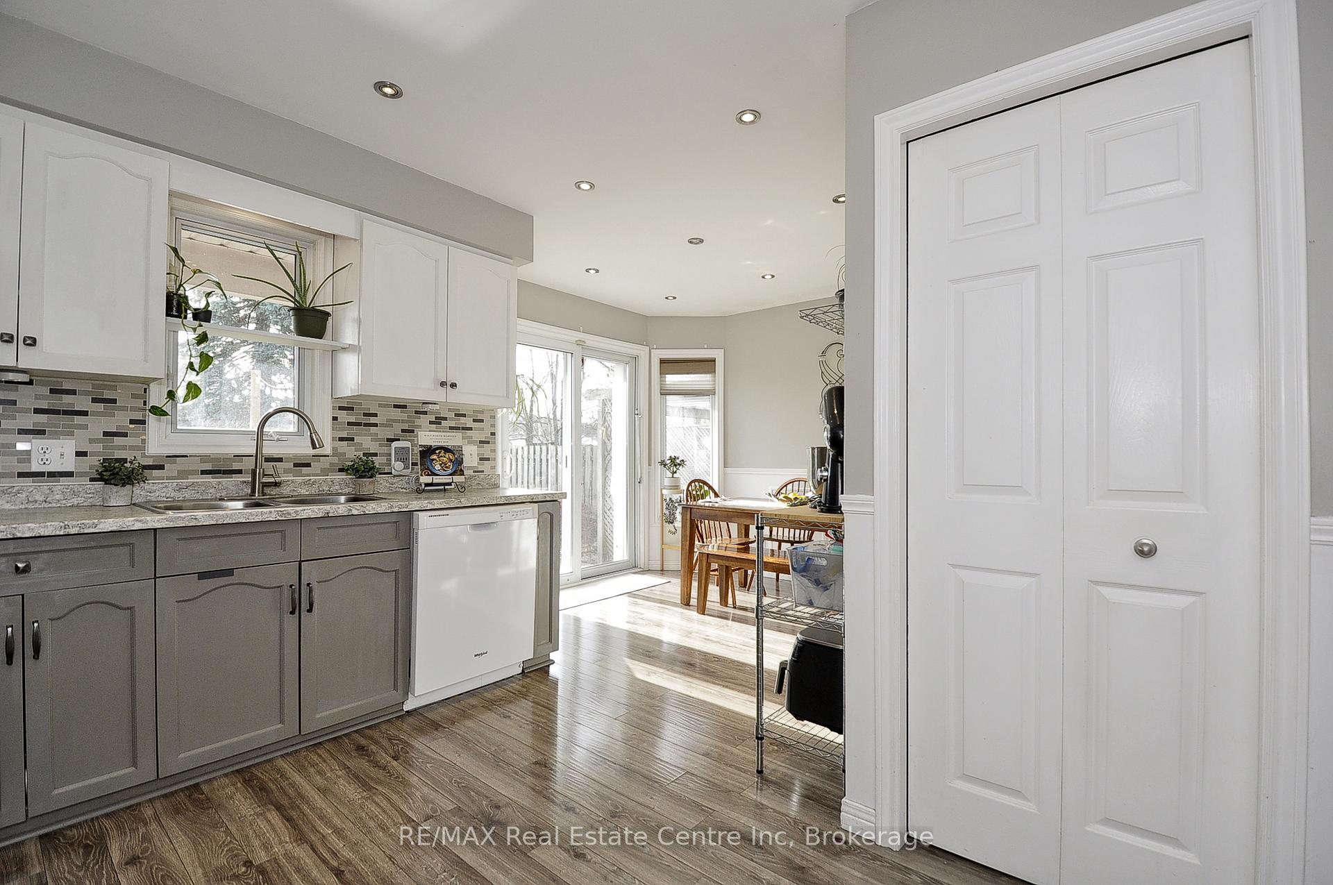 Welcome to this bright and spacious 3-bedroom, 2-bathroom semi-detached home nestled in one of Kitchener’s sought-after neighbourhoods! From the moment you step inside, you’ll appreciate the warm, inviting atmosphere and thoughtful layout perfect for family living. The main floor features durable laminate flooring throughout, leading you to a generous eat-in kitchen complete with modern look 2 tone cabinets, ample counter space, complimenting backsplash, a handy pantry, stylish pot lighting, and sliding patio doors that open onto a large deck-ideal for family meals, summer BBQs, and easy indoor-outdoor entertaining. A convenient 2-piece bathroom and side entrance complete this level. Upstairs, you’ll find three comfortable bedrooms, including a spacious primary suite with plenty of closet space for all your storage needs. The finished rec room offers a cozy retreat with its gas fireplace, making it a perfect spot to relax, watch movies, or unwind after a long day. Step outside to discover a beautifully landscaped, fully fenced backyard-the perfect haven for kids, pets, gardening, or simply enjoying peaceful moments in the fresh air. Move-in ready and located in a fantastic community, this home is the complete package. Don’t miss your chance to make it yours!