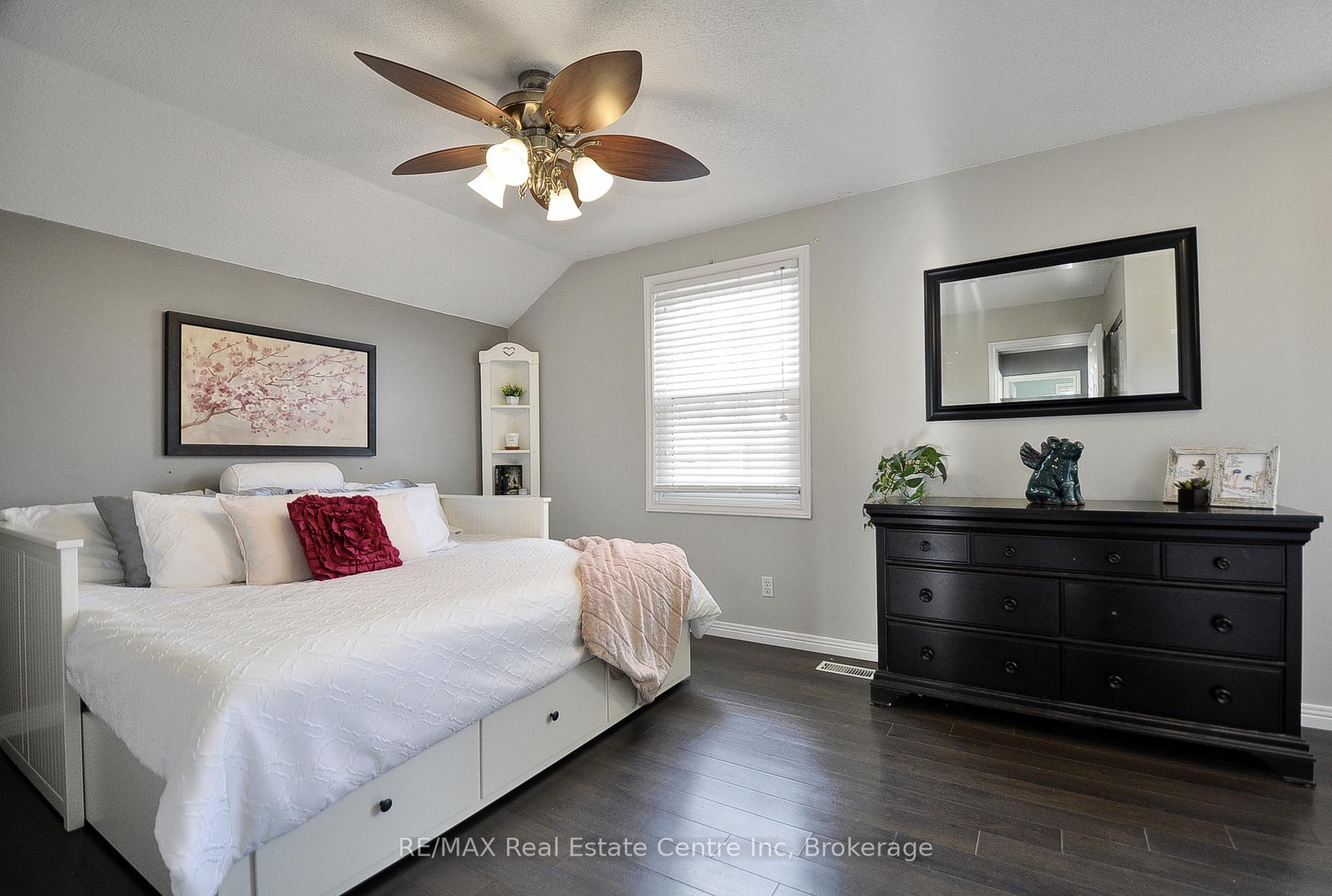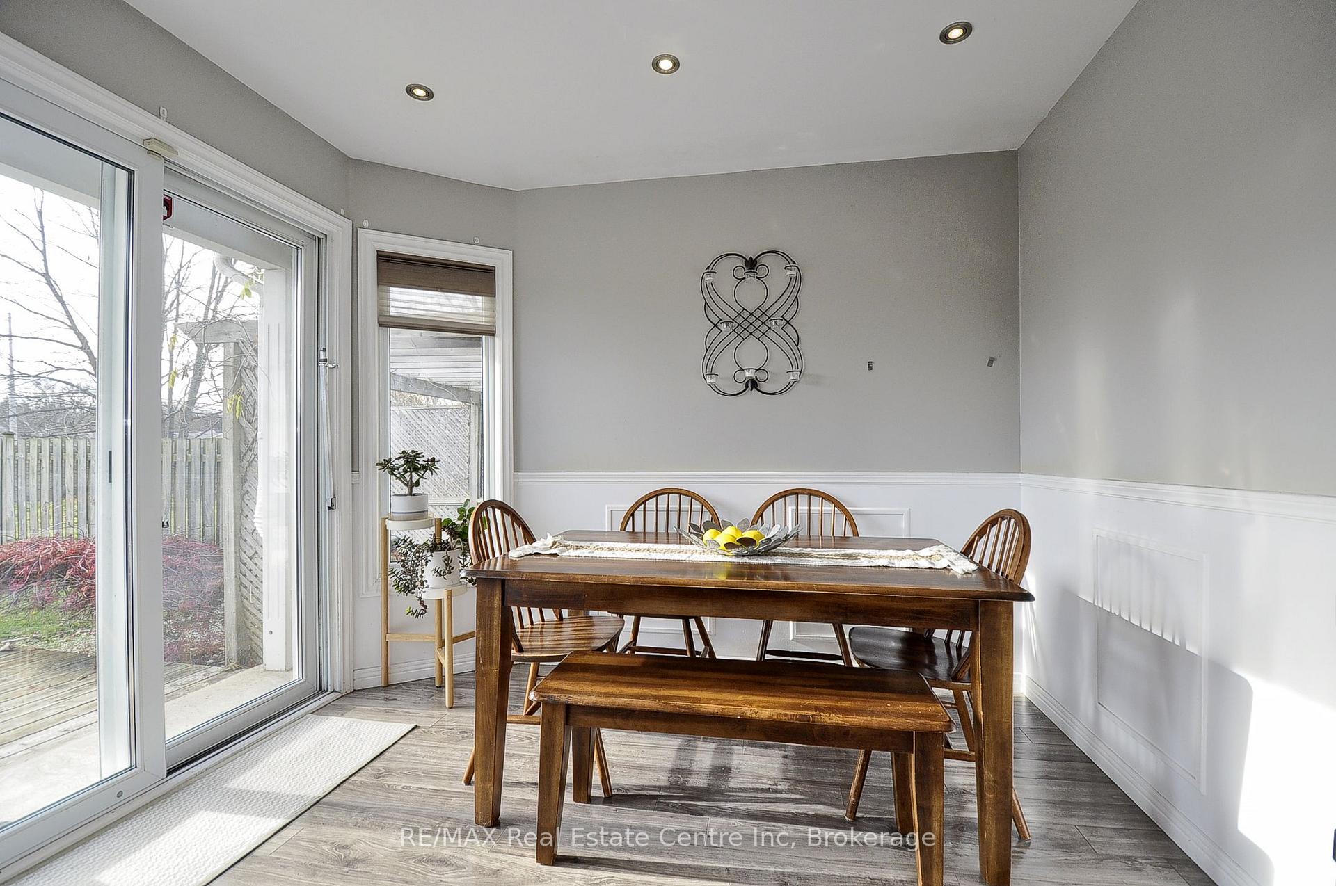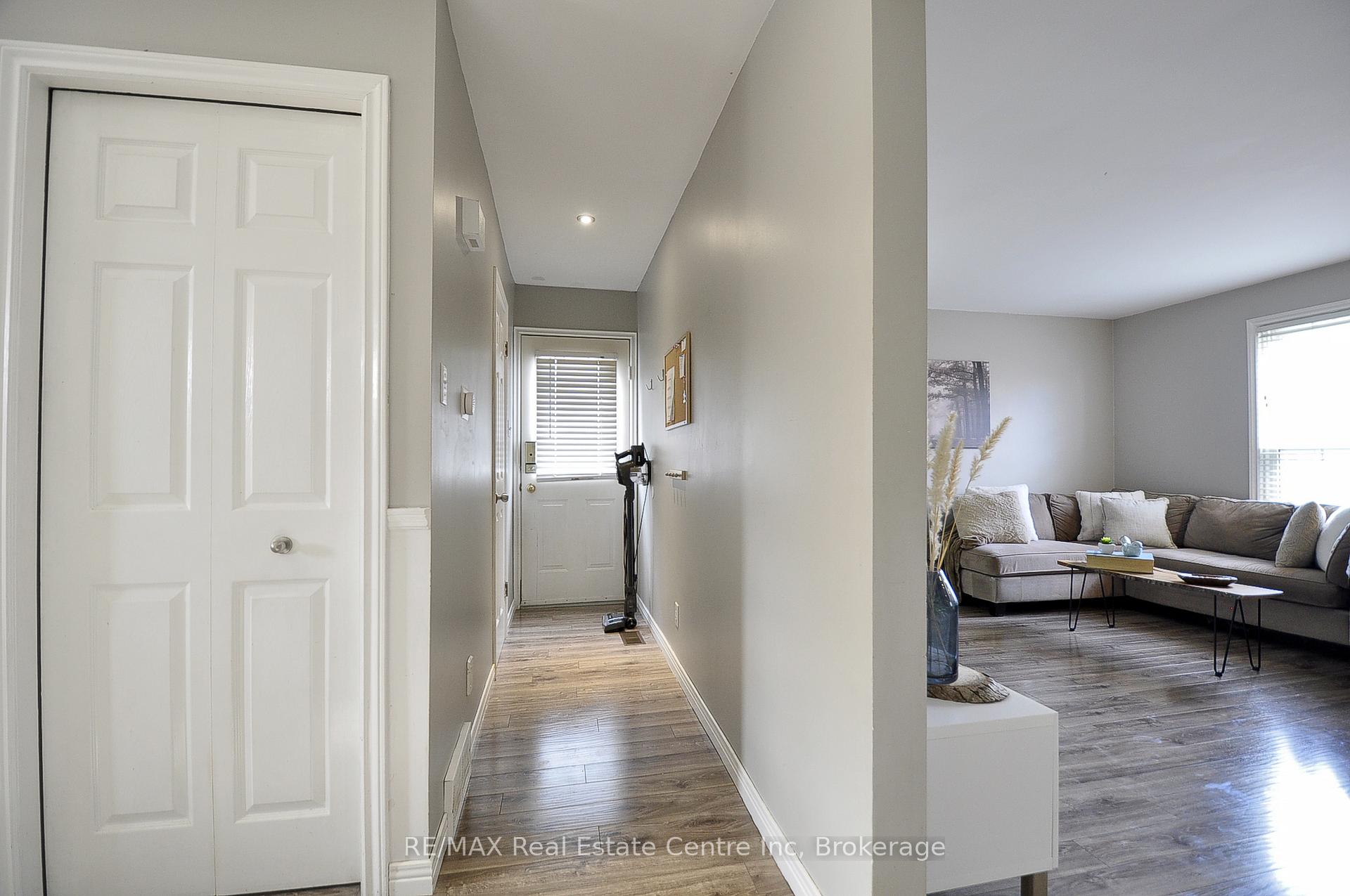 Welcome to this bright and spacious 3-bedroom, 2-bathroom semi-detached home nestled in one of Kitchener’s sought-after neighbourhoods! From the moment you step inside, you’ll appreciate the warm, inviting atmosphere and thoughtful layout perfect for family living. The main floor features durable laminate flooring throughout, leading you to a generous eat-in kitchen complete with modern look 2 tone cabinets, ample counter space, complimenting backsplash, a handy pantry, stylish pot lighting, and sliding patio doors that open onto a large deck-ideal for family meals, summer BBQs, and easy indoor-outdoor entertaining. A convenient 2-piece bathroom and side entrance complete this level. Upstairs, you’ll find three comfortable bedrooms, including a spacious primary suite with plenty of closet space for all your storage needs. The finished rec room offers a cozy retreat with its gas fireplace, making it a perfect spot to relax, watch movies, or unwind after a long day. Step outside to discover a beautifully landscaped, fully fenced backyard-the perfect haven for kids, pets, gardening, or simply enjoying peaceful moments in the fresh air. Move-in ready and located in a fantastic community, this home is the complete package. Don’t miss your chance to make it yours!