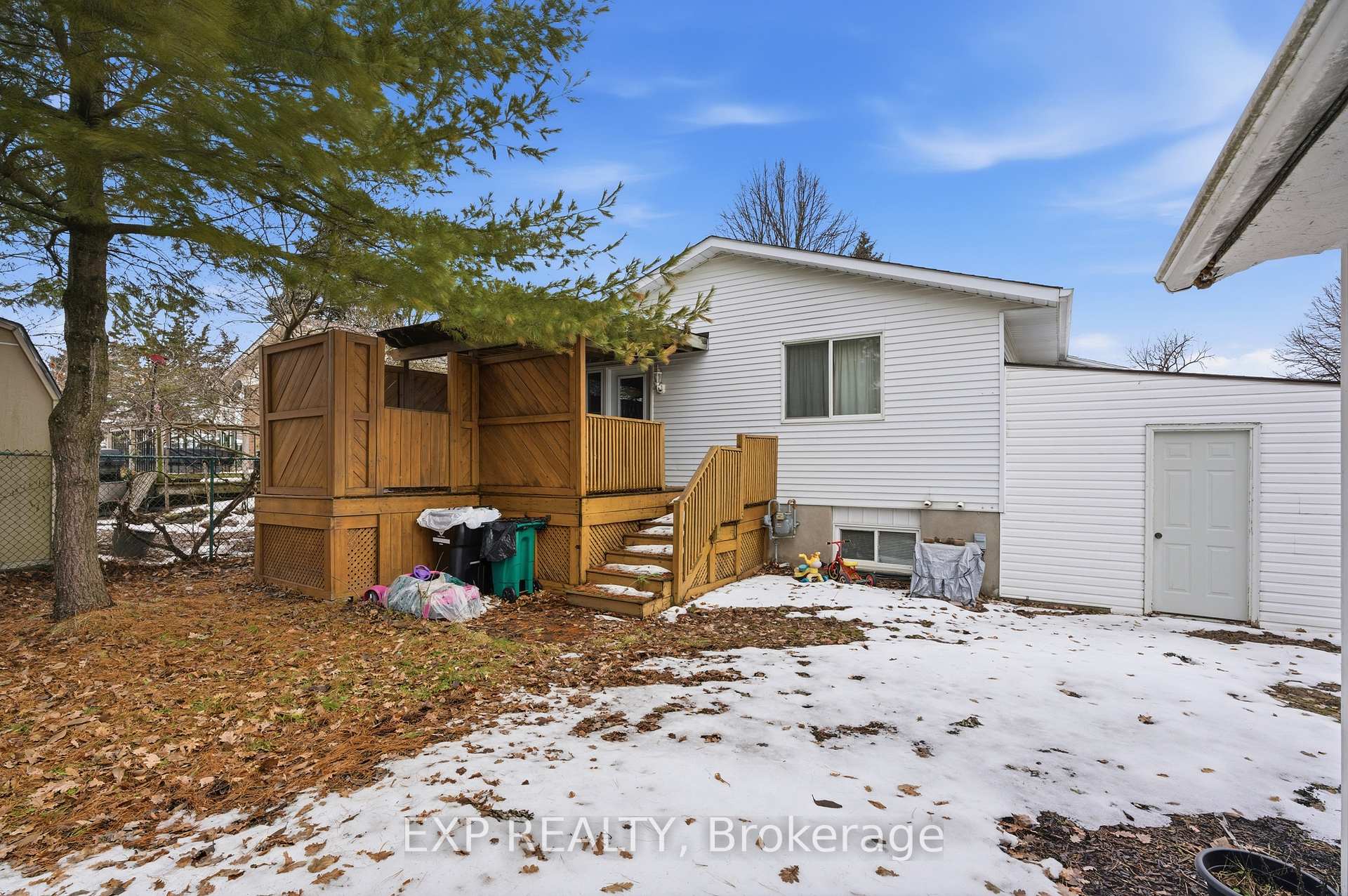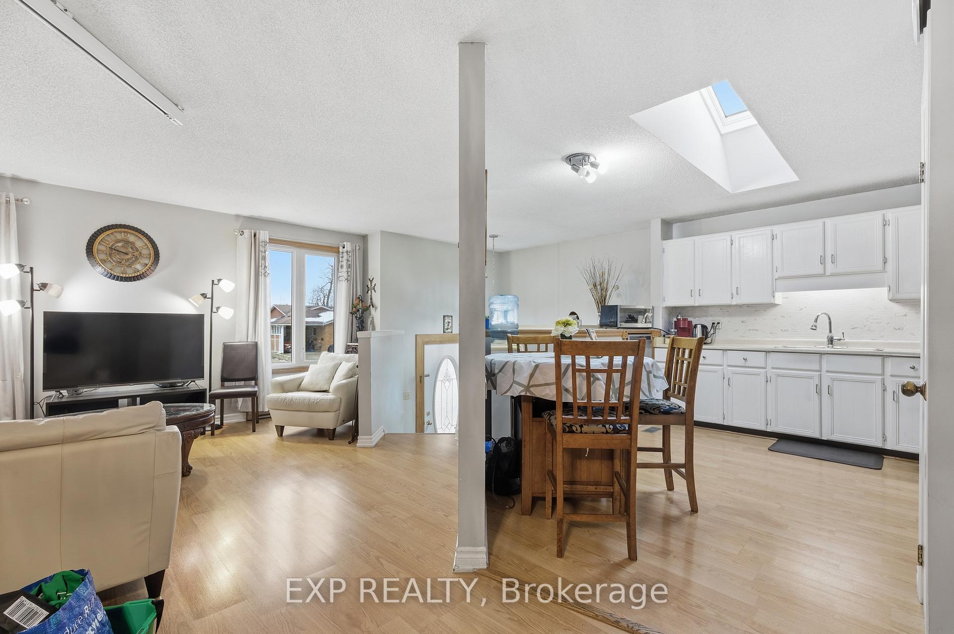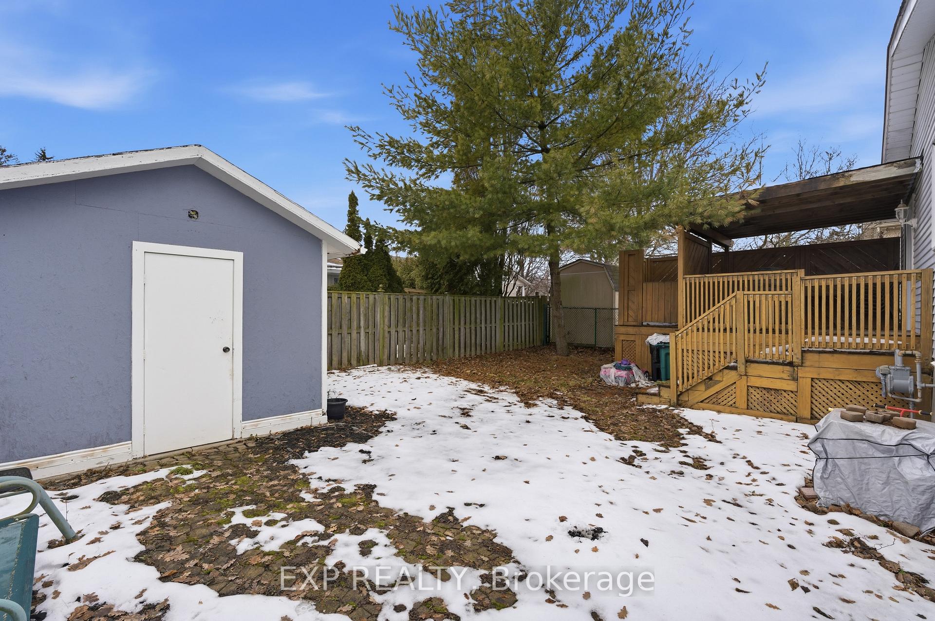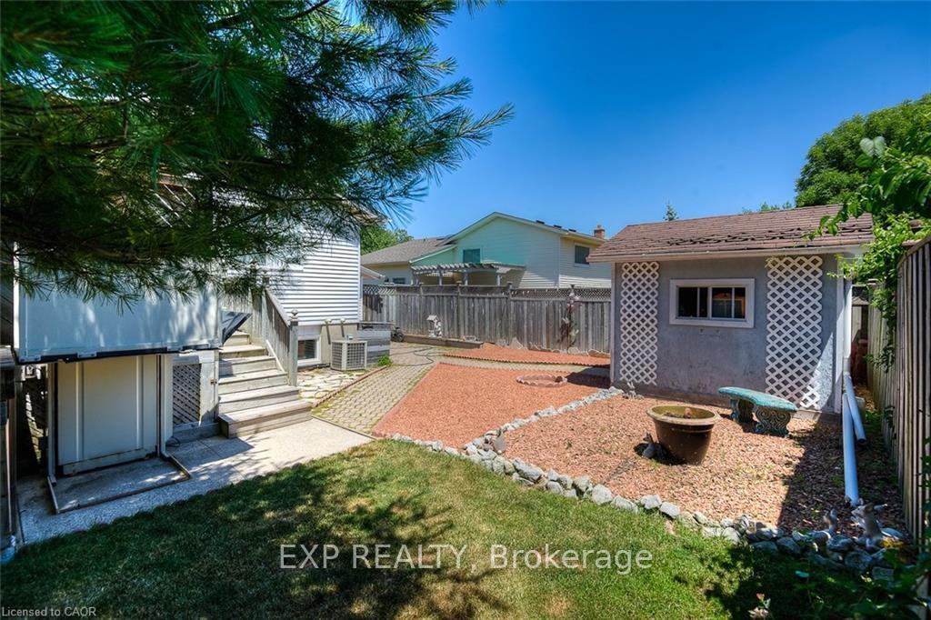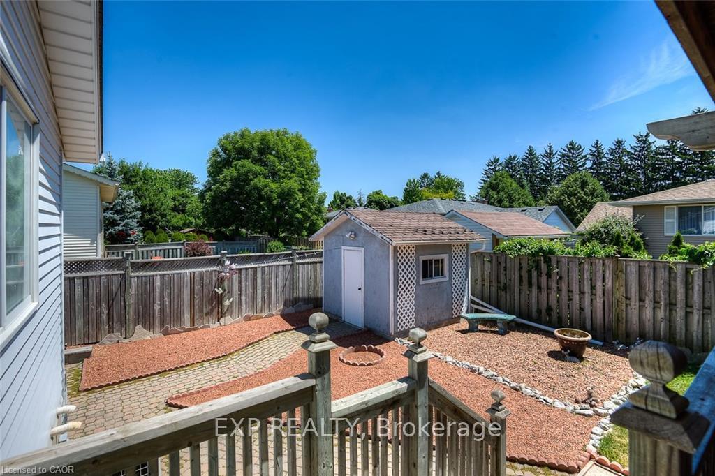 Well cared for raised bungalow located in the desirable Lexington / Lincoln Village area. This home offers a functional and inviting layout with 2+1 bedrooms and 2 full bathrooms, ideal for families, downsizers, or multi-generational living. The main level features a bright eat-in kitchen with skylight, a separate dining area, and a comfortable living space filled with natural light. Two well-sized bedrooms are located on the upper level, including a primary bedroom with walk-in closet. The second bedroom offers a walk-out to a private covered deck overlooking the fully fenced backyard. The finished lower level provides excellent additional living space with a large open-concept recreation room featuring a gas fireplace, a +1 bedroom,3-piece bathroom, den, and a combined storage/laundry room with walk-up access to the backyard. A separate enclosed entrance area to the lower level offers added privacy and flexibility, making this home well suited for in-law accommodation or potential multi-unit conversion. Notable updates include forced-air gas furnace (2012), central air conditioning, roof (2015), and skylight (2015).Additional features include an attached garage, double-wide private driveway, shed on concrete pad with hydro, and a fully fenced yard. Conveniently located close to shopping, transit, parks, and amenities.
