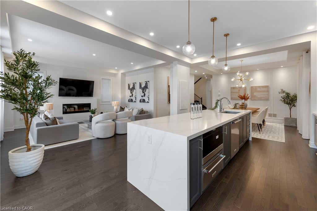 Built by Country Homes, this impressive detached residence is set on a rare premium pond-backing lot with uninterrupted sunset views and enhanced privacy-an increasingly scarce offering in today’s market. Offering approximately 3,176 + 871 sq ft of thoughtfully designed living space, this 5-bedroom, 5-bathroom home is ideally positioned on one of the area’s most sought-after streets, surrounded by executive and multi-million-dollar residences. Designed for both everyday comfort and elevated entertaining, the sun-filled chef’s kitchen and main living areas enjoy tranquil pond and ravine views, creating a seamless connection between indoor living and outdoor serenity. The kitchen features modern finishes, an oversized center island, quality appliances, and an open-concept layout ideal for growing families, hosting, and busy lifestyles. The well-planned layout offers two master bedrooms and ensures every bedroom is connected to a bathroom, delivering exceptional privacy and convenience, while a highly sought-after main-floor in-law suite with ensuite adds flexibility for multi-generational living.. Key upgrades include 10-foot ceilings, pot lights throughout, a built-in electric fireplace, fresh paint, and statement lighting. Parking for up to six vehicles supports active households with ease. Upstairs, a spacious loft provides valuable additional living space-perfect as a family room, homework zone, or media lounge-while the builder-finished basement adds a private theatre and expansive recreation area, ideal for entertaining or family nights at home. Premium pond-backing homes of this caliber are rarely available, making this an exceptional opportunity for buyers seeking privacy, views, and long-term value.