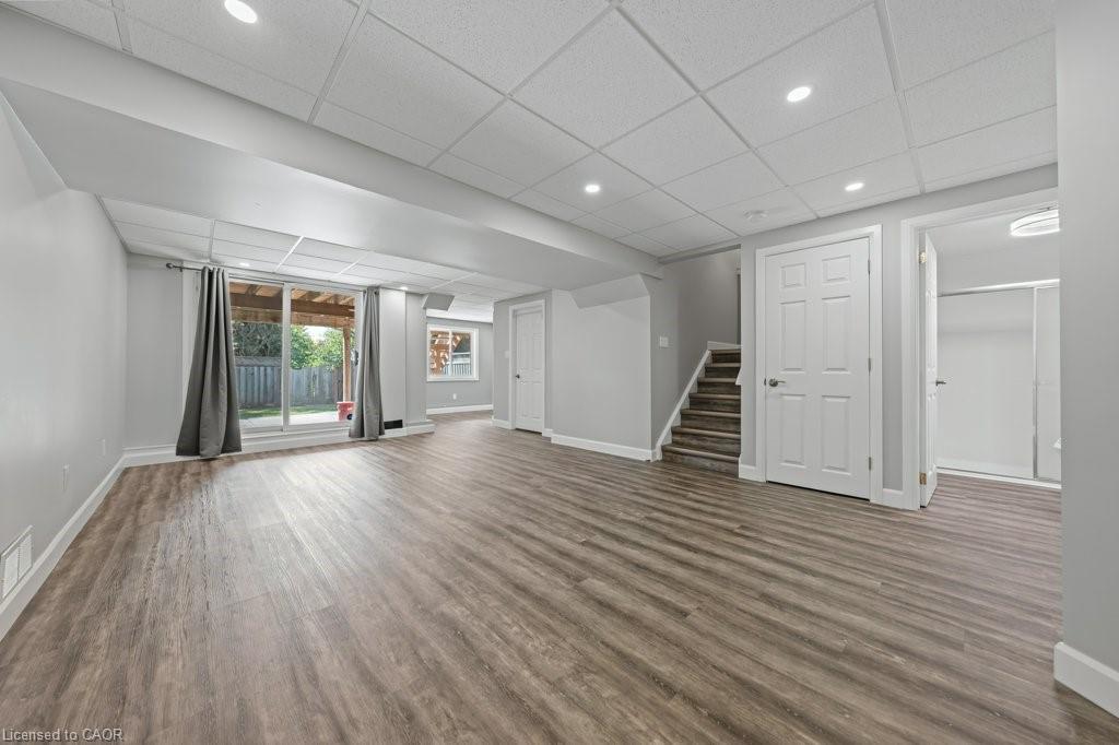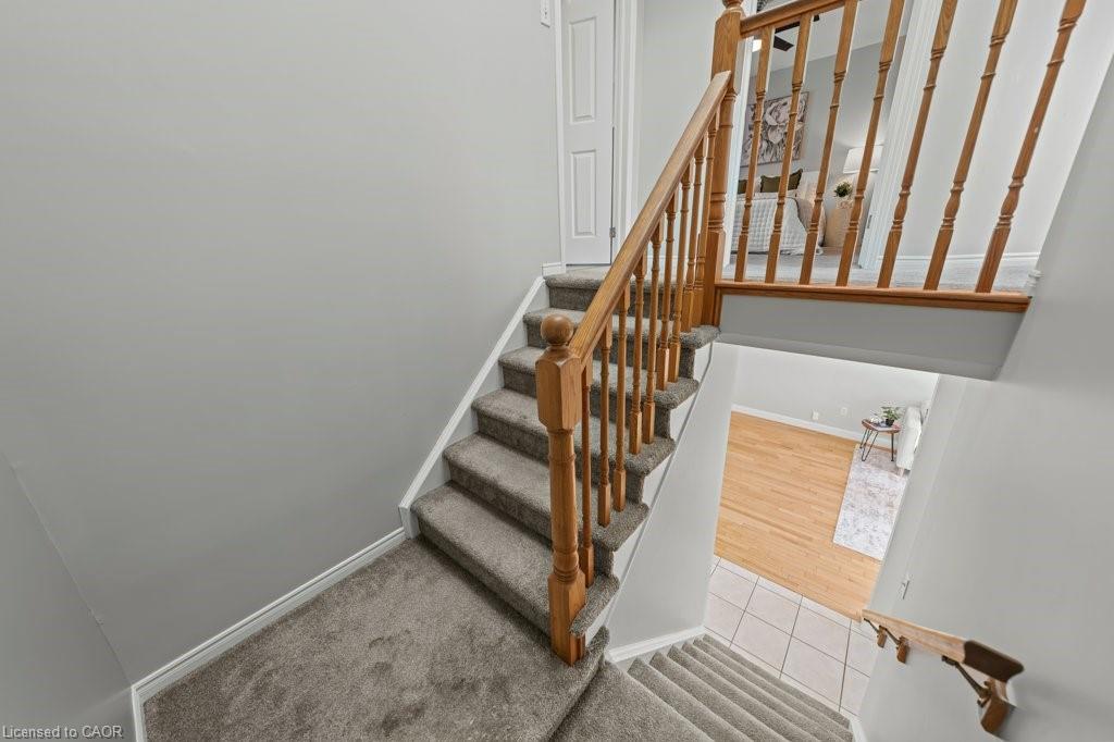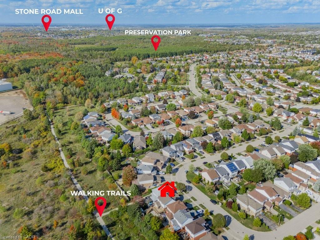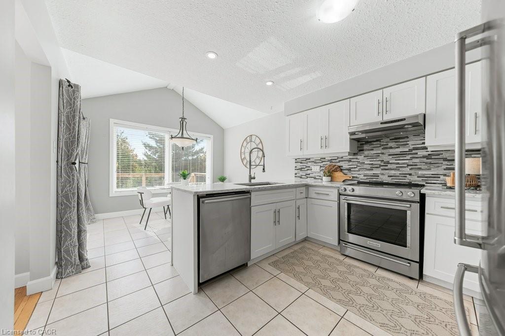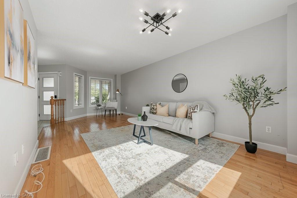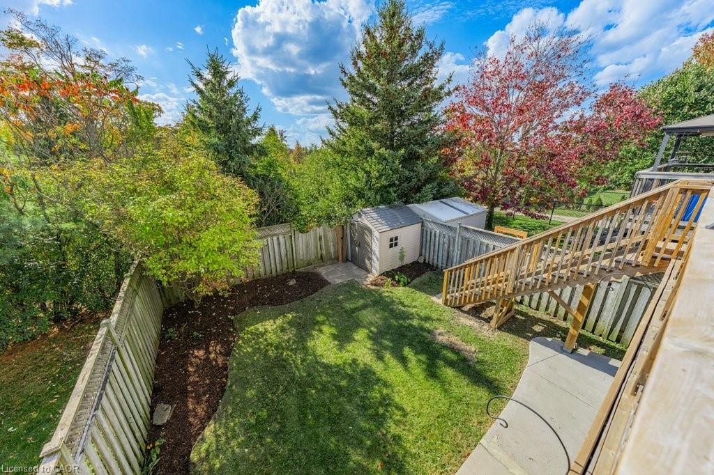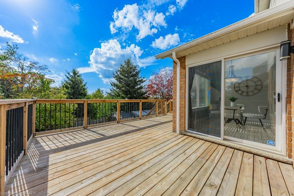 Located on a quiet crescent with a walkout basement overlooking greenspace! This home will suit many buyers’ needs – stamped concrete entranceway leading inside to the main level with living room/dining room featuring hardwood flooring, kitchen was updated with new cabinet doors and countertops in 2019, and has a dinette that leads to the large deck overlooking the walking trails and beautiful tree line. There is also a 2-piece on this level and direct access to the garage. Upstairs has three bedrooms and a 4-piece bath. The basement is finished with a large family room and a perfect area for a fourth bedroom should you desire. This level walks out to the private backyard, and could easily be used as a separate entrance. The location is perfect for growing families, commuters, or parents of U of G students, as it’s completely surrounded by great amenities and has easy access to Highway 6. Roof 2015, water heater 2022, water softener 2022, basement 2022, deck 2020. Flexible closing available.