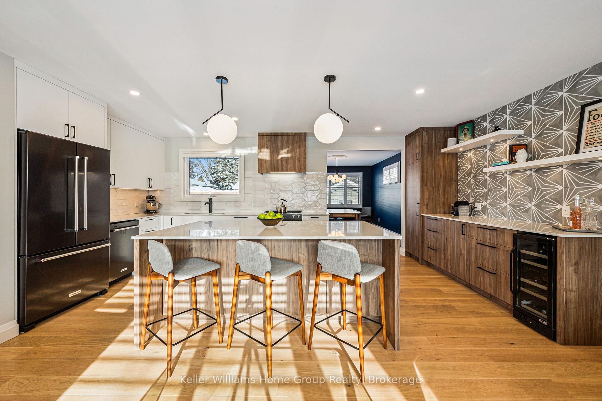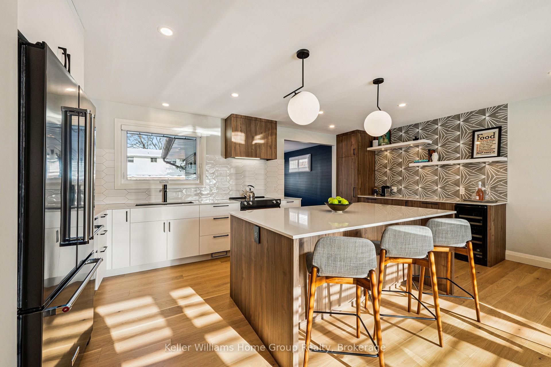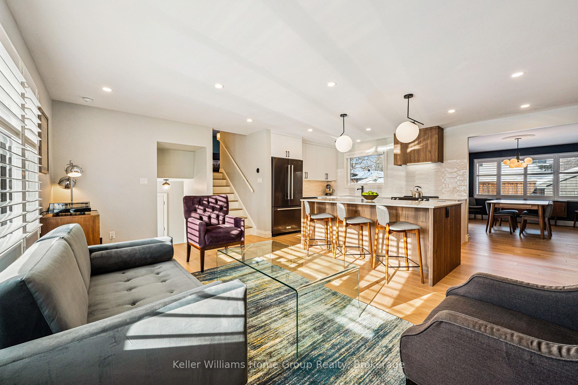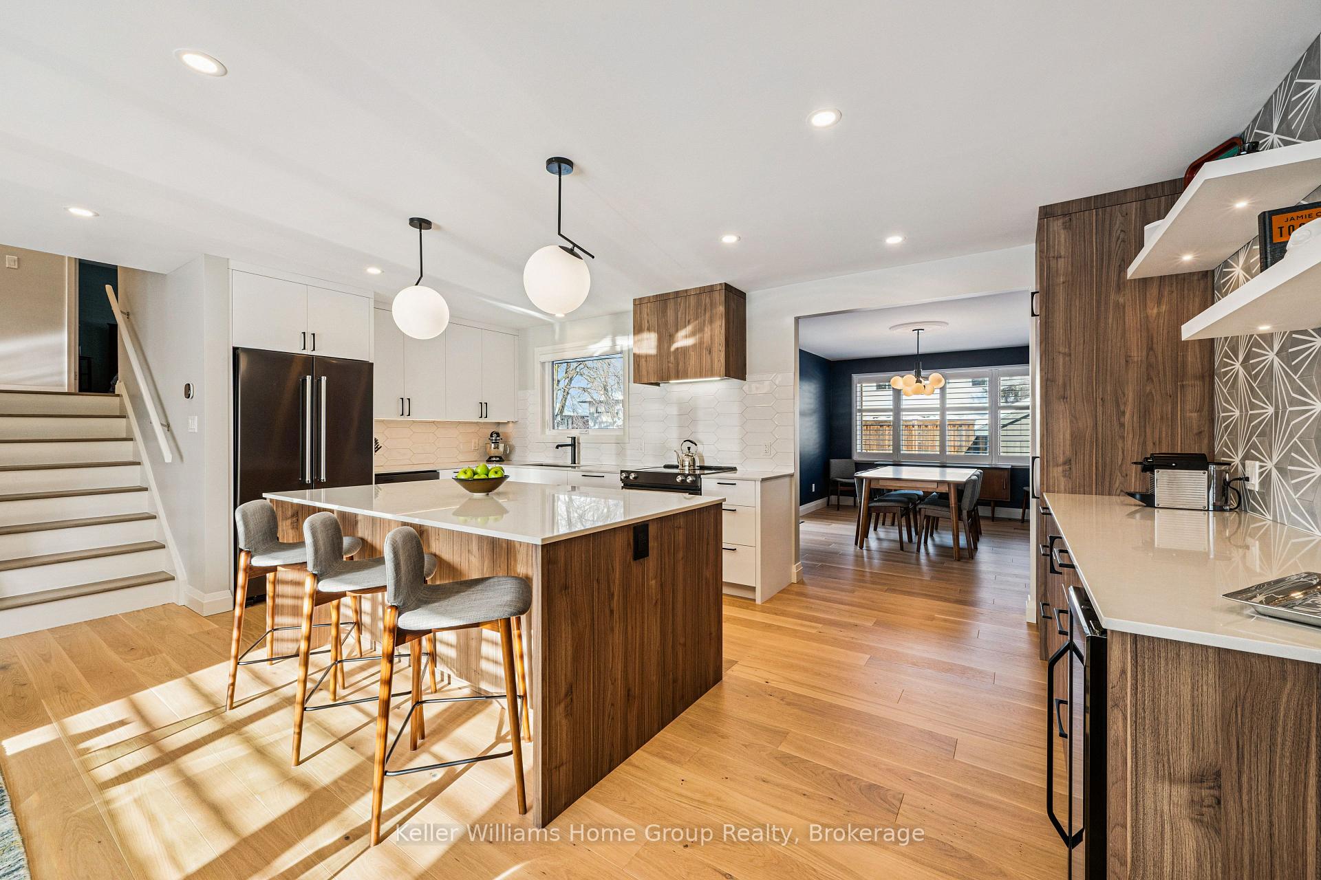 Homes in this sought-after neighbourhood are truly special, and 43 Glenburnie Drive stands as a beautiful example. From the moment you arrive, the pride of ownership is unmistakable. A new front door and elegant California shutters set the tone for the quality and care found throughout this impeccably maintained home. Step into the spacious front foyer, where new heated flooring offers both comfort and a touch of everyday luxury. The open-concept kitchen and living area form an impressive yet welcoming centerpiece, thoughtfully designed for both entertaining and daily living. Abundant custom cabinetry, a striking oversized island with seating, and a separate formal dining area create a space that is as functional as it is stylish. The main level also features a sophisticated reading room with doors opening to the rear yard, enhanced by a stunning custom-built feature wall with integrated shelving, storage and gas fireplace along with a beautifully updated 3-piece bathroom. Upstairs, three generously sized bedrooms showcase gleaming hardwood floors and are complemented by a sleek, modern main bathroom. The lower level offers a finished recreation room with above-grade windows, ideal for relaxing or hosting guests, as well as an unfinished laundry and mechanical room and a bonus crawl space, providing exceptional storage options. The large and level lot features mature landscaping, newer deck and a luxurious hot tub – the perfect spot to relax after a long day. You won’t want to miss seeing this outstanding home.