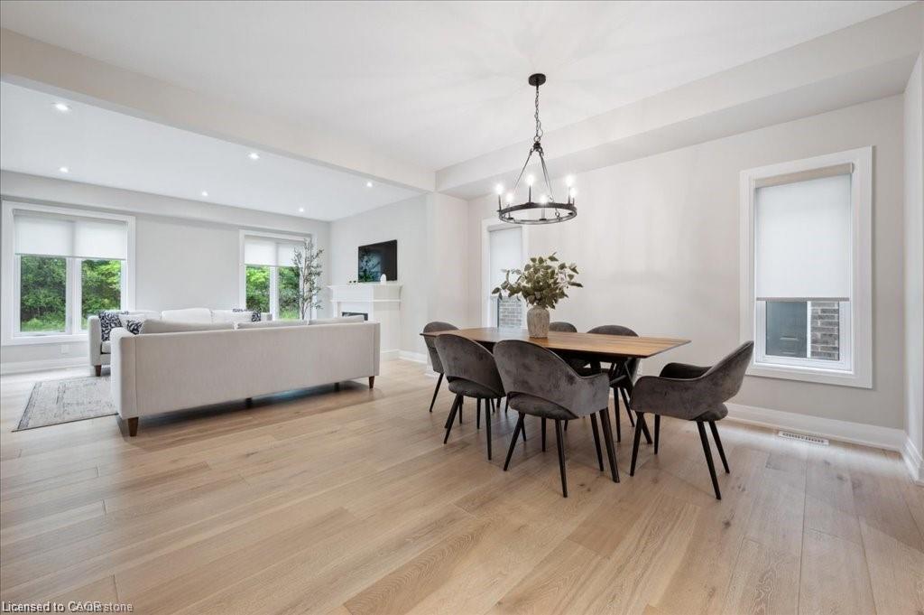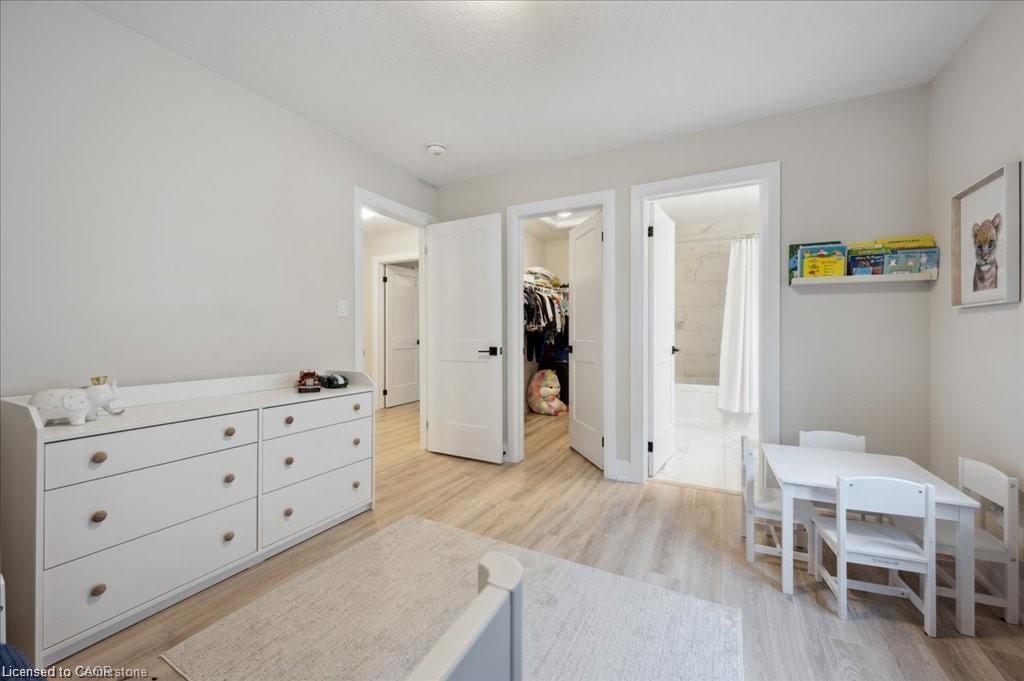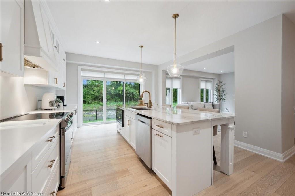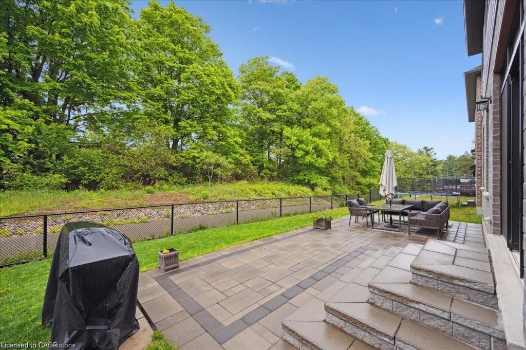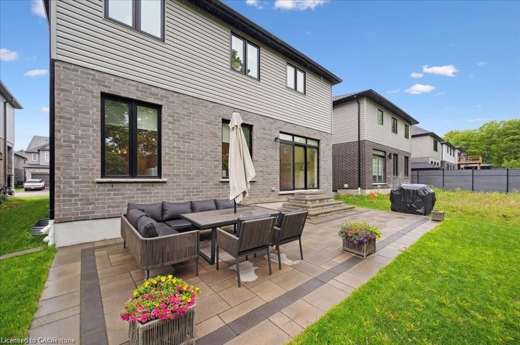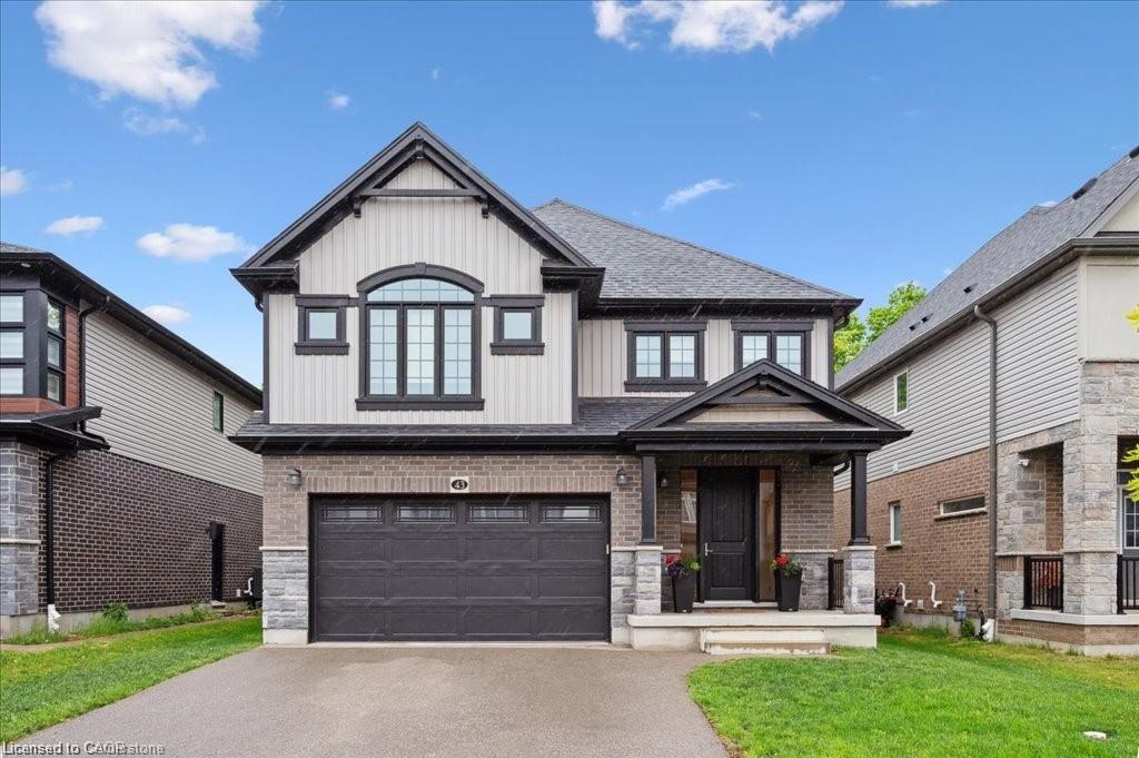 This Doon South showpiece is 4 years young but shows like a model. Beautifully built by Activa for the current owners who smartly invested over $80,000 into upgrades & extras. Featuring 4 generous size bedrooms including a secondary bedroom with its own 4 piece ensuite bath with quartz counter & walk-in closet! Behind a set of double doors awaits your primary bedroom suite. This area has an amazing L-Shaped walk-in closet & deluxe 5 piece ensuite bath boasting a large oval shaped soaker tub, 2 undermount sinks in the quartz countertop, a glass & tile step in shower and a rite-height water closet. All flooring on the upper level is a combination of ceramic in the bathrooms and “Aurlands Oak” laminate in all bedrooms! The focus of the main floor has to be the inviting “Chef’s Delight” kitchen. So many upgrades were selected for this room. Let me list a few. Bright, white cabinets featuring soft closers on upper and lowers. A 10′ x 4′ family-sized centre island with a CAMBRIA quartz top has a undermount granite oversized sink and has room for 4 people! Other extras include a pantry closet with wire shelving, a microwave and garbage/recycling centre built into the island & a water line to the fridge! Walk out from the kitchen & start enjoying your fantastic rear stone patio (36′ x 14′). Added bonus that it back onto a greenspace, trees and walking path! The flooring choices made for the main floor are ceramics (powder room & laundry room) and engineered hardwood in the balance. The spacious Great Room is highlighted by the “Marquis Solara” gas fireplace! Your laundry room has access door to double garage, has ceramic floor & a convenient folding countertop above your washer & dryer! The lower level awaits your ideas with 3 huge windows for maximum sunlight! There is a 3 piece rough-in bath, a tankless water heater, a Trane furnace with built-in humidifier & a Venmar air exchanger! MOEN upgraded faucets throughout, coloured exterior windows & steel backed oak staircase