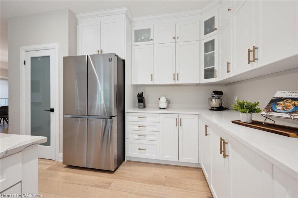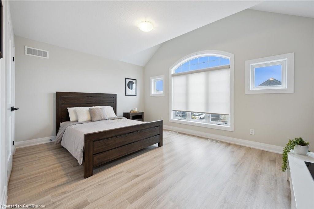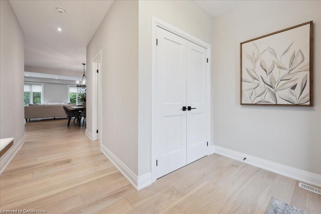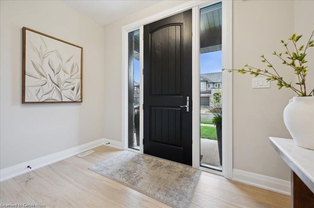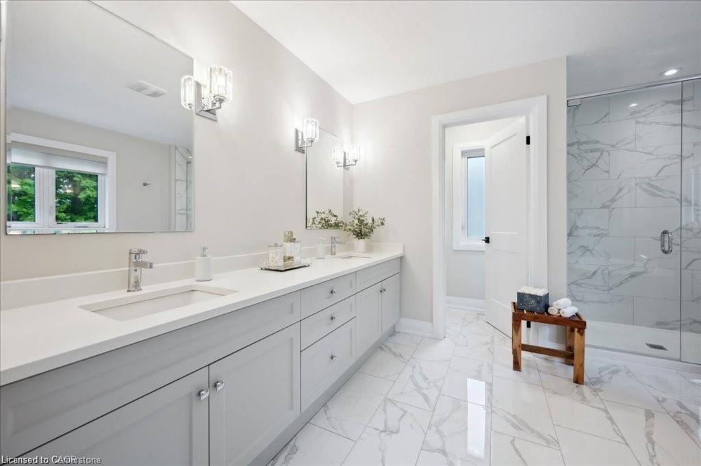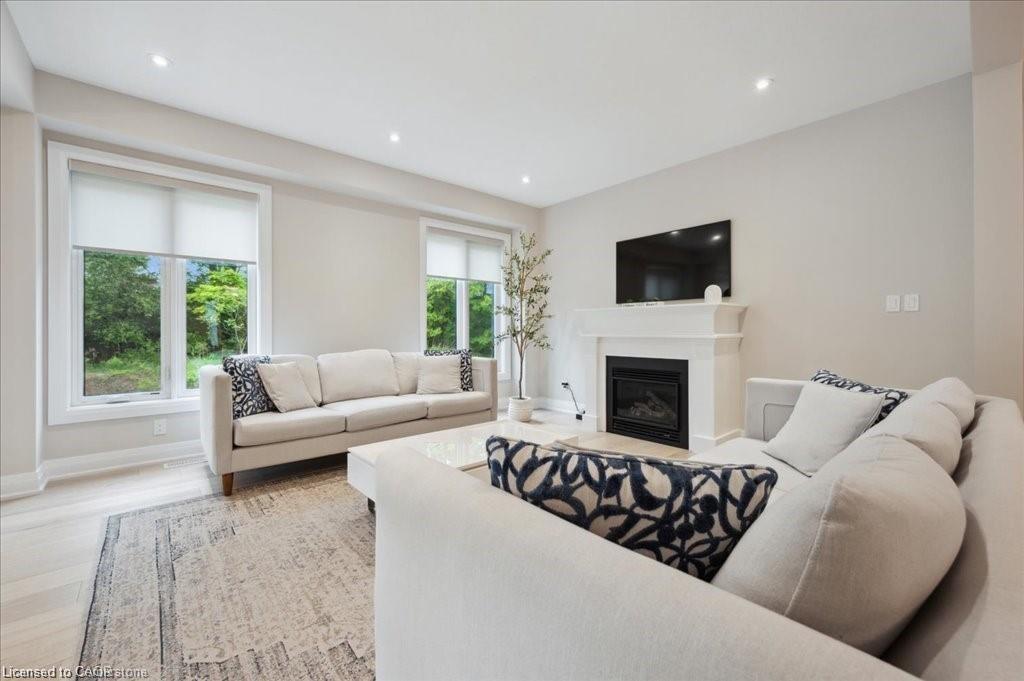 This Doon South showpiece is 4 years young but shows like a model. Beautifully built by Activa for the current owners who smartly invested over $80,000 into upgrades & extras. Featuring 4 generous size bedrooms including a secondary bedroom with its own 4 piece ensuite bath with quartz counter & walk-in closet! Behind a set of double doors awaits your primary bedroom suite. This area has an amazing L-Shaped walk-in closet & deluxe 5 piece ensuite bath boasting a large oval shaped soaker tub, 2 undermount sinks in the quartz countertop, a glass & tile step in shower and a rite-height water closet. All flooring on the upper level is a combination of ceramic in the bathrooms and “Aurlands Oak” laminate in all bedrooms! The focus of the main floor has to be the inviting “Chef’s Delight” kitchen. So many upgrades were selected for this room. Let me list a few. Bright, white cabinets featuring soft closers on upper and lowers. A 10′ x 4′ family-sized centre island with a CAMBRIA quartz top has a undermount granite oversized sink and has room for 4 people! Other extras include a pantry closet with wire shelving, a microwave and garbage/recycling centre built into the island & a water line to the fridge! Walk out from the kitchen & start enjoying your fantastic rear stone patio (36′ x 14′). Added bonus that it back onto a greenspace, trees and walking path! The flooring choices made for the main floor are ceramics (powder room & laundry room) and engineered hardwood in the balance. The spacious Great Room is highlighted by the “Marquis Solara” gas fireplace! Your laundry room has access door to double garage, has ceramic floor & a convenient folding countertop above your washer & dryer! The lower level awaits your ideas with 3 huge windows for maximum sunlight! There is a 3 piece rough-in bath, a tankless water heater, a Trane furnace with built-in humidifier & a Venmar air exchanger! MOEN upgraded faucets throughout, coloured exterior windows & steel backed oak staircase