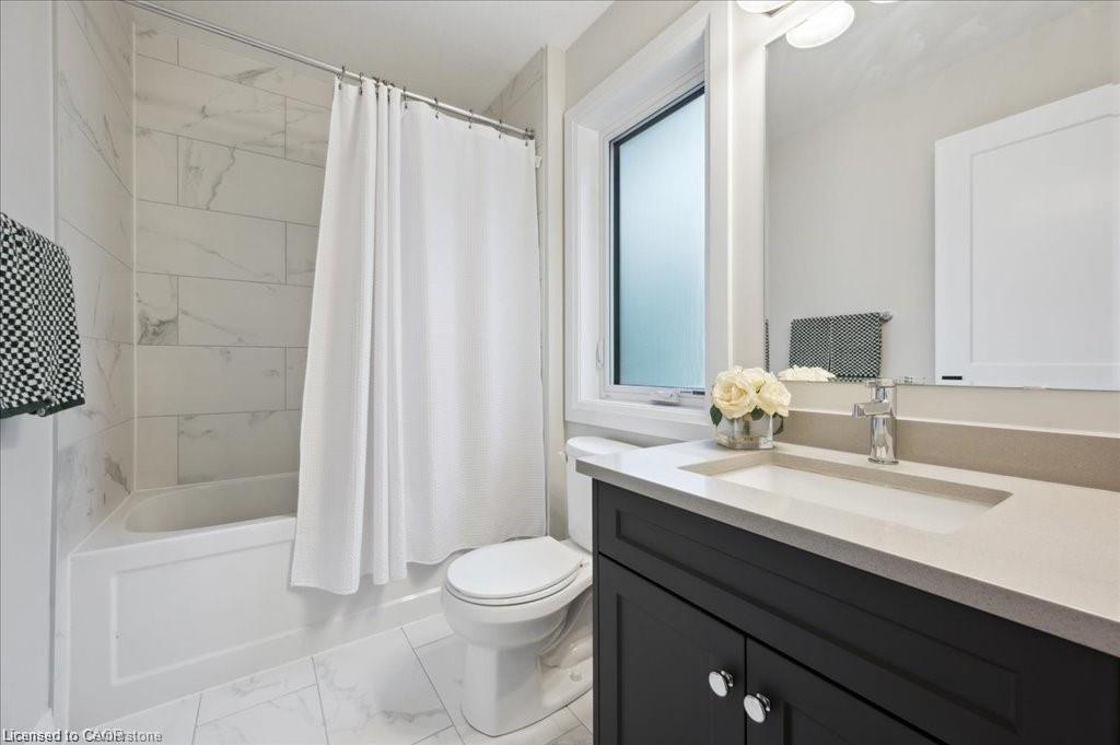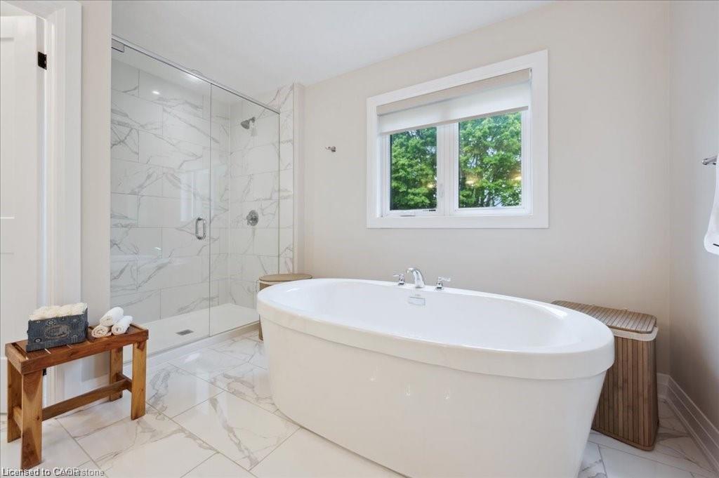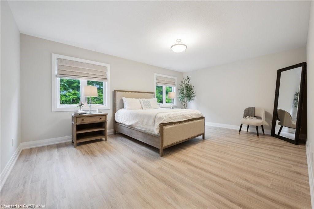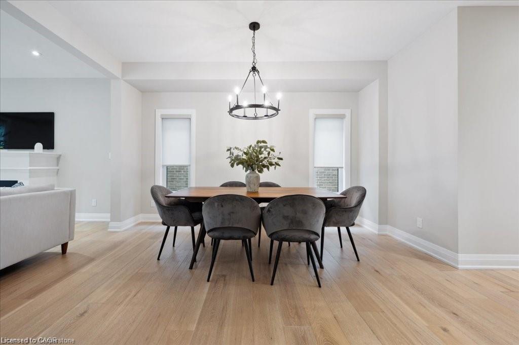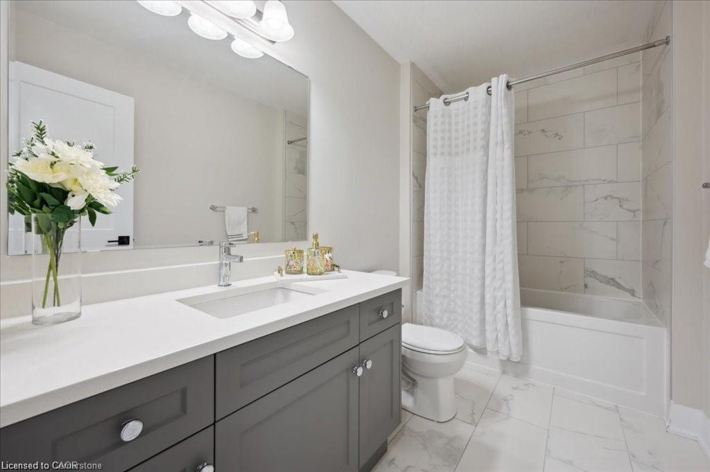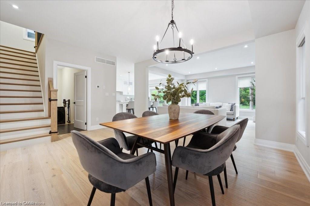 This Doon South showpiece is 4 years young but shows like a model. Beautifully built by Activa for the current owners who smartly invested over $80,000 into upgrades & extras. Featuring 4 generous size bedrooms including a secondary bedroom with its own 4 piece ensuite bath with quartz counter & walk-in closet! Behind a set of double doors awaits your primary bedroom suite. This area has an amazing L-Shaped walk-in closet & deluxe 5 piece ensuite bath boasting a large oval shaped soaker tub, 2 undermount sinks in the quartz countertop, a glass & tile step in shower and a rite-height water closet. All flooring on the upper level is a combination of ceramic in the bathrooms and “Aurlands Oak” laminate in all bedrooms! The focus of the main floor has to be the inviting “Chef’s Delight” kitchen. So many upgrades were selected for this room. Let me list a few. Bright, white cabinets featuring soft closers on upper and lowers. A 10′ x 4′ family-sized centre island with a CAMBRIA quartz top has a undermount granite oversized sink and has room for 4 people! Other extras include a pantry closet with wire shelving, a microwave and garbage/recycling centre built into the island & a water line to the fridge! Walk out from the kitchen & start enjoying your fantastic rear stone patio (36′ x 14′). Added bonus that it back onto a greenspace, trees and walking path! The flooring choices made for the main floor are ceramics (powder room & laundry room) and engineered hardwood in the balance. The spacious Great Room is highlighted by the “Marquis Solara” gas fireplace! Your laundry room has access door to double garage, has ceramic floor & a convenient folding countertop above your washer & dryer! The lower level awaits your ideas with 3 huge windows for maximum sunlight! There is a 3 piece rough-in bath, a tankless water heater, a Trane furnace with built-in humidifier & a Venmar air exchanger! MOEN upgraded faucets throughout, coloured exterior windows & steel backed oak staircase