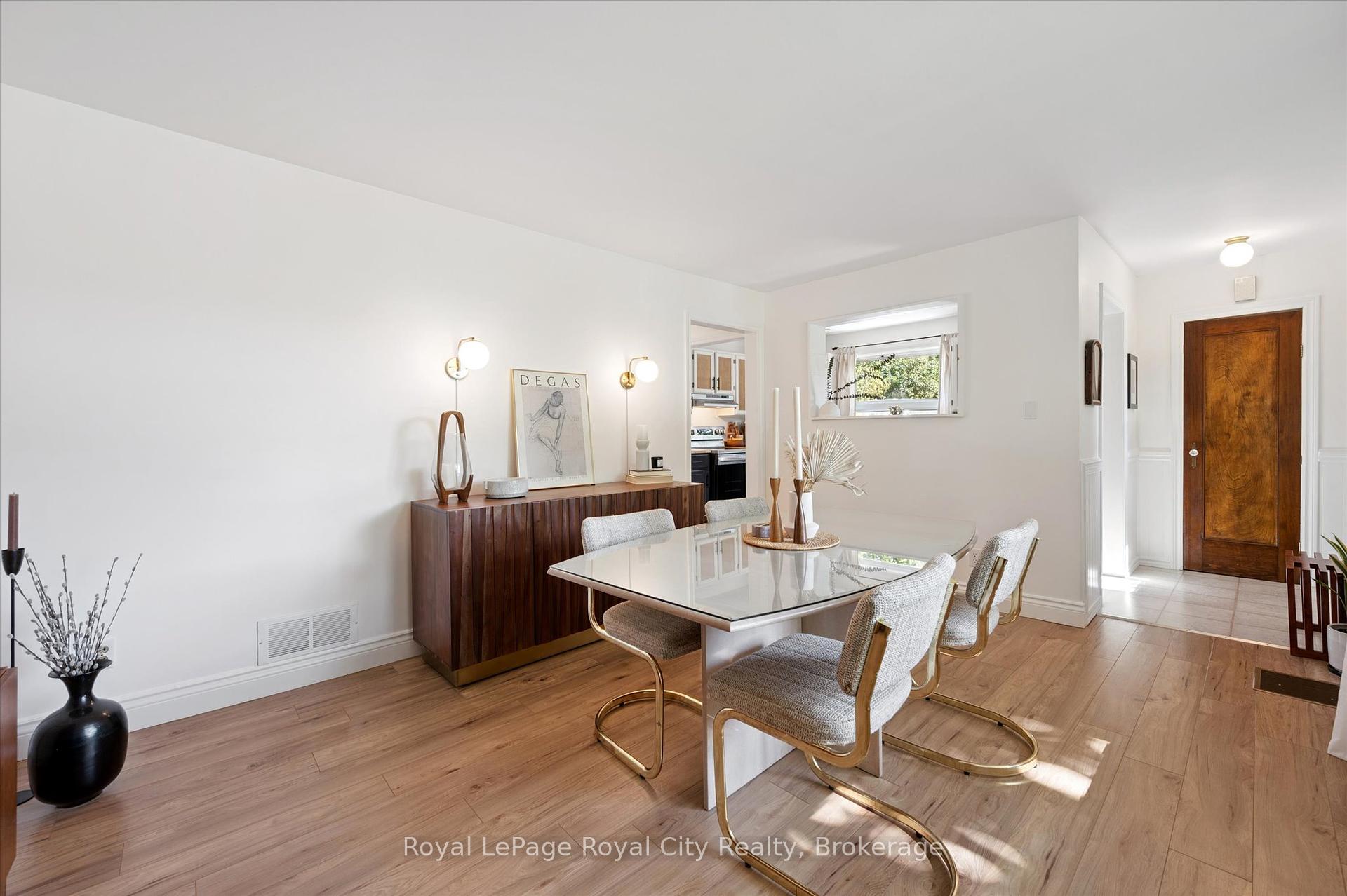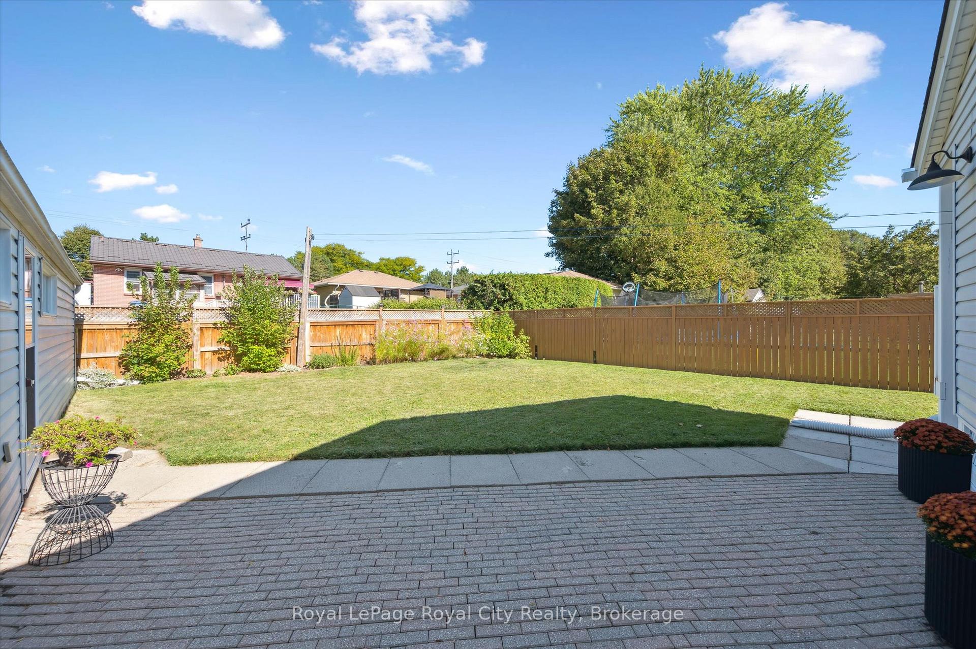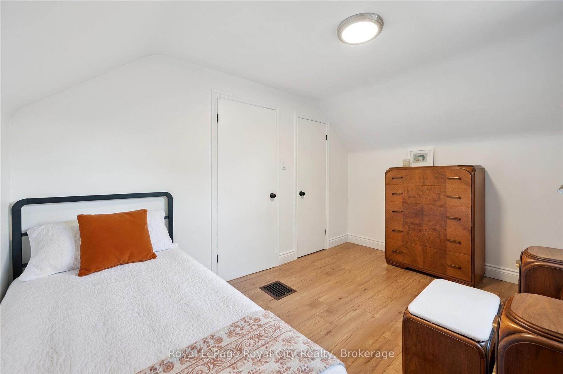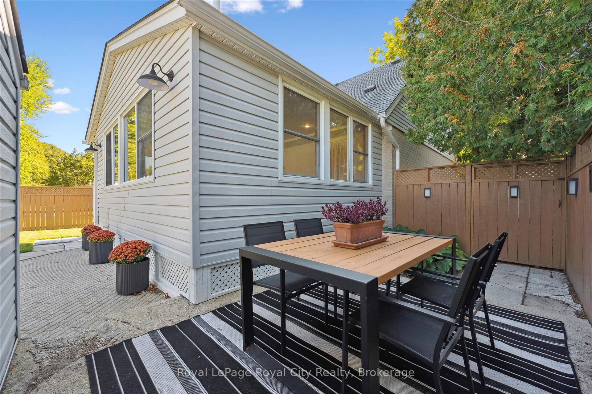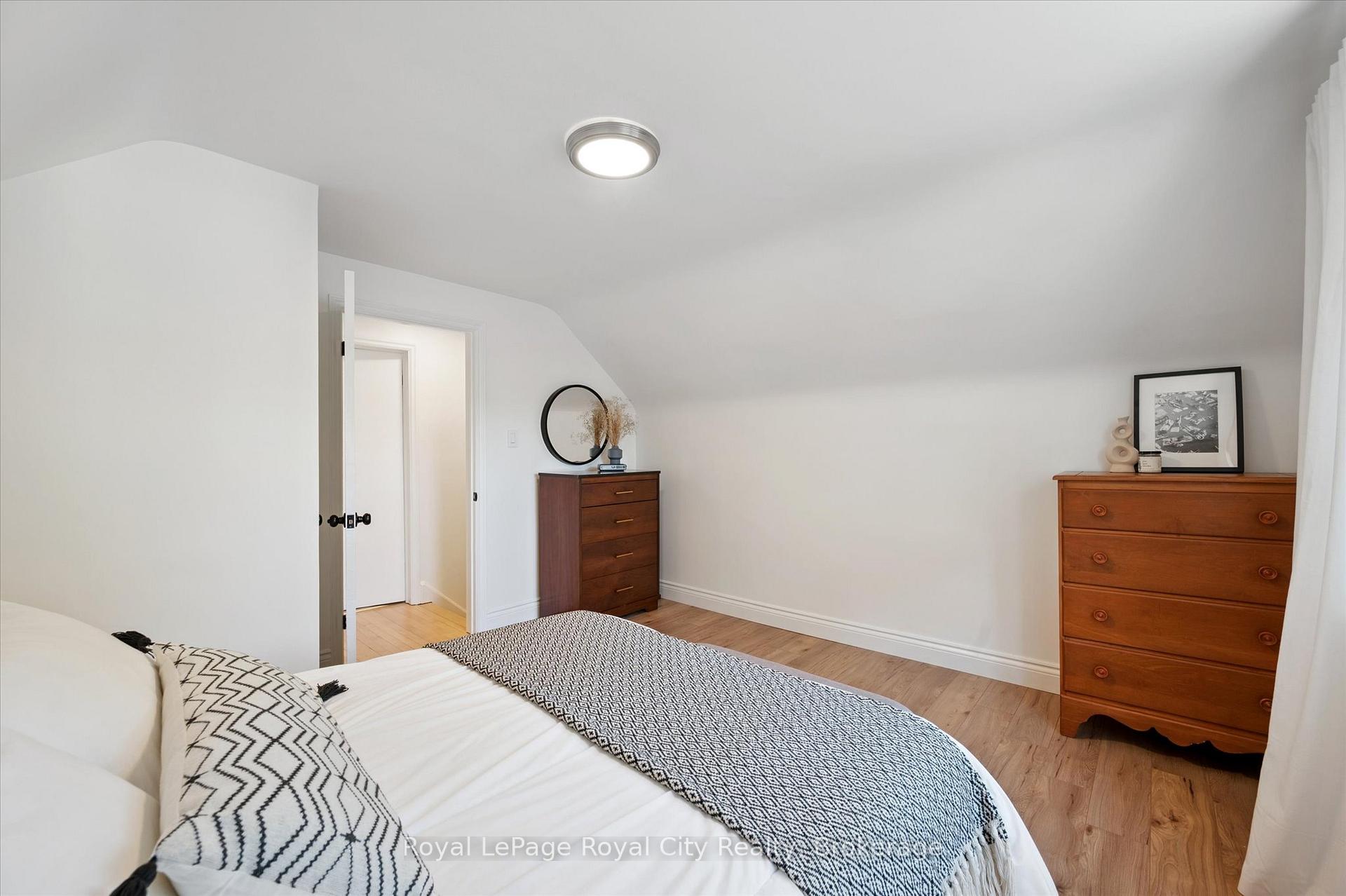 This charming 3-Bedroom, detached 1.5-storey home is located in the desirable St. George Park area of Guelph. The home has been meticulously cared for, w/ tasteful updates & design choices throughout. The spacious kitchen features new stainless steel appliances & matching sink & faucet. A window above the sink allows natural light to fill the space and the cutout between the kitchen & dining/living area keeps you connected with family & guests while preparing meals. This room also has a large front window that frames a picturesque view of the lawn & mature trees. There is a main-floor BDRM (the perfect home office) & just down the hall is an updated 4-piece BATH. The great room addition at the back of the home provides a cozy, sun-filled retreat w/ wraparound windows, pot lights & a corner gas fireplace. Sliding glass doors lead to a covered deck, which opens to a spacious, fully fenced backyard & patio area. There is even a detached workshop (10 ft x 28 ft) equipped w/ cabinets, shelving, lighting, & electrical, offering space for yard equipment, tools, & storage. It could also make an excellent studio. On the second floor, the primary BDRM has ample space for your bed & additional furniture, as well as a closet and large window. There is another well-sized BDRM on this floor with a closet, large window and room for a bed and some furniture. At the top of the stairs, an adorable built-in linen closet provides extra storage. The finished rec room in the basement is perfect for relaxation & entertaining, w/ pot lights, carpeting, built-in shelving, & a built-in bar w/ storage. The laundry area includes a sink, shelving, & extra storage, plus a cold room at the back. The long tandem driveway accommodates 3 cars. Close to great schools, parks, recreation centre, public transit & lots of amenities. Recent Updates: laminate flooring, AC(2025), fridge/stove(2025), dishwasher(2022), water softener(2021), roof ridge cap repair(2024) Don’t miss this fantastic opportunity!