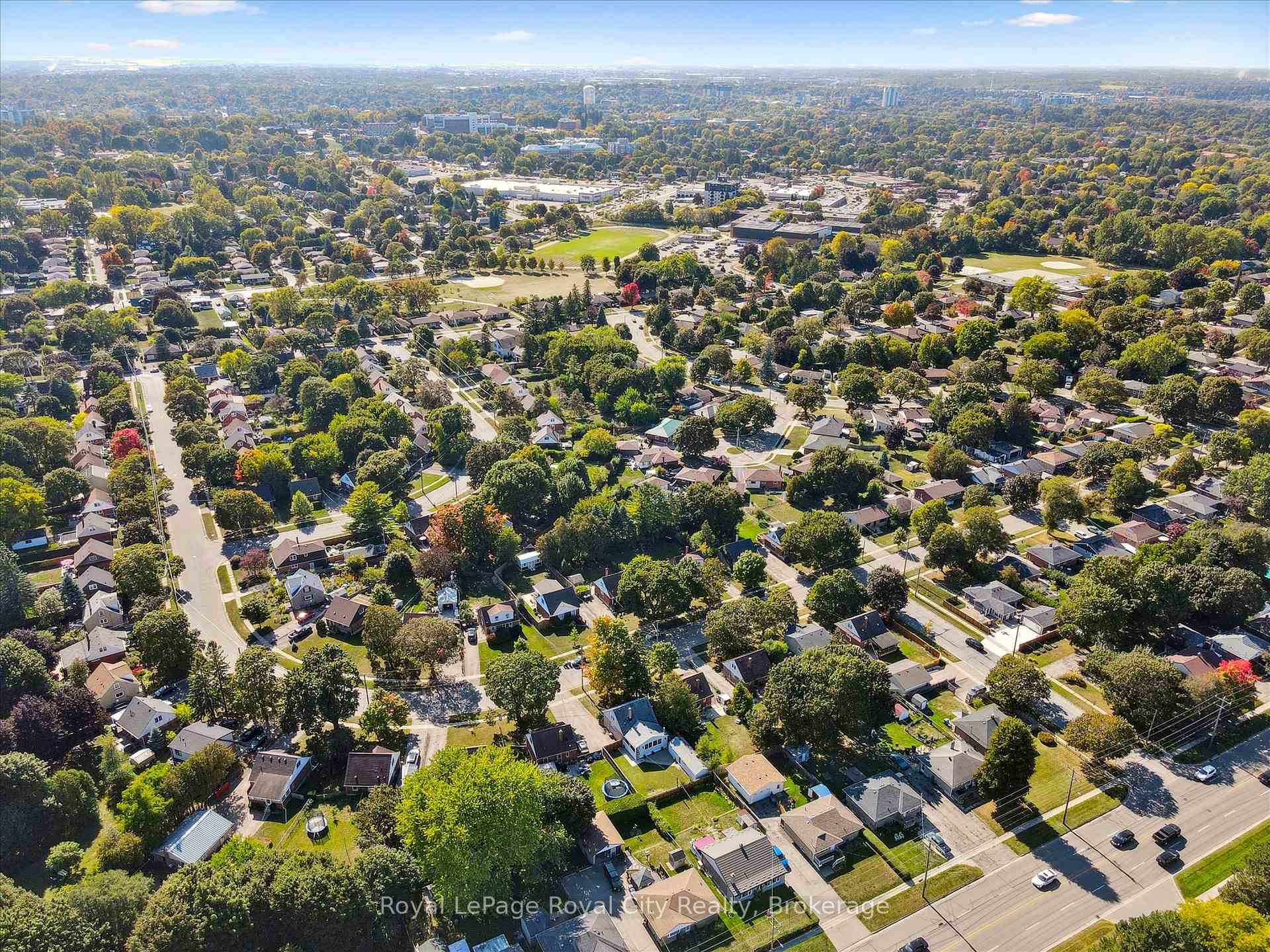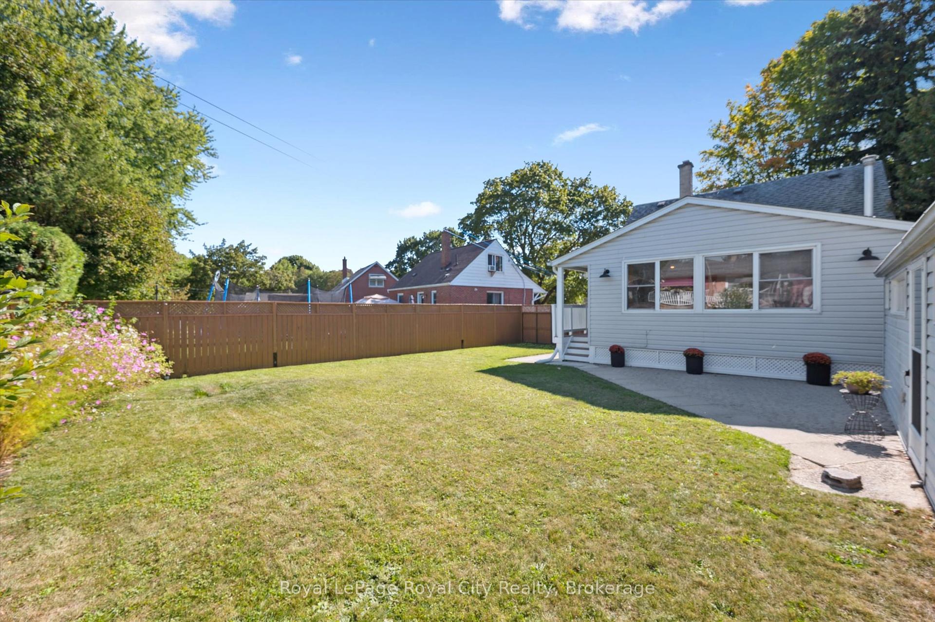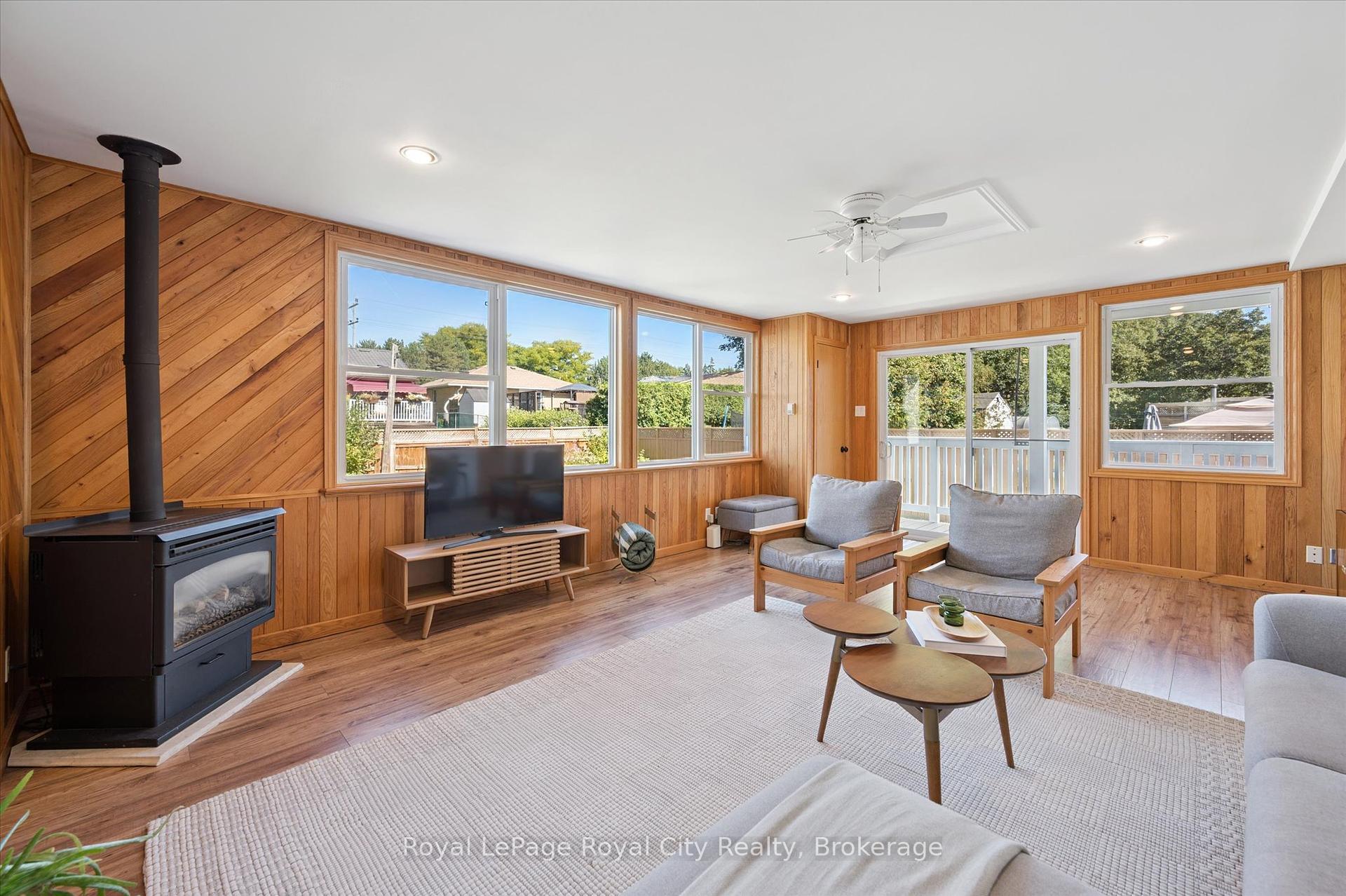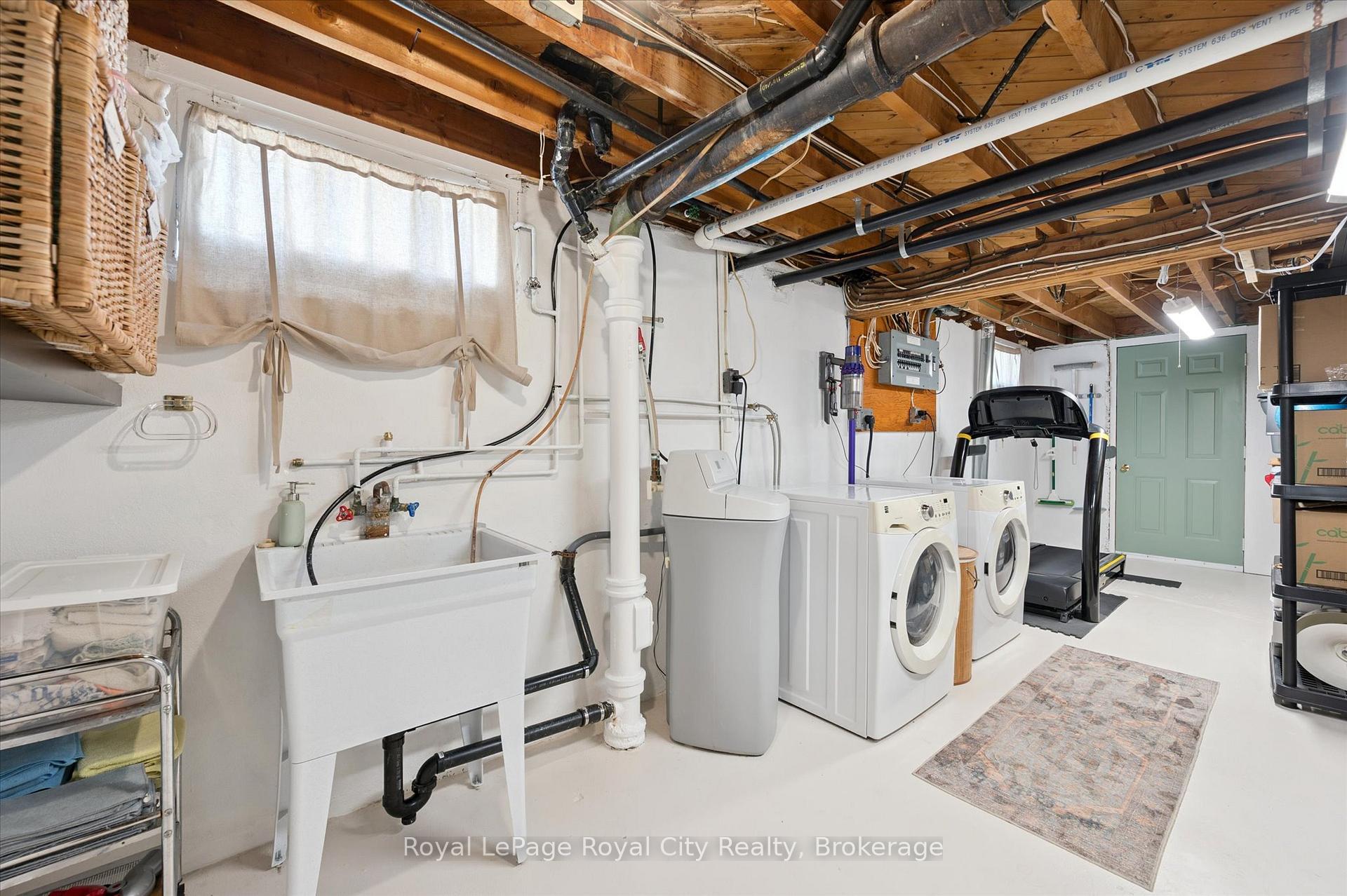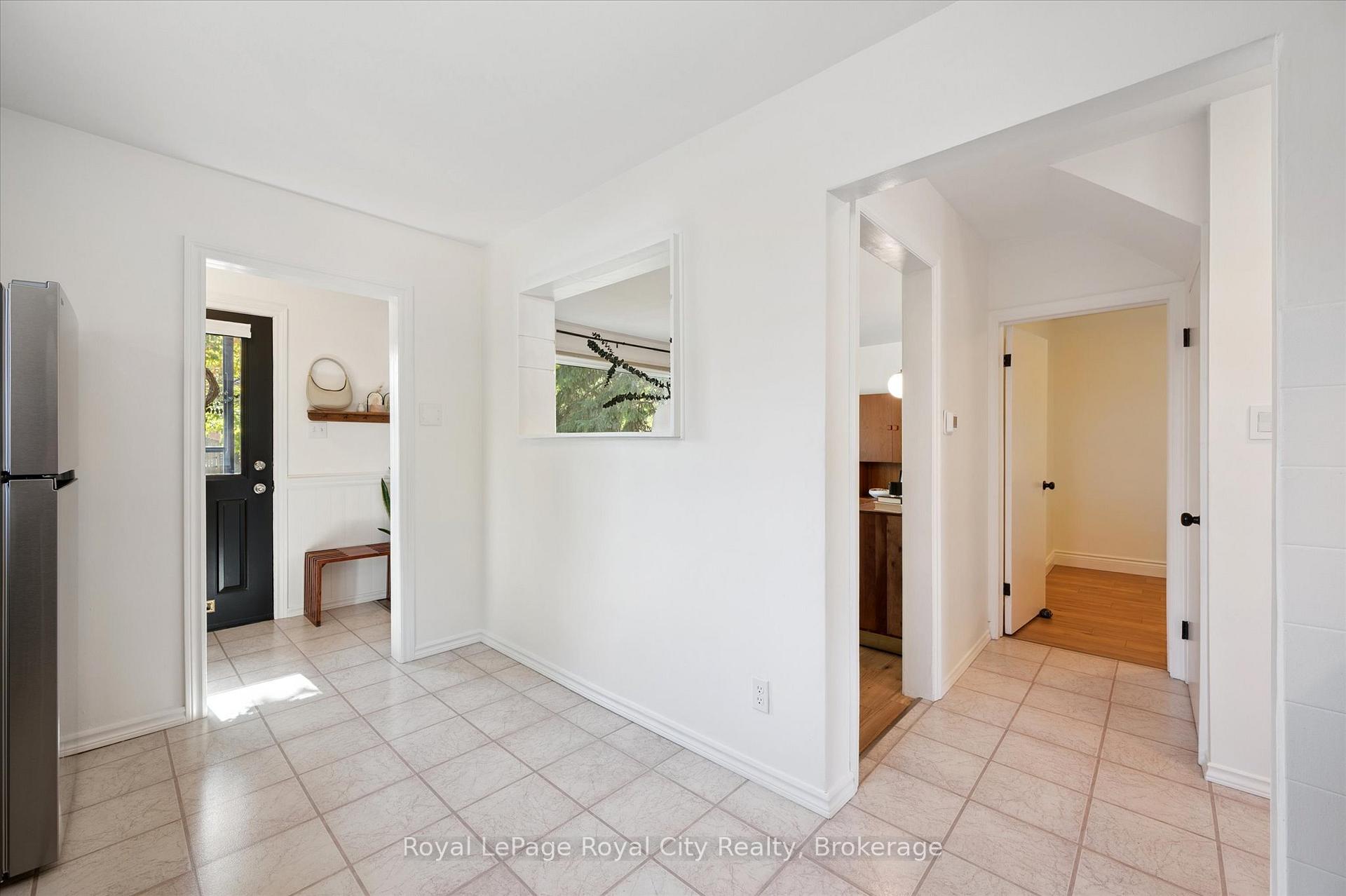 This charming 3-Bedroom, detached 1.5-storey home is located in the desirable St. George Park area of Guelph. The home has been meticulously cared for, w/ tasteful updates & design choices throughout. The spacious kitchen features new stainless steel appliances & matching sink & faucet. A window above the sink allows natural light to fill the space and the cutout between the kitchen & dining/living area keeps you connected with family & guests while preparing meals. This room also has a large front window that frames a picturesque view of the lawn & mature trees. There is a main-floor BDRM (the perfect home office) & just down the hall is an updated 4-piece BATH. The great room addition at the back of the home provides a cozy, sun-filled retreat w/ wraparound windows, pot lights & a corner gas fireplace. Sliding glass doors lead to a covered deck, which opens to a spacious, fully fenced backyard & patio area. There is even a detached workshop (10 ft x 28 ft) equipped w/ cabinets, shelving, lighting, & electrical, offering space for yard equipment, tools, & storage. It could also make an excellent studio. On the second floor, the primary BDRM has ample space for your bed & additional furniture, as well as a closet and large window. There is another well-sized BDRM on this floor with a closet, large window and room for a bed and some furniture. At the top of the stairs, an adorable built-in linen closet provides extra storage. The finished rec room in the basement is perfect for relaxation & entertaining, w/ pot lights, carpeting, built-in shelving, & a built-in bar w/ storage. The laundry area includes a sink, shelving, & extra storage, plus a cold room at the back. The long tandem driveway accommodates 3 cars. Close to great schools, parks, recreation centre, public transit & lots of amenities. Recent Updates: laminate flooring, AC(2025), fridge/stove(2025), dishwasher(2022), water softener(2021), roof ridge cap repair(2024) Don’t miss this fantastic opportunity!
