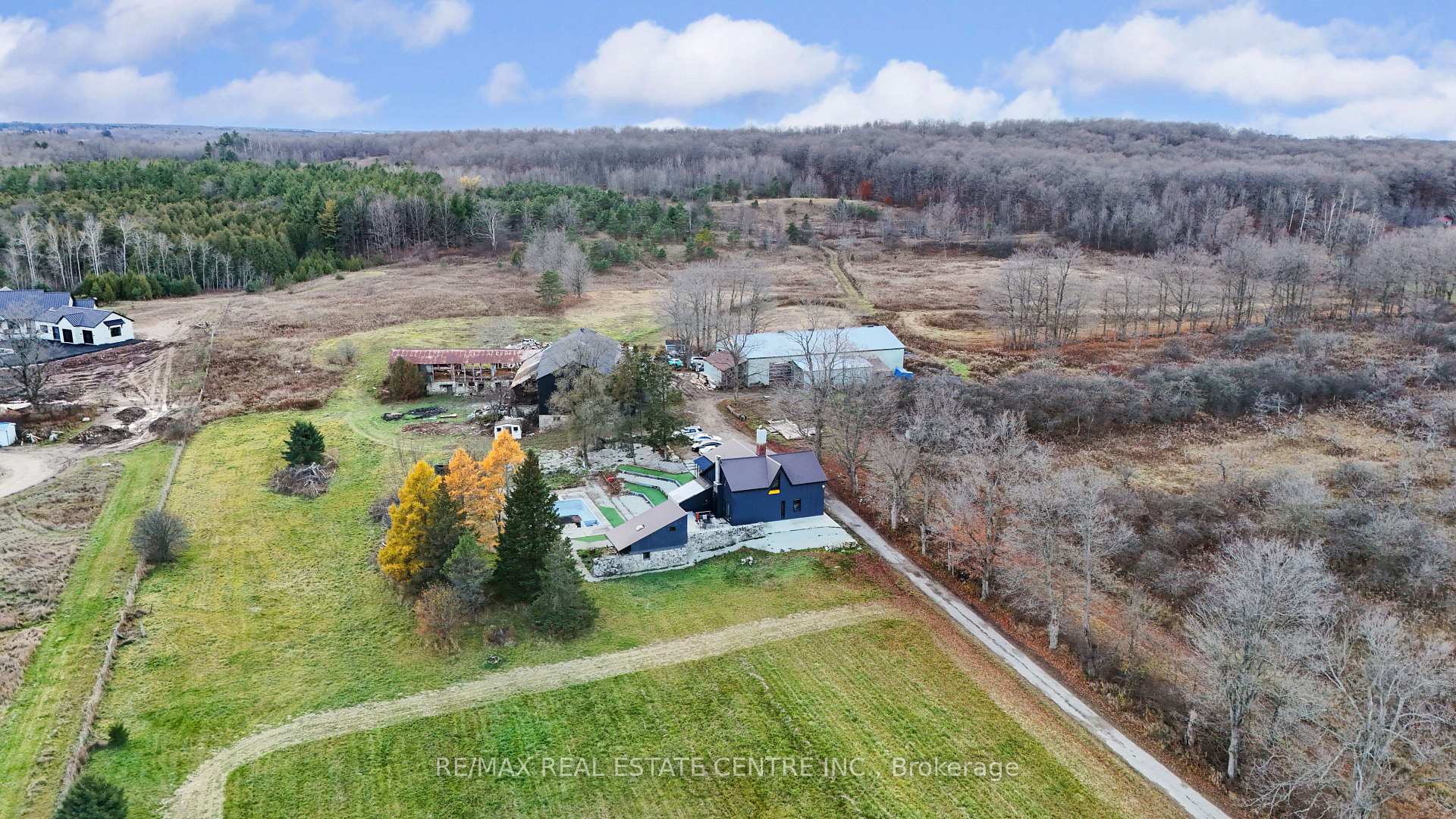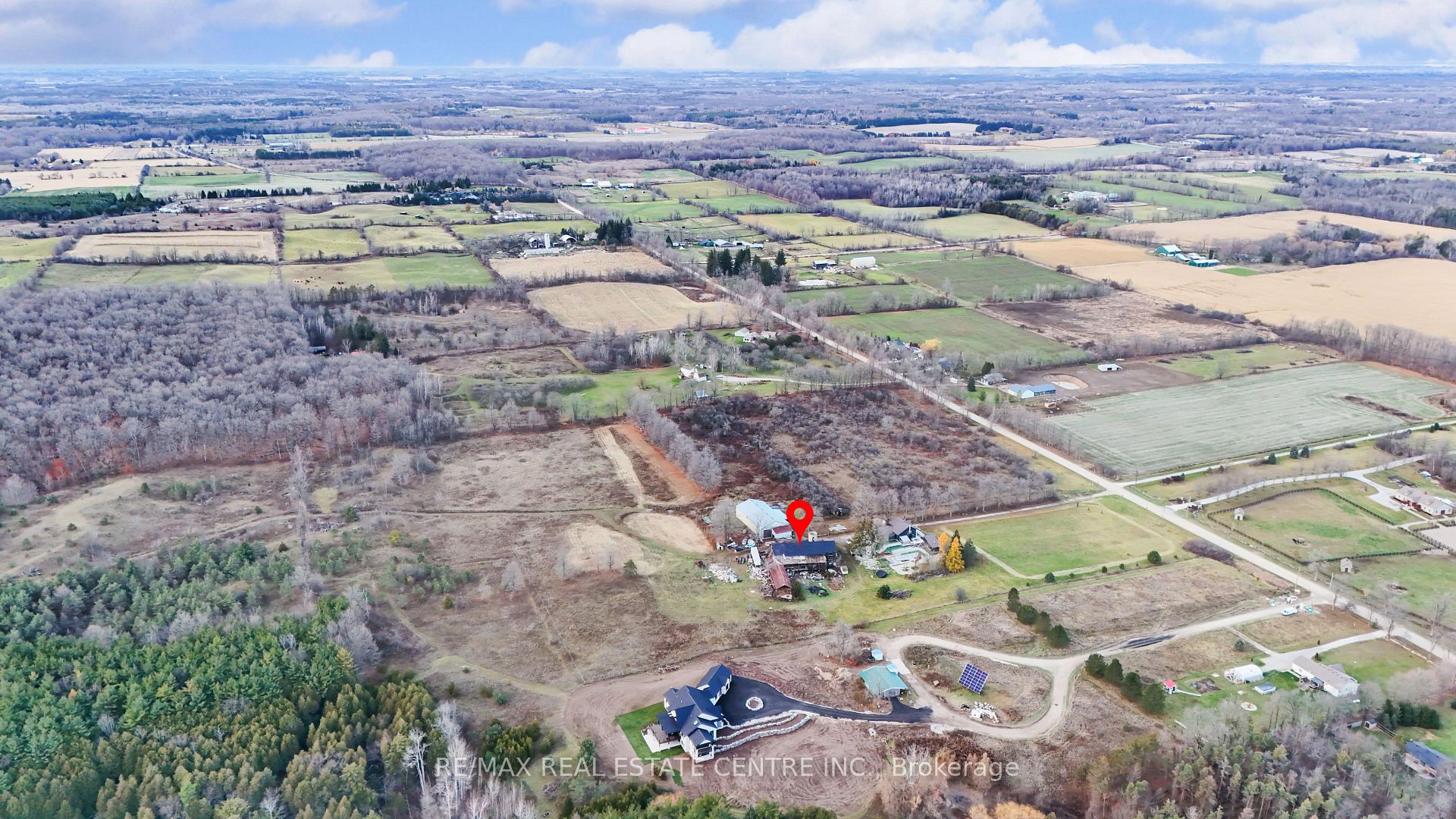 Welcome to this rare and beautifully upgraded 52-acre property offering an unmatched blend of country living, agricultural potential, and top-tier amenities. Featuring an impressive 962 feet of frontage, this property is surrounded by custom homes and is just 10 minutes to Hwy 401, CITY OF GUELPH, providing the perfect balance of privacy and convenience. Over $500,000 in recent renovations and upgrades enhance every part of this offering. The charming 2-storey home has been fully renovated and features 1 bedroom on the main level-ideal for multigenerational living-plus 3 spacious bedrooms upstairs, modern finishes, and a bright, open layout. Enjoy your own private outdoor retreat with a cement inground pool, perfect for entertaining and relaxing. The land offers exceptional versatility with 7-9 acres of mature apple trees, 22 acres of workable farmland, and ample open areas for future expansion or hobby farming. A major highlight is the 5,000 sq ft metal shop with 18-ft clear height, ideal for contractors, mechanics, storage, or home-based business operations. The property also includes an additional Recently Renovated 9000 sq ft ( 50′ x 90′ ) 2 story Wood Barn, adding even more function and value. Perfect for families, farmers, investors, or those seeking a premium rural lifestyle-this property truly has it all.
