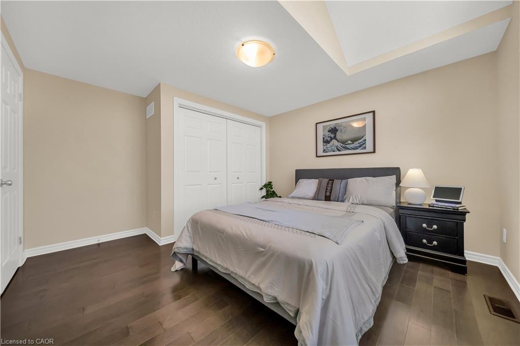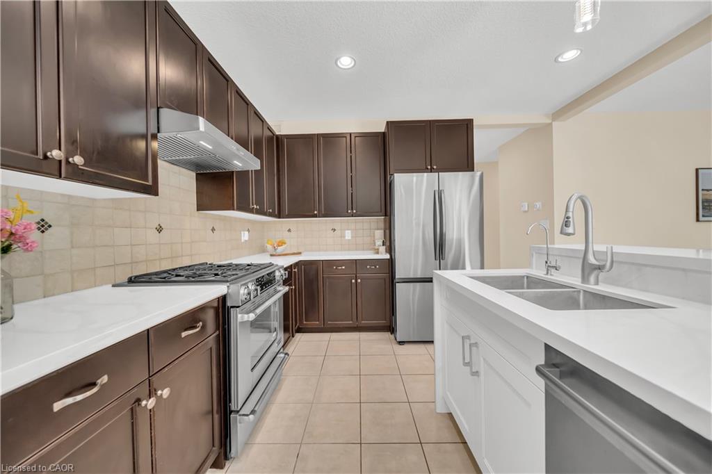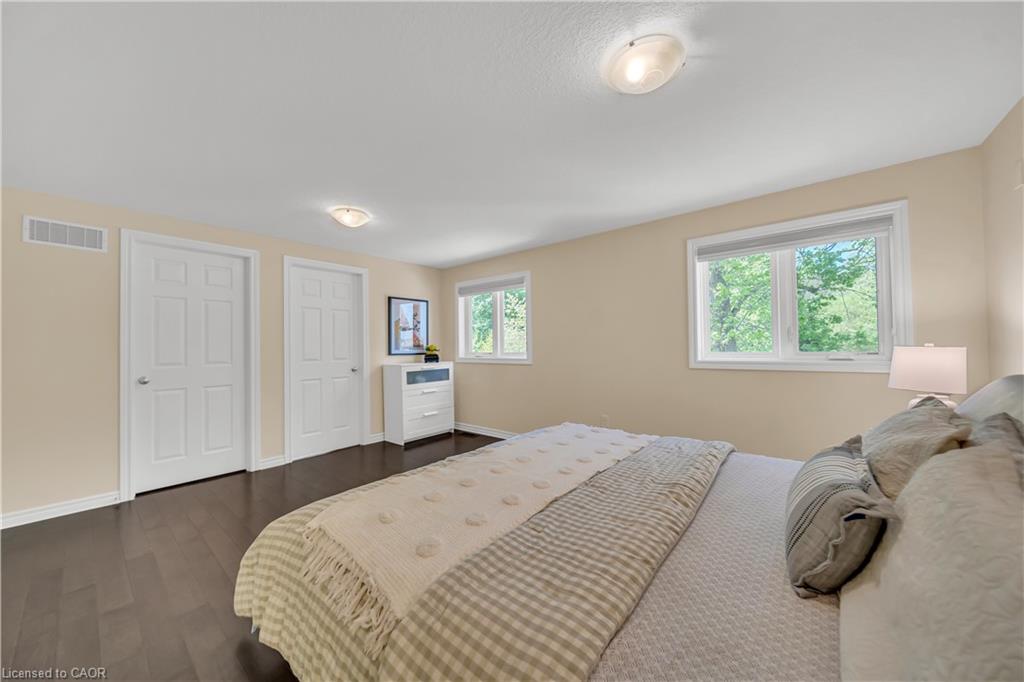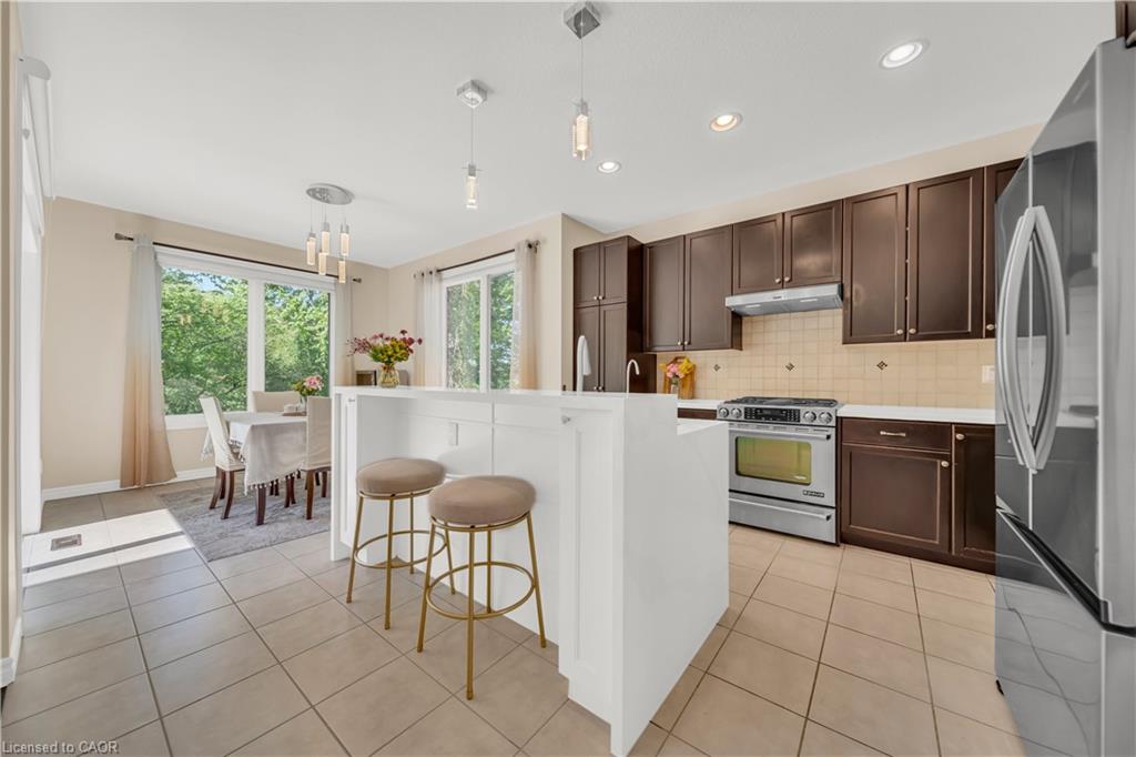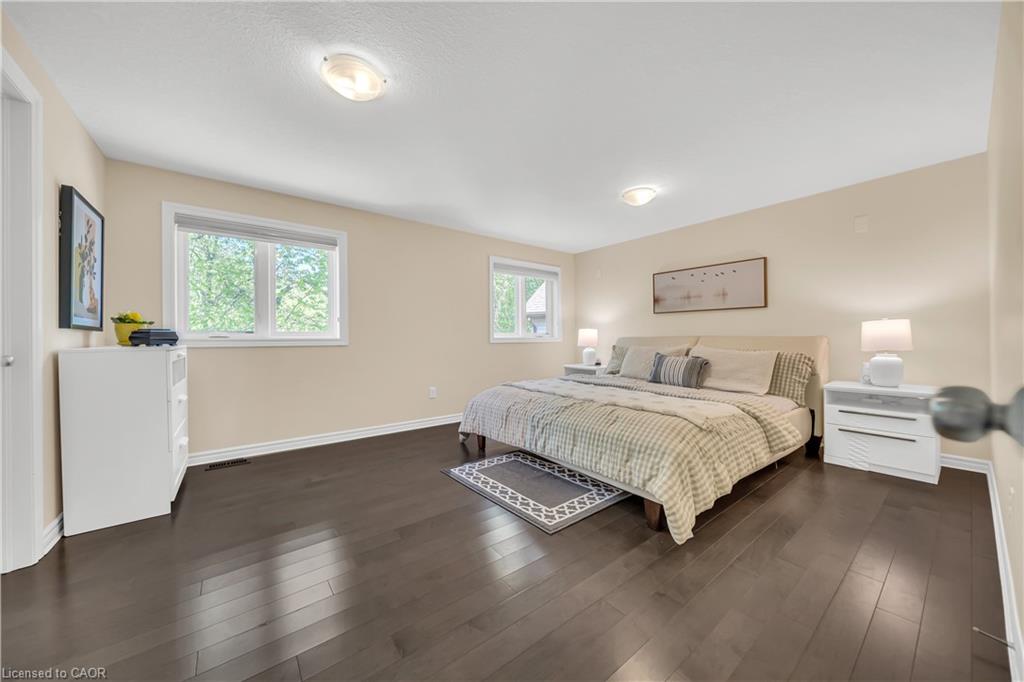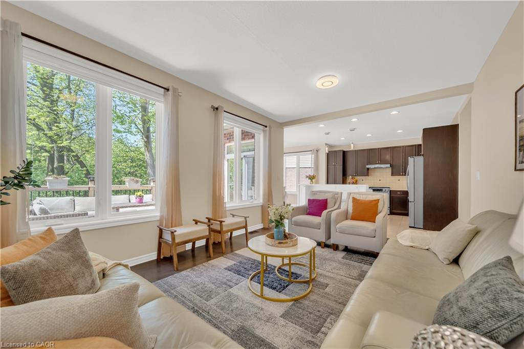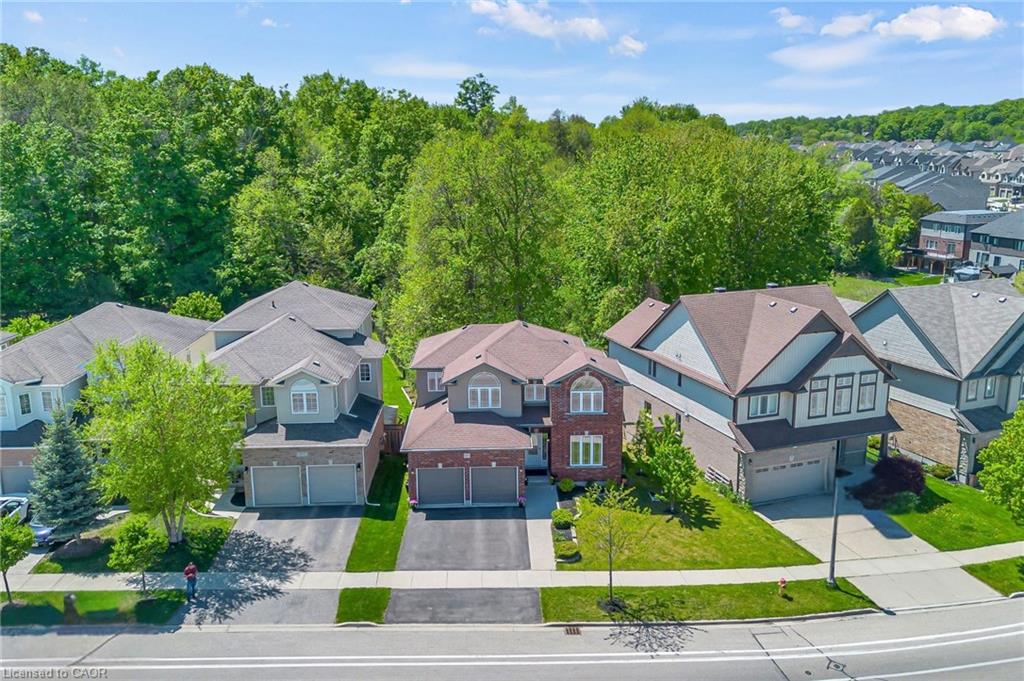 Welcome to 437 Zeller Drive, a rare gem nestled in the perfect family-friendly neighbourhood of Lackner Woods, Kitchener. This stunning home sits on a premium RAVINE LOT & offers a fully finished WALKOUT BASEMENT. Boasting parking for up to 4 vehicles (2-car garage + 2 driveway) & Exterior pot-lights surrounding the entire house. Step inside to a welcoming foyer overlooking a spacious MAIN FLOOR BEDROOM which can also be used as home office. The home features premium mirage hardwood floors throughout, 9-ft ceilings on the main floor & a bright, open-concept living area flooded with natural light. The upgraded kitchen, where you’ll find quartz countertops (renovated in 2022), SS Appliances (2024 fridge & dishwasher), stylish backsplash & ample cabinet space. The adjacent dining area overlooks the backyard(green space with matured trees) creating the perfect setting for hosting family dinners or entertaining guests. The main floor also includes a laundry room with custom cabinets & storage. The hardwood staircase leads to the upper level featuring 3 spacious bedrooms, 2 Full bathrooms & a versatile space that’s ideal for a home office or study area. Each bedroom includes custom closet organizers, Maximizing storage. The primary suite offers its own walk-in closet & luxurious ensuite with a 6’ soak in tub & walk in shower. Downstairs is fully finished walkout basement which is a showstopper in itself featuring Rec Room with an electric fireplace, large windows, kitchenette setup, 5th bedroom & modern 3pc bathroom with a glass shower. Additional updates include a new furnace (2024), AC (2023) & modernized features throughout. Step outside to enjoy your fully fenced backyard with NO REAR NEIGHBOUR, complete with a raised deck & patio, perfect for relaxation while enjoying the serene views. Located mins from the Grand River, Trails, top-rated schools & all essential amenities, this is not just a home, it’s a lifestyle. Don’t miss the opportunity, Book your showing today!
